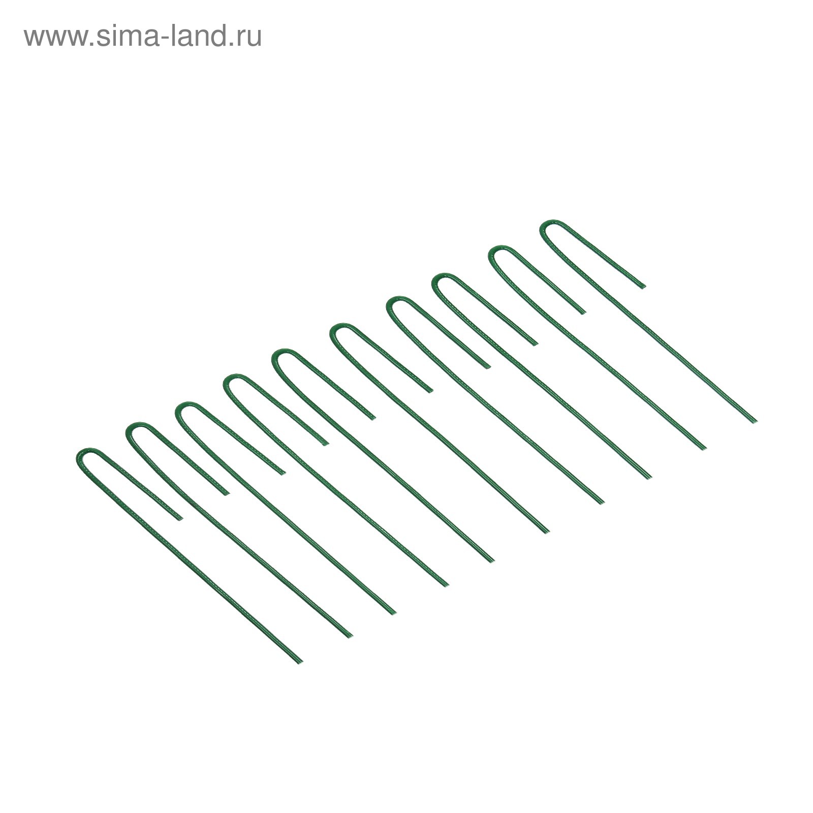 Колышек универсальный, h = 20 см, ножка d = 0.3 см, набор 10 шт., зелёный, greengo. Колышки для подвязки растений помогают зафиксировать саженцы в нужном положении, чтобы обеспечить их правильный рост. Плюсы подвязывания растенийСтебли защищены от повреждений. Плоды не касаются земли и не пачкаются. Солнечные лучи лучше проникают к плодам. Удобно собирать урожая . Какие растения нужно подвязыватьДекоративные вьющиеся растения, чтобы задать направление роста и сформировать крону. Пионы, дельфиниум, гладиолусы и другие высокорослые цветы с тяжёлыми бутонами. Томаты, огурцы, перцы, чтобы стебли не ломались и не искривлялись под тяжестью плодов. Цвет: Зелёный Диаметр, мм: 3 Длина, см: 20 В упаковке, шт.: 10 Материал: Металл Вид: Колышки Температурное ограничение: Нет Вид ленты: Крепление для ленты Вид: Колышки Применение: Для укрывного материала  развернуть описание ▼