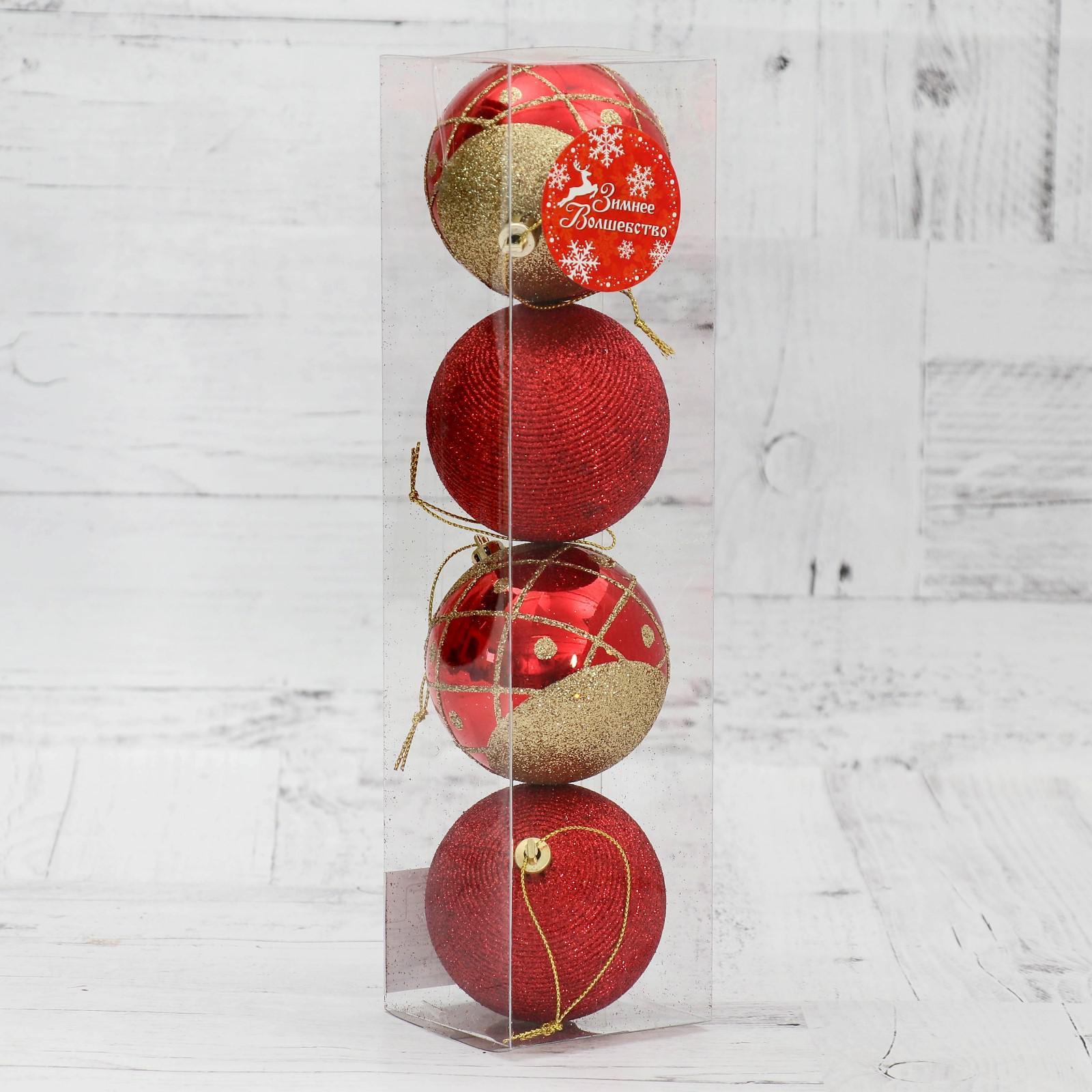 Ёлочные игрушки «ниола», шары новогодние, D=7 см, набор 4 шт., красный