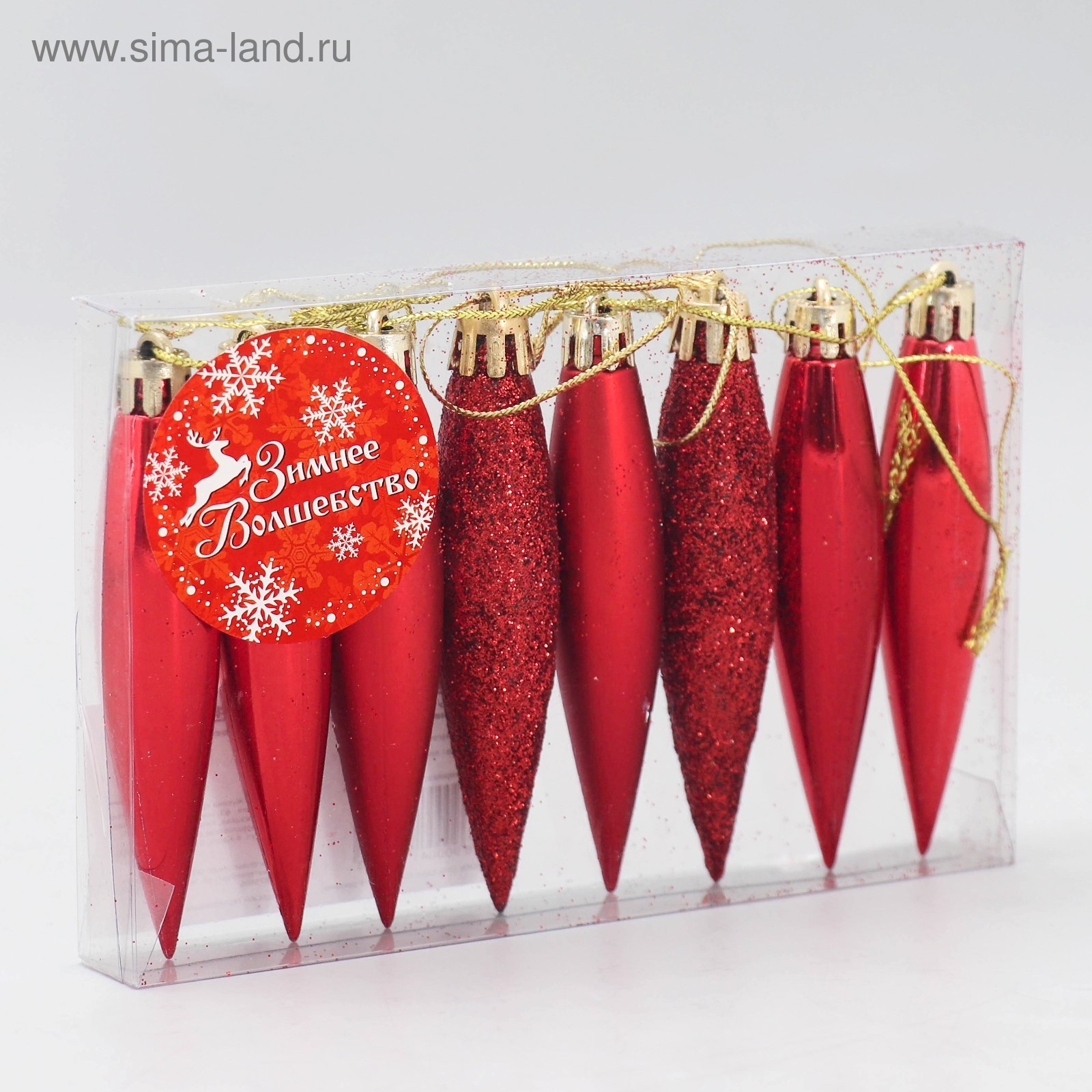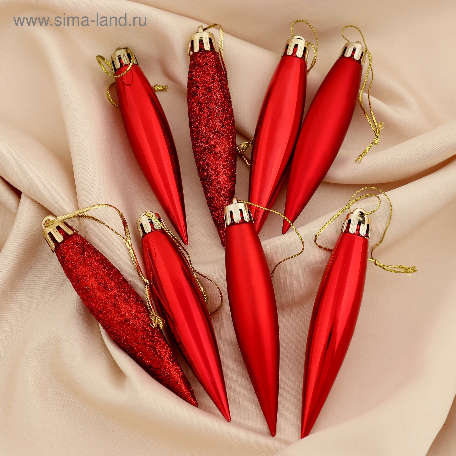 Ёлочные игрушки 8 шт. «сосулька заострённая», 8 2 см, красный