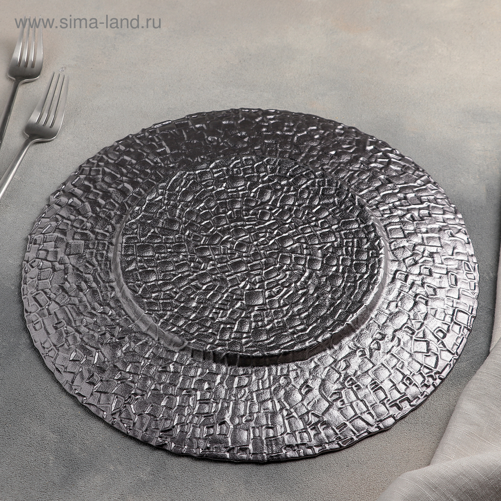 Тарелка стеклянная подстановочная Magistro «кринкл», D=33 см, цвет серый