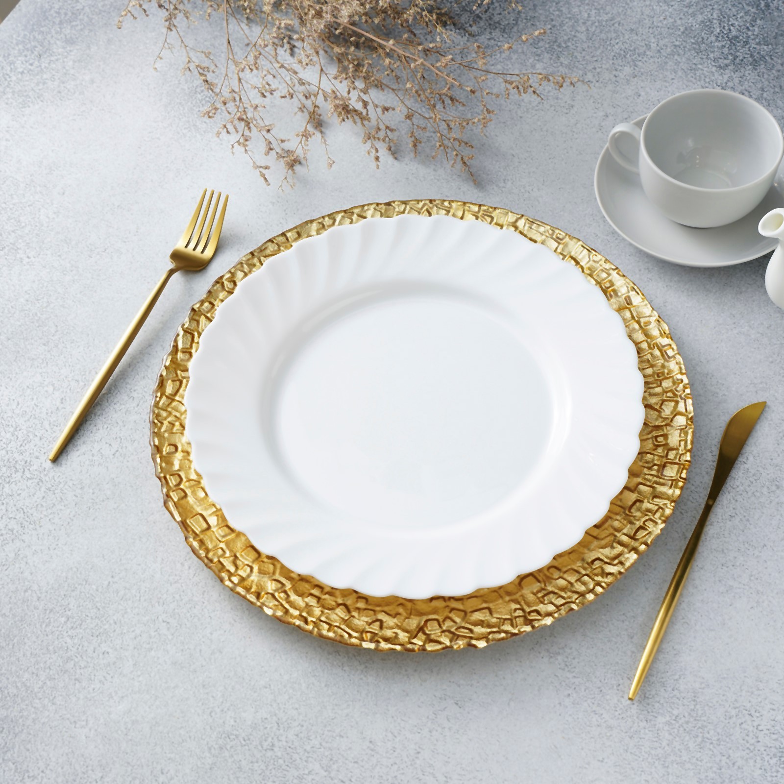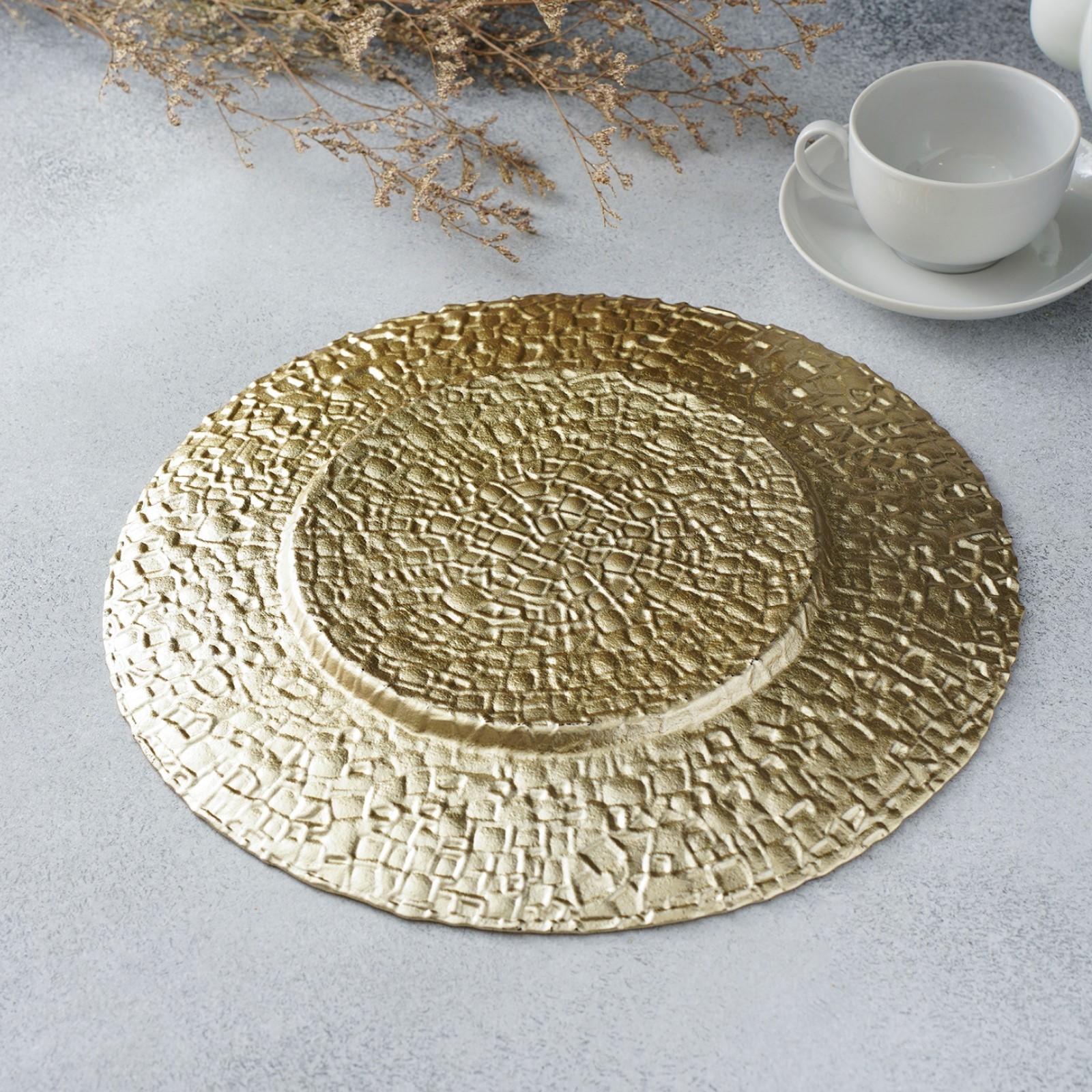 Тарелка стеклянная подстановочная Magistro «кринкл», D=33 см, цвет золотой
