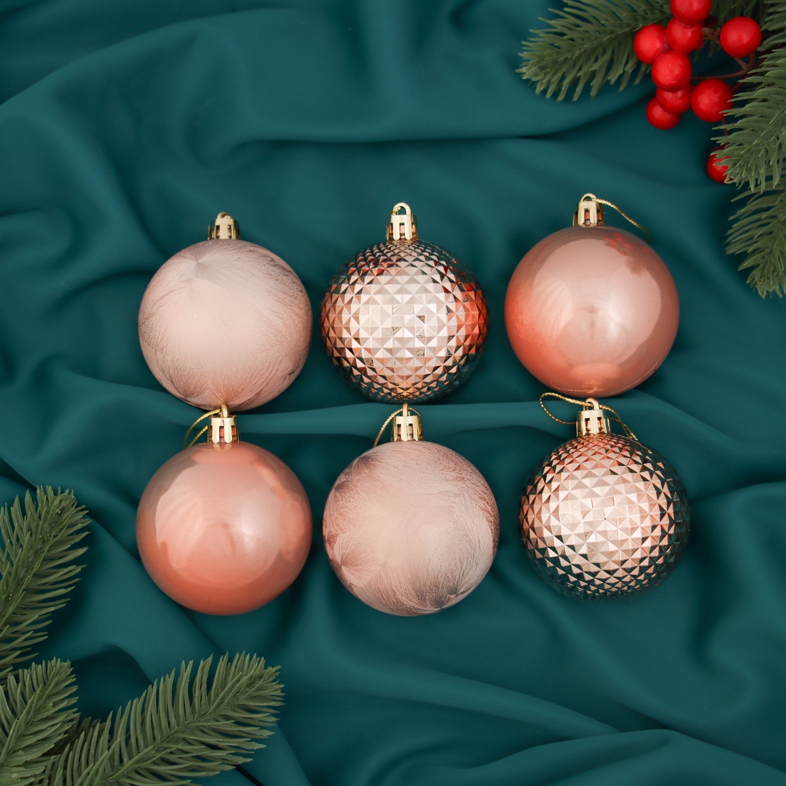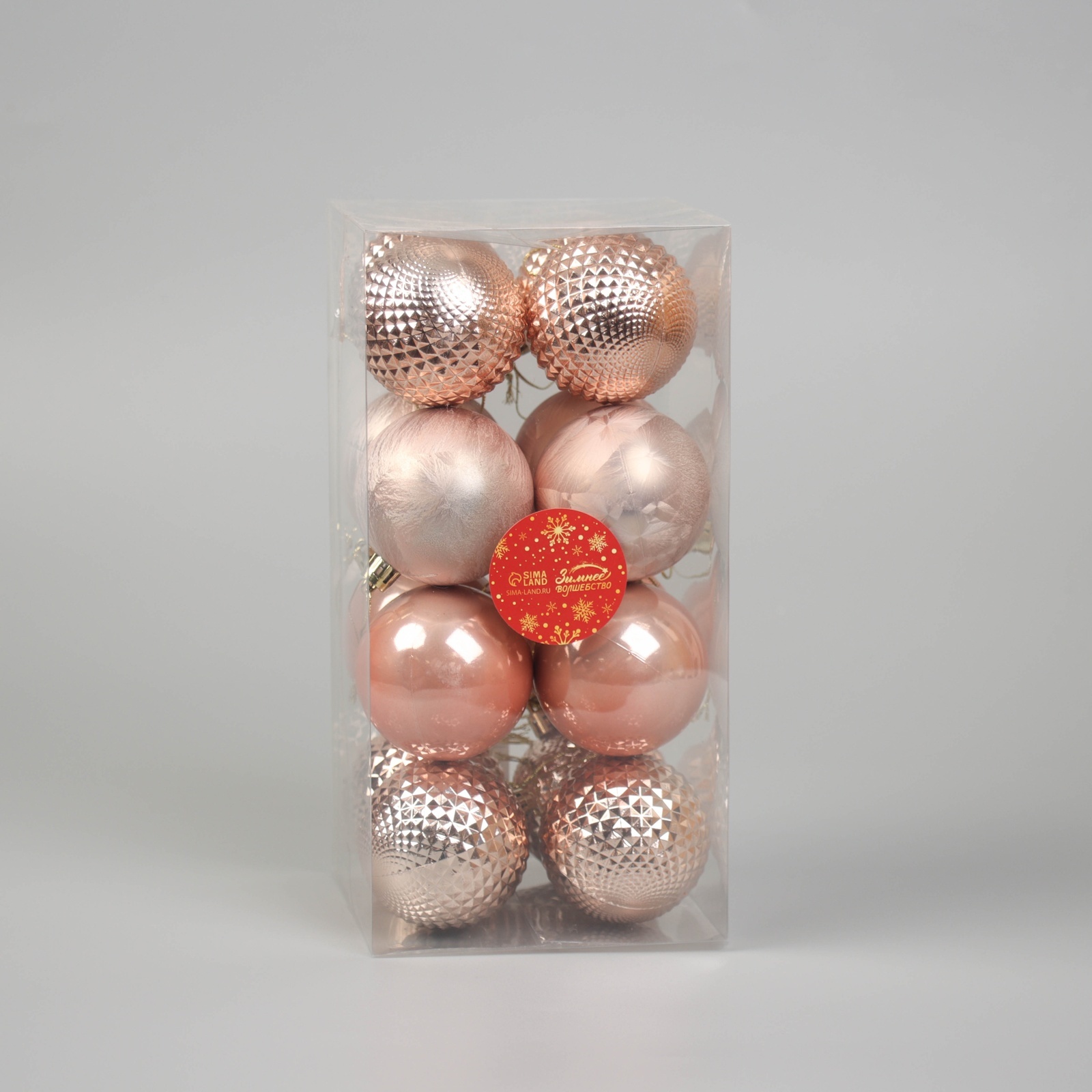 Ёлочные игрушки «венера», шары новогодние, D=6 см, набор 16 шт., розовое золото