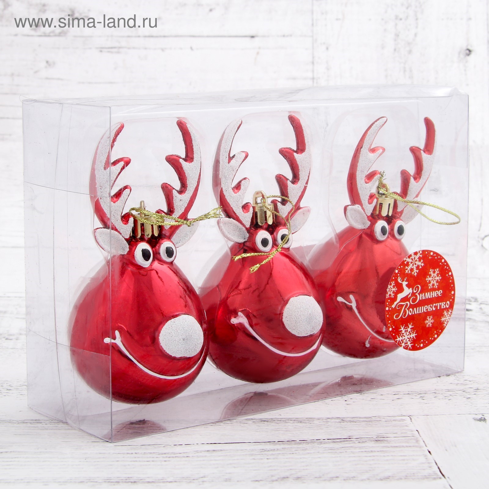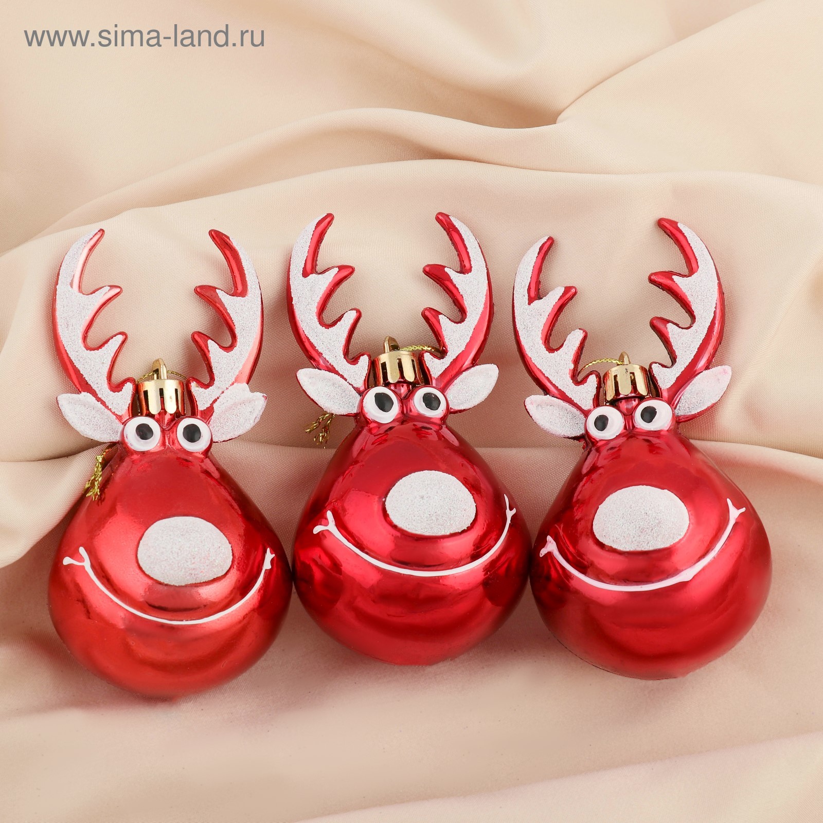 Ёлочные игрушки 3 шт. «зимнее волшебство. весёлый олень» пластик, 11 6 см, красный