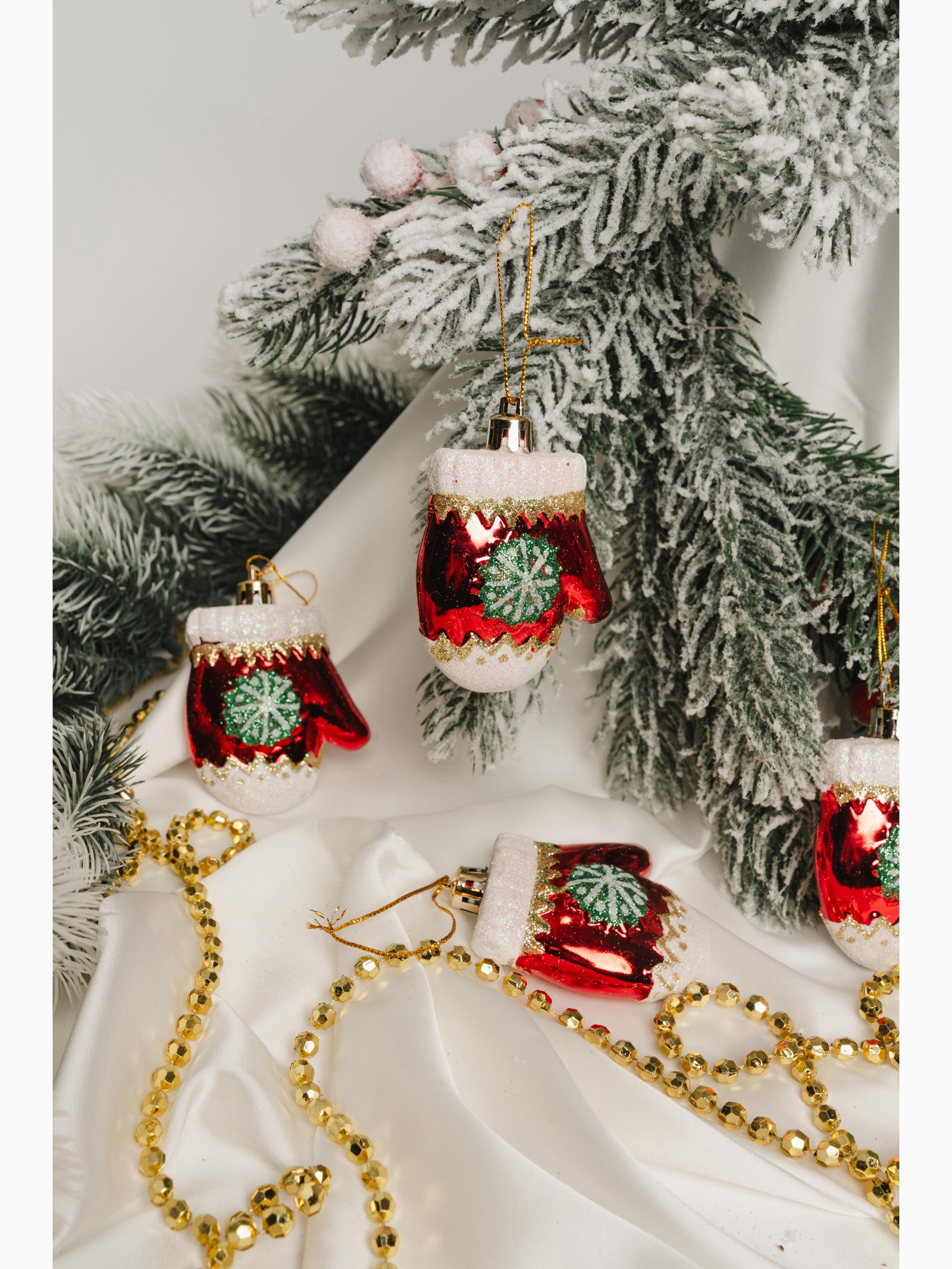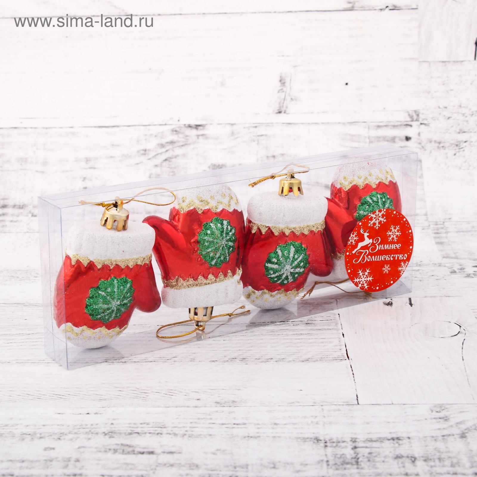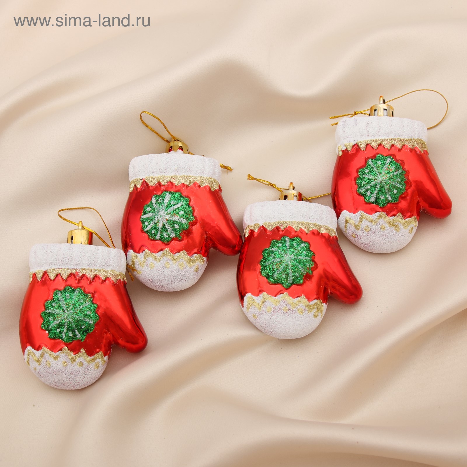 Ёлочные игрушки 4 шт. «варежка со снежинкой» 6 5 см, красный