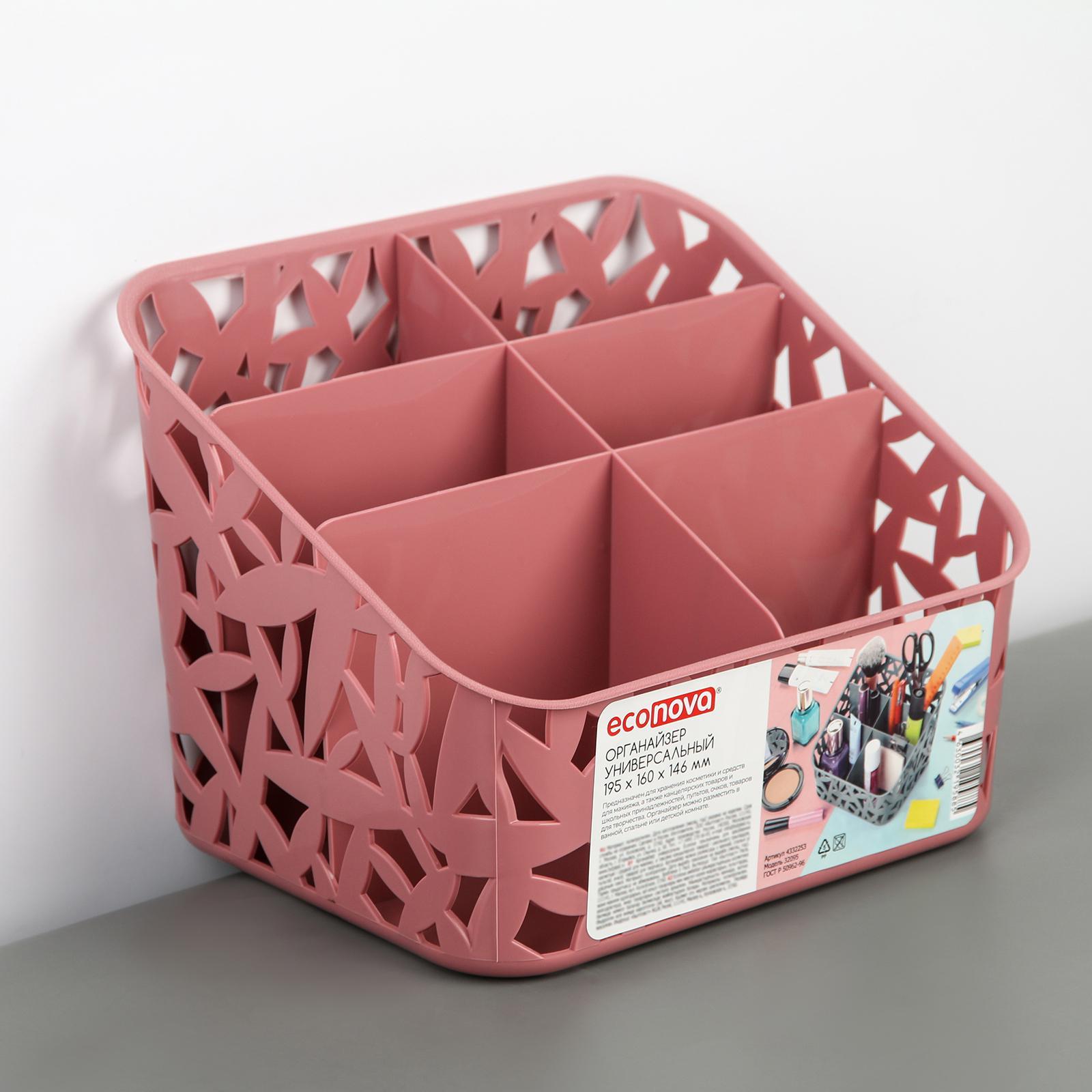 Органайзер настольный универсальный econova, 19,5x16x14,6 см, цвет микс. В быту мы постоянно сталкиваемся с ситуациями, когда нужно что-то куда-то срочно сложить или убрать — вот только места для этого никак не найти. Решение практичного хозяина — органайзер для хранения. Преимущества:Хранение канцелярии и игрушек — для этой корзины нет непосильных задач. Эргономичная и эффектная — она заставит вас забыть о беспорядке. Прочные и экологичные материалы гарантируют как безопасность содержимого, так и долгий срок службы ящика. Цвет: МИКС Длина, см: 19.5 Ширина, см: 16 Высота, см: 14.6 parts count: 0 Количество секций: 6 Материал: Пластик Материал: Полипропилен Вид: Подставка Температурное ограничение: Нет Назначение: Для домашних мелочей Пищевой пластик: Нет  развернуть описание ▼