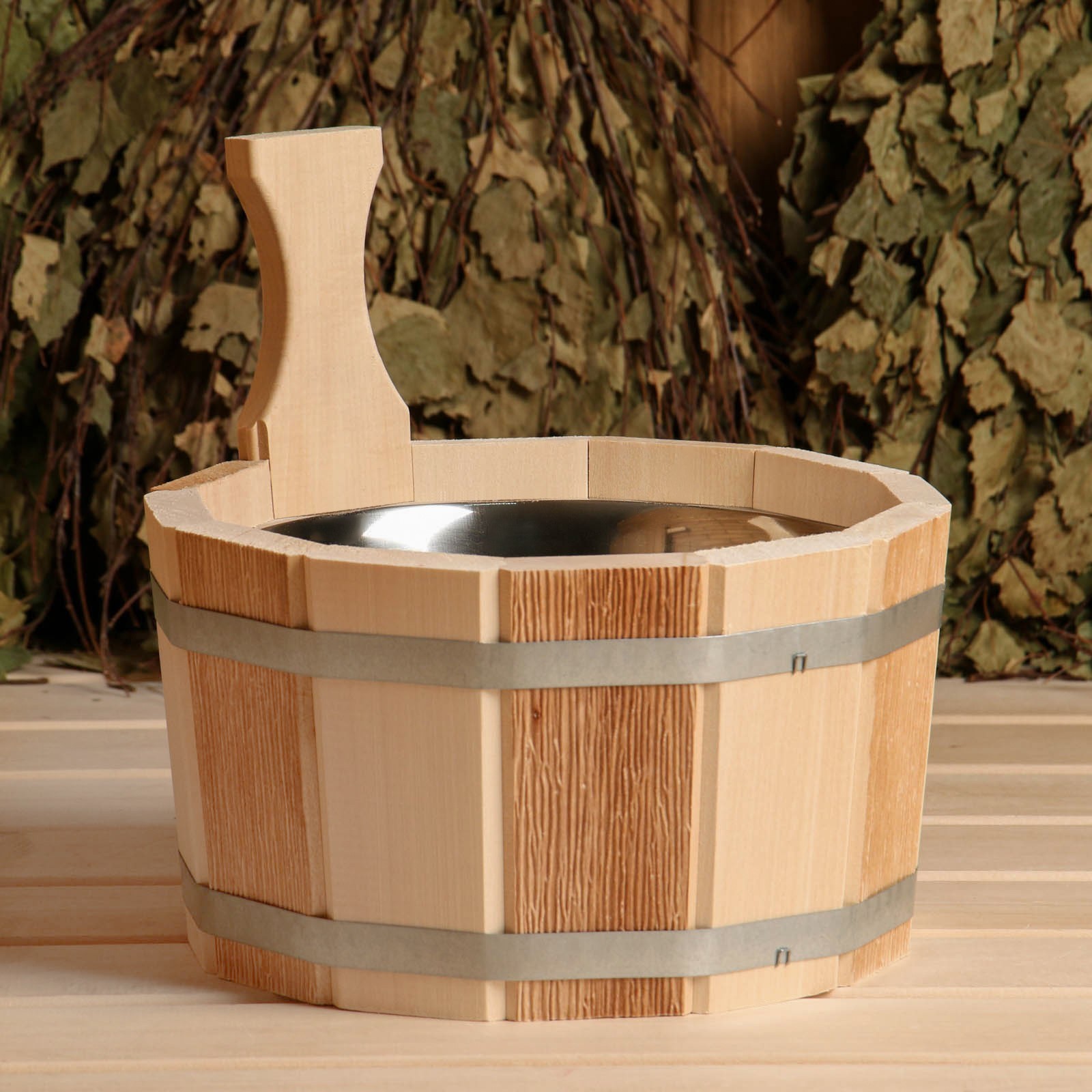 Шайка - ушат для бани и сауны «термо», 3 л, деревянная, нержавеющая вставка, «добропаровъ»