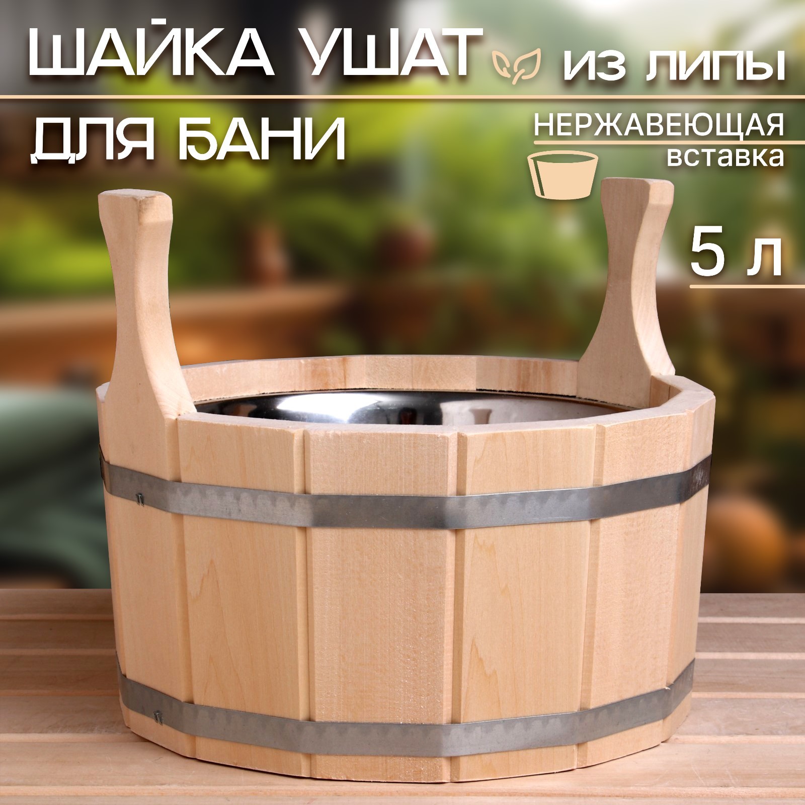Шайка-таз из липы, 5 л, нержавеющая вставка