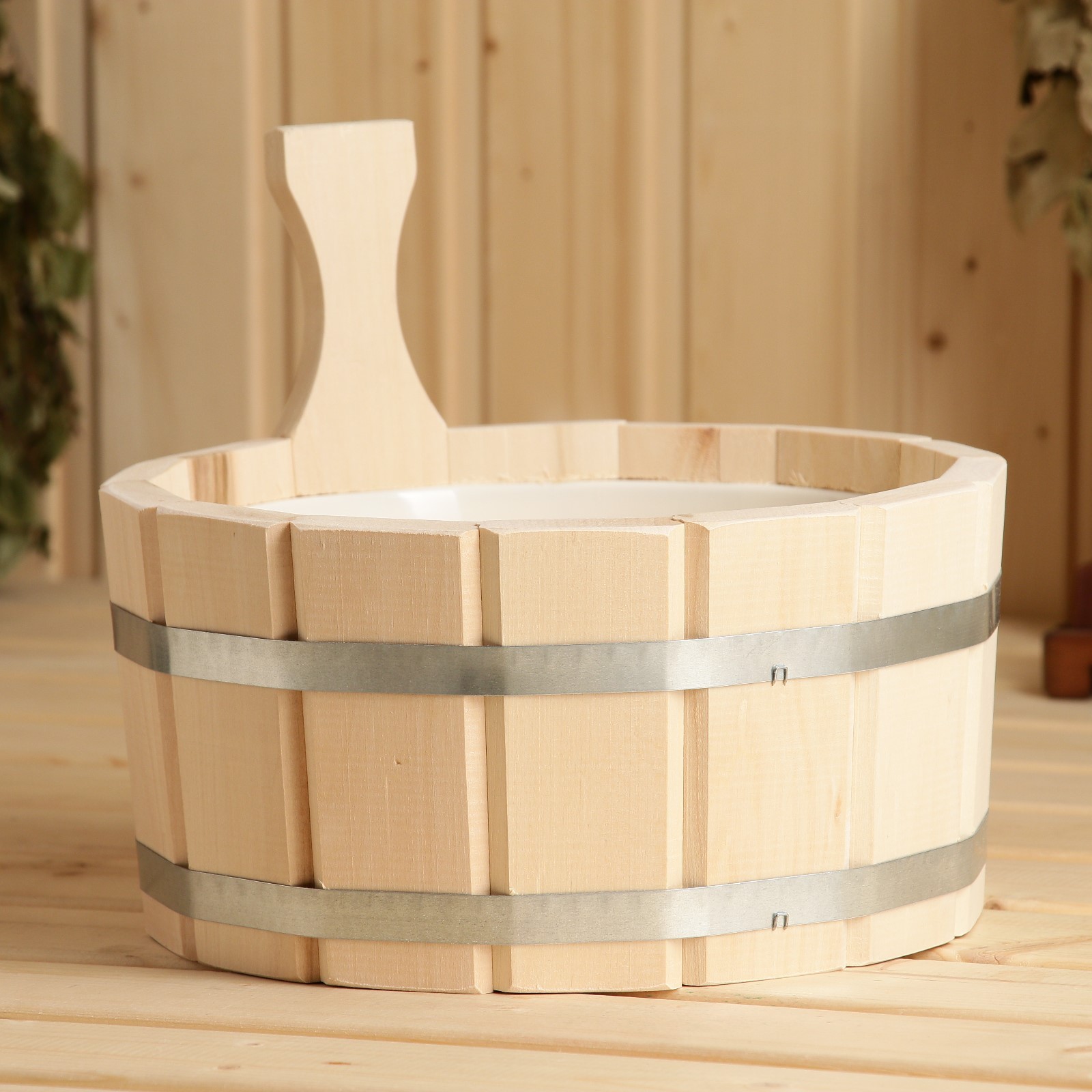 Шайка - ушат для бани и сауны, 4 л, деревянная, пластиковая вставка, «добропаровъ»