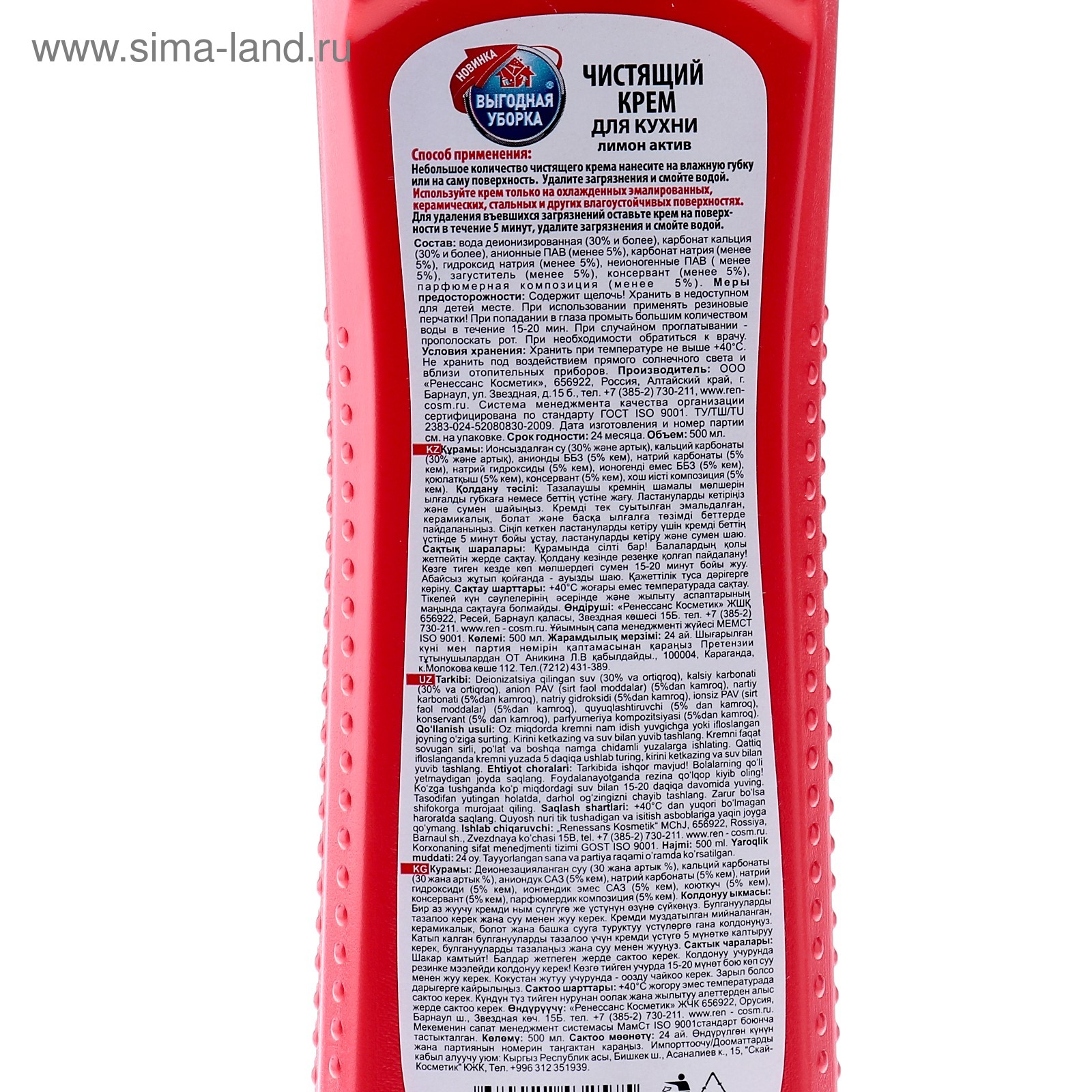 Чистящее средство "выгодная уборка - лимон", крем, для кухни, 500 мл