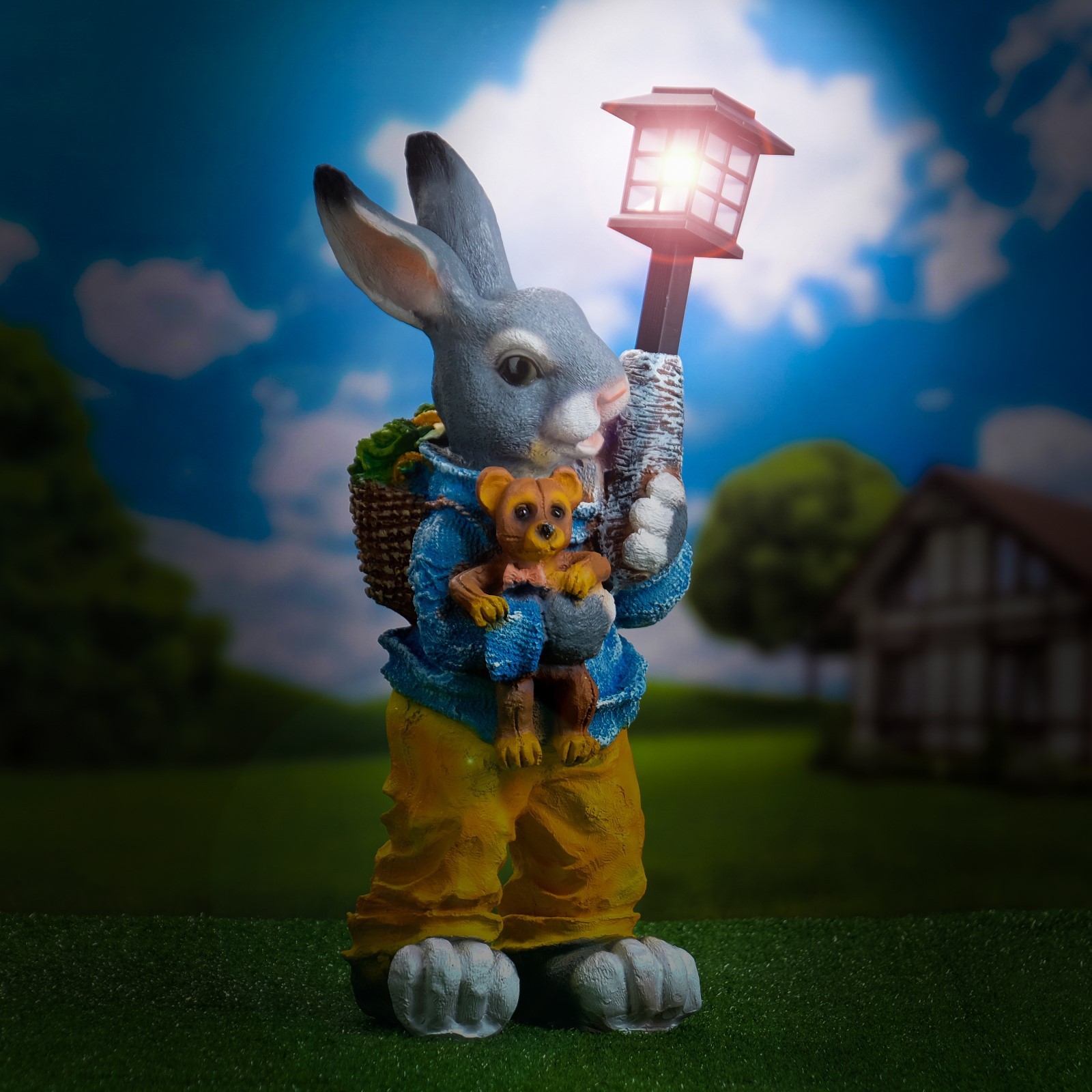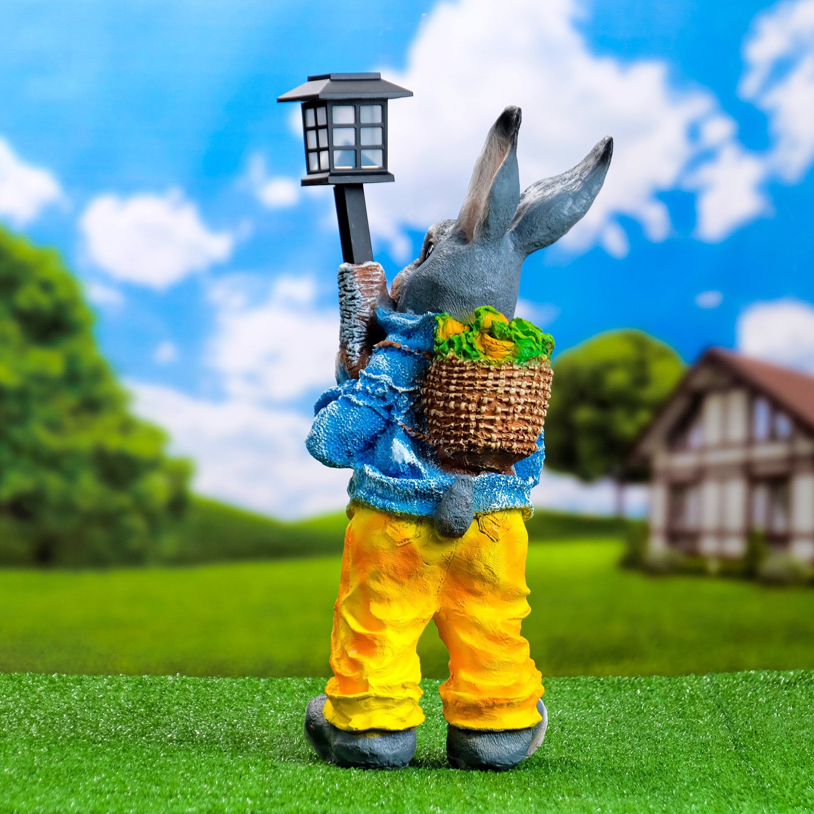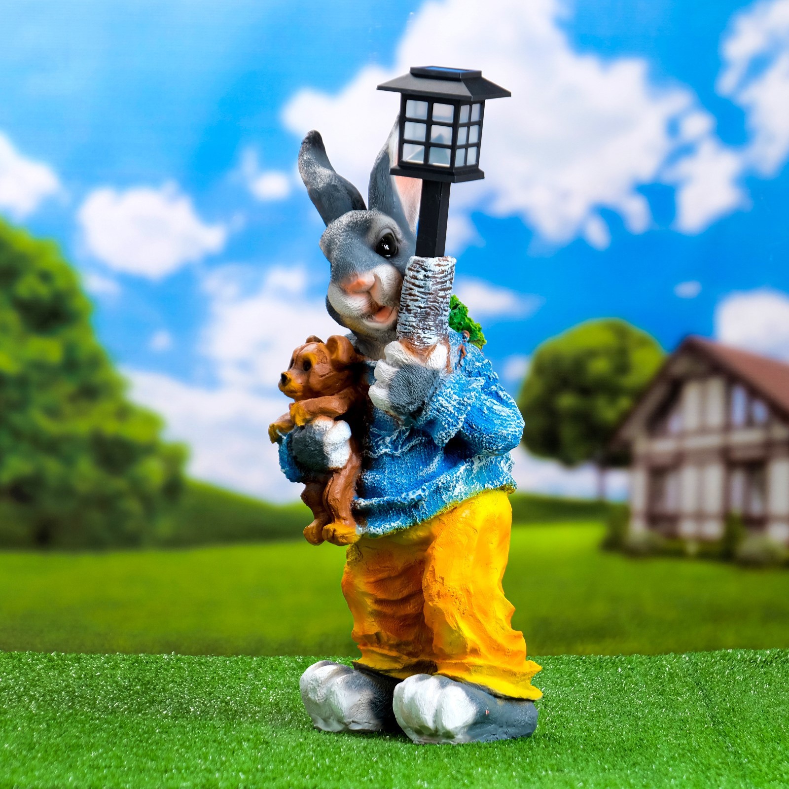 Садовый фонарь из полистоуна «заяц с фонариком и игрушкой», 27 24 52 см. Цвет свечения:Белый|Цвет:Синий|Тип:Садовый|Тип:На солнечных батарейках|Цоколь:Встроенные LED|Ширина, мм:240|Глубина, мм:270|Высота, мм:520|Материал:Полистоун|Одноцветный:Нет|Можно оставлять зимой на улице:Да|Температурный режим:от -40 до +70 °С|Тип питания:От солнечной батареи|Страна:Россия  развернуть описание ▼