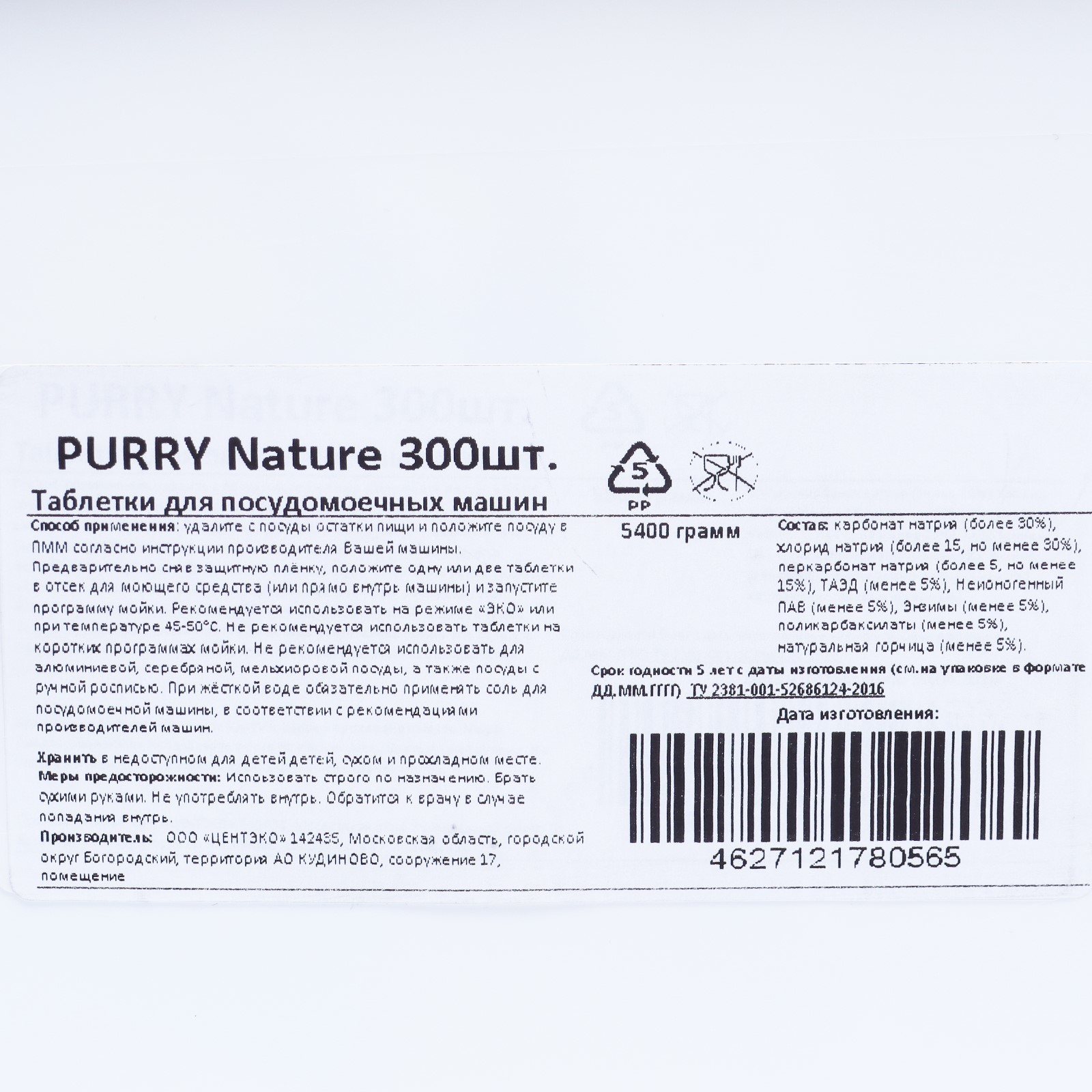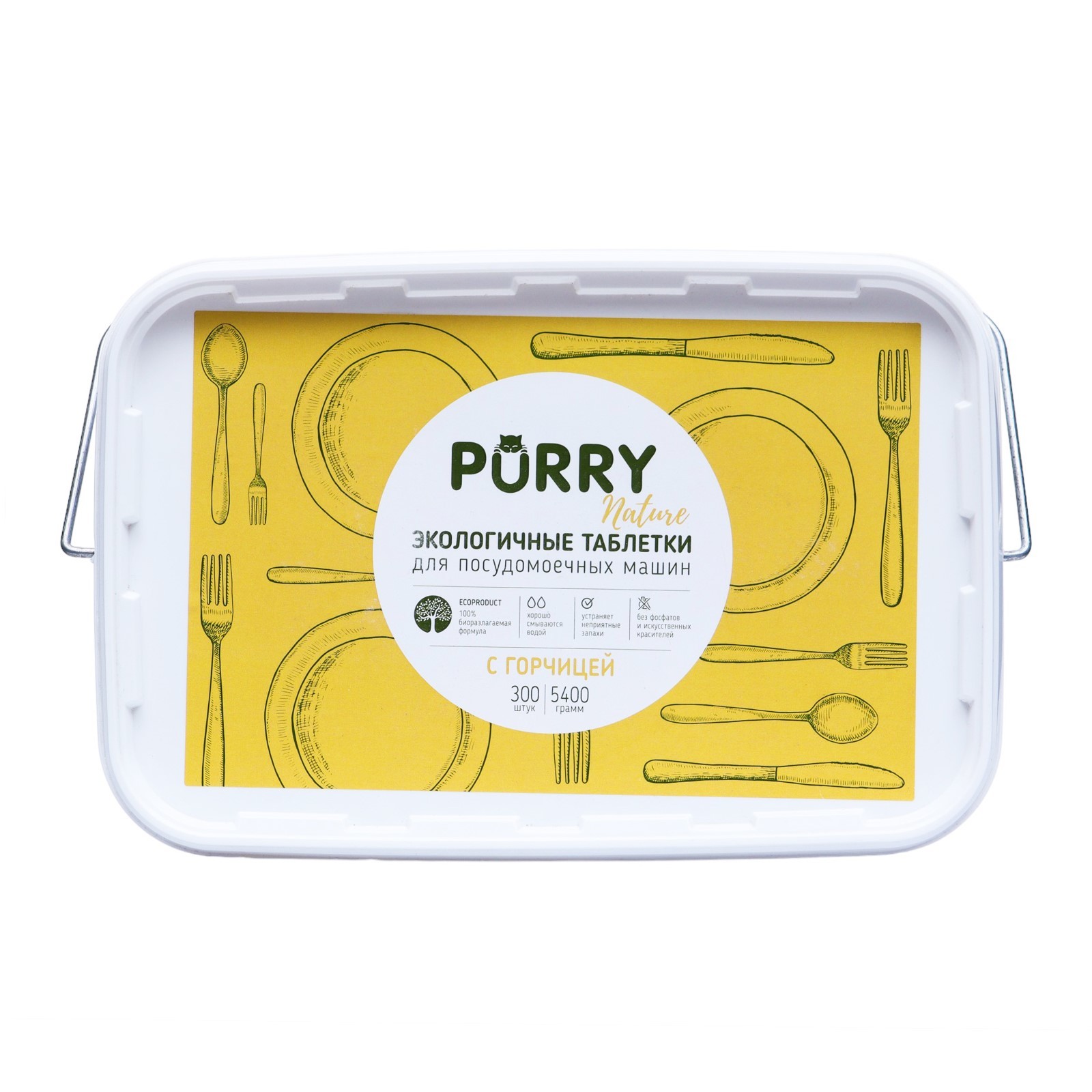 Таблетки для посудомоечных машин purry nature, с натуральной горчицей, 300 шт. Для удобства использования разработана уникальная форма таблетки, позволяющая осуществлять дозирование в зависимости от размера посудомоечной машины и объема посуды в ней Разработанные в лаборатории по оригинальному немецкому рецепту таблетки для посудомоечных машин созданы для обеспечения безопасного для человека мытья посуды. Использование минерально - органического комплекса без фосфатов, отдушек и красителей гарантирует высокий уровень безопасности для человека и окружающей среды. По своему составу таблетки не имеют аналогов на российском рынке. Таблетки подходят для всех типов посудомоечных машин. parts count: 0 В упаковке, шт.: 300 Ароматизированные: Нет Температурное ограничение: Нет  развернуть описание ▼