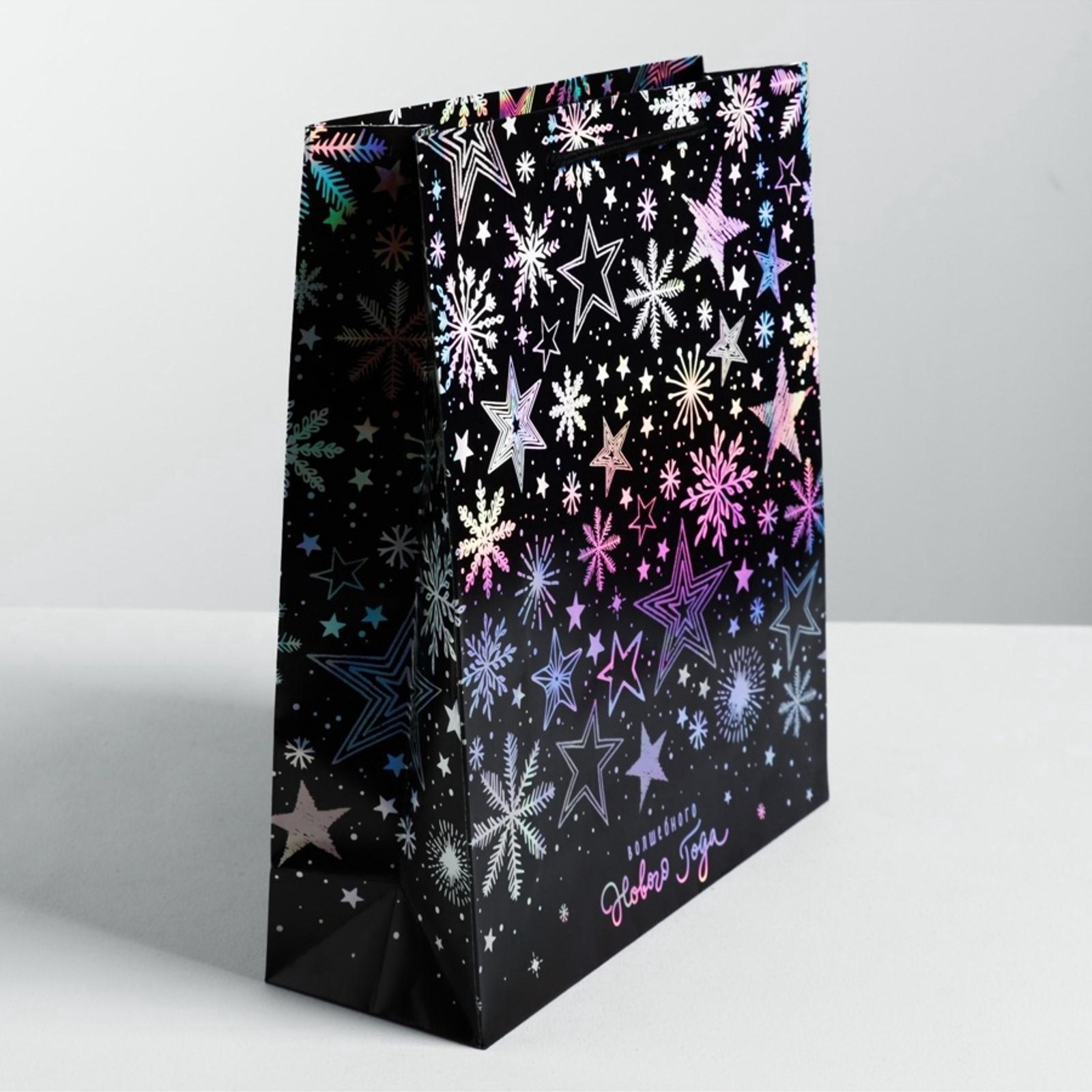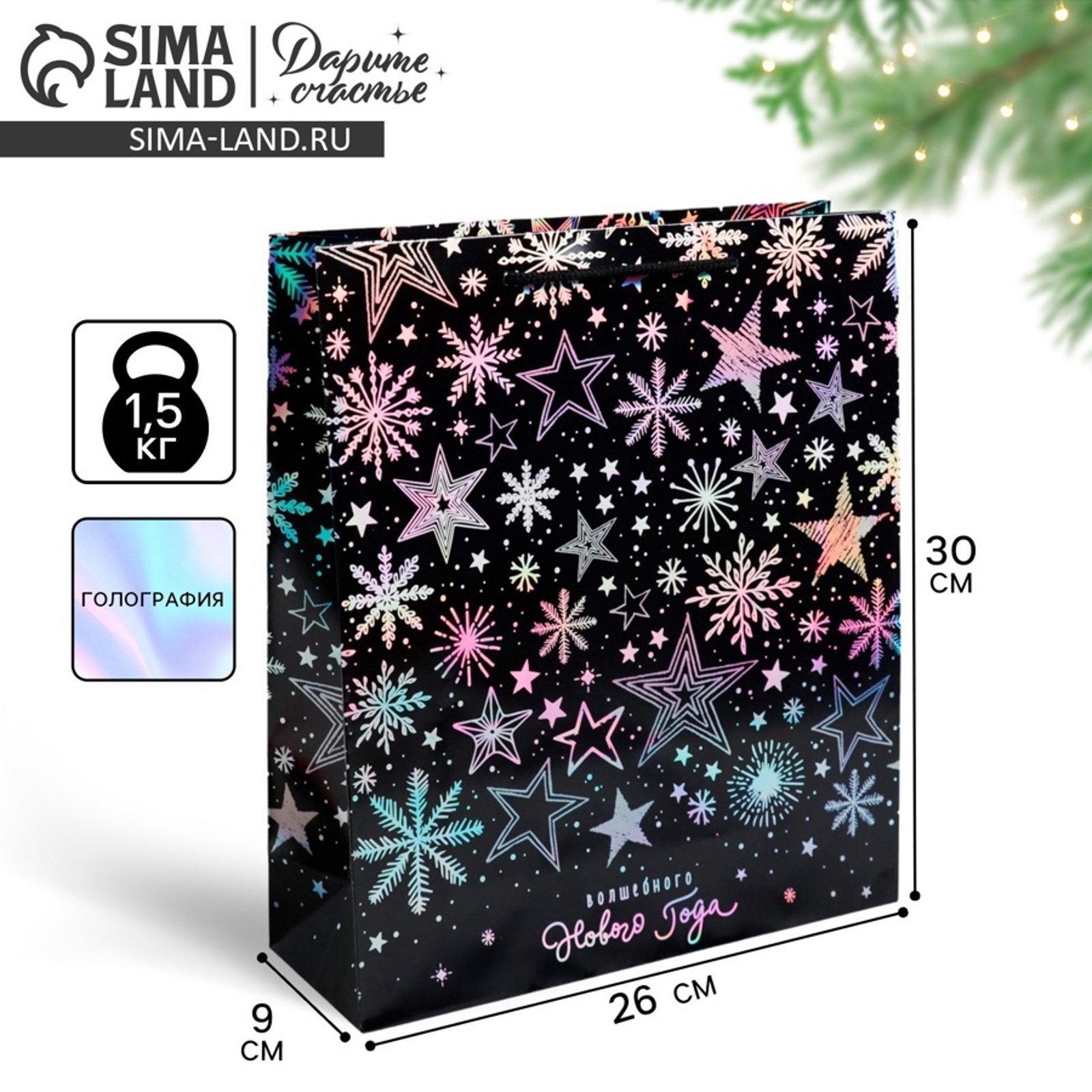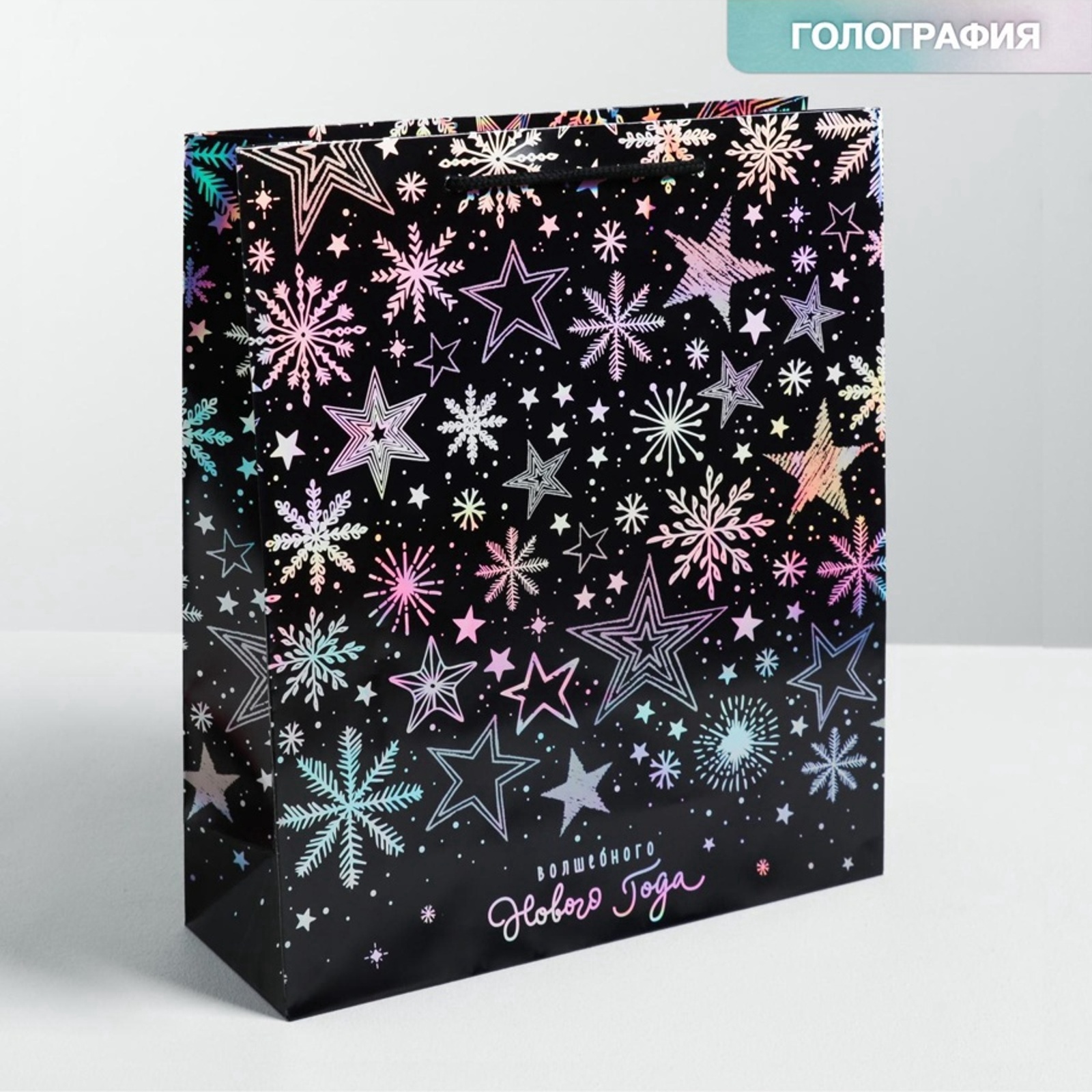 Пакет подарочный голографический «волшебного нового года», M 26 х 30 х 9 см
