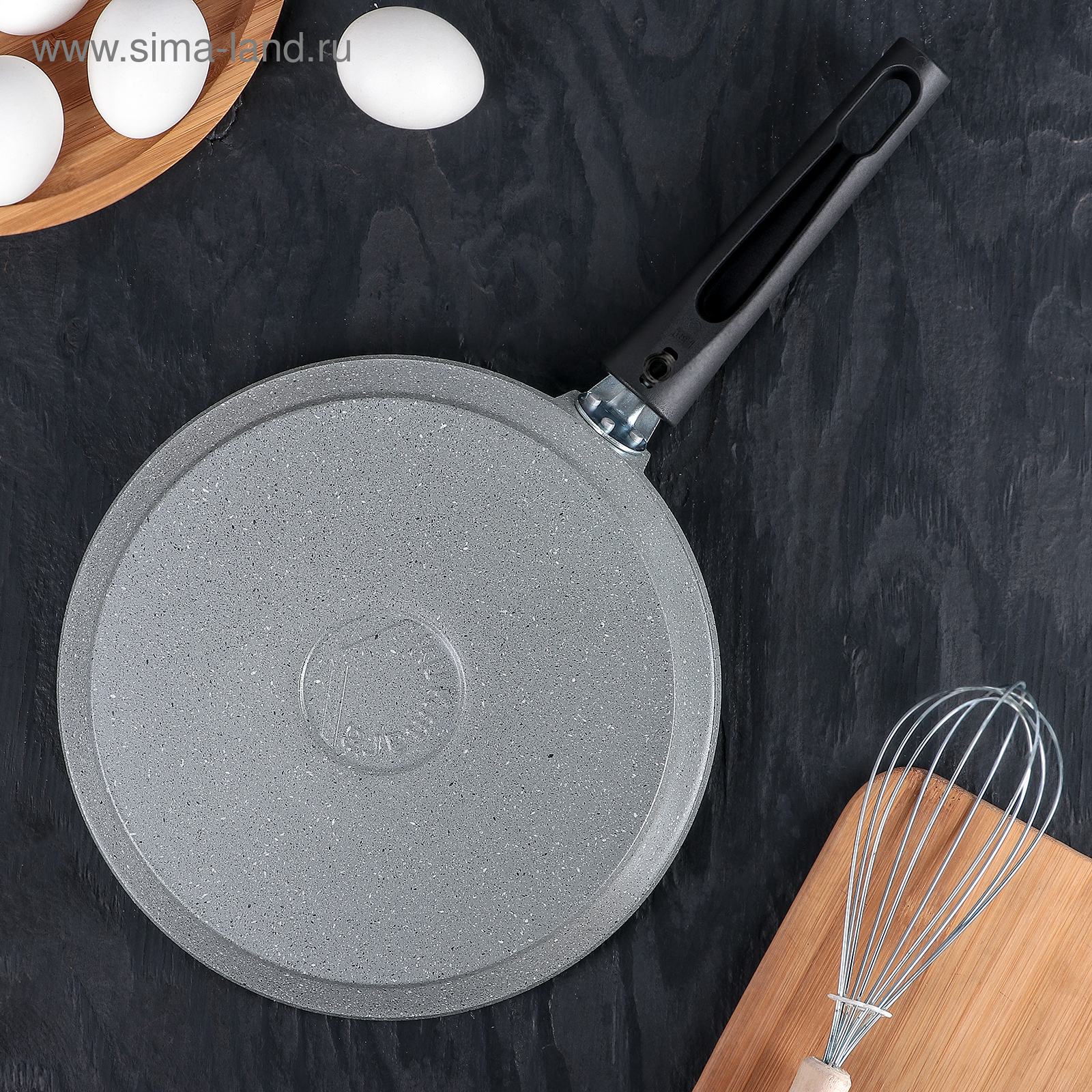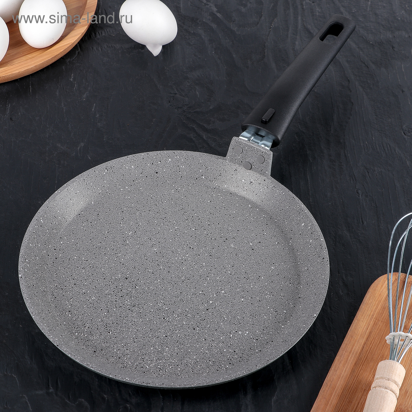 Сковорода блинная, D=24 см, пластиковая ручка, антипригарное покрытие, цвет светлый мрамор
