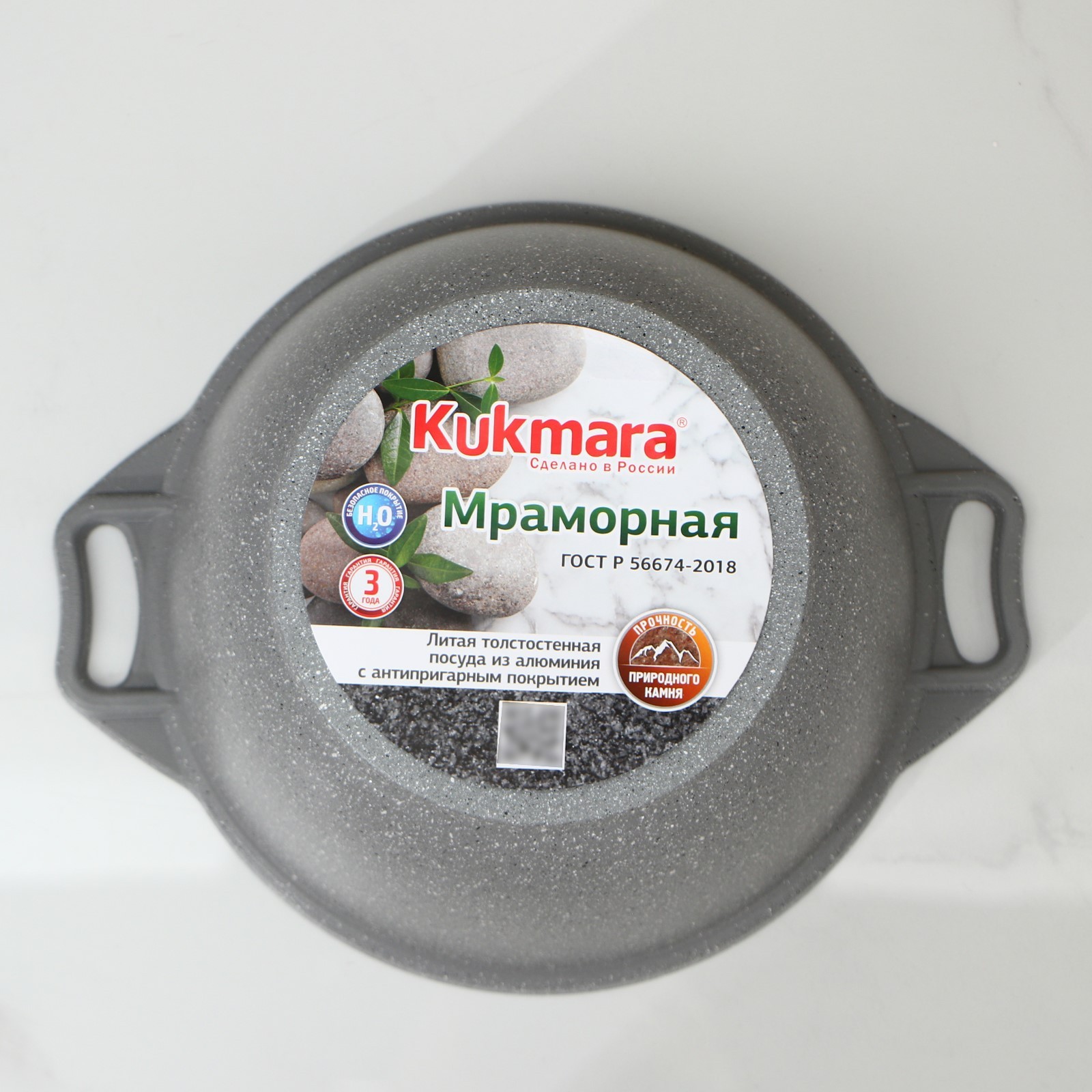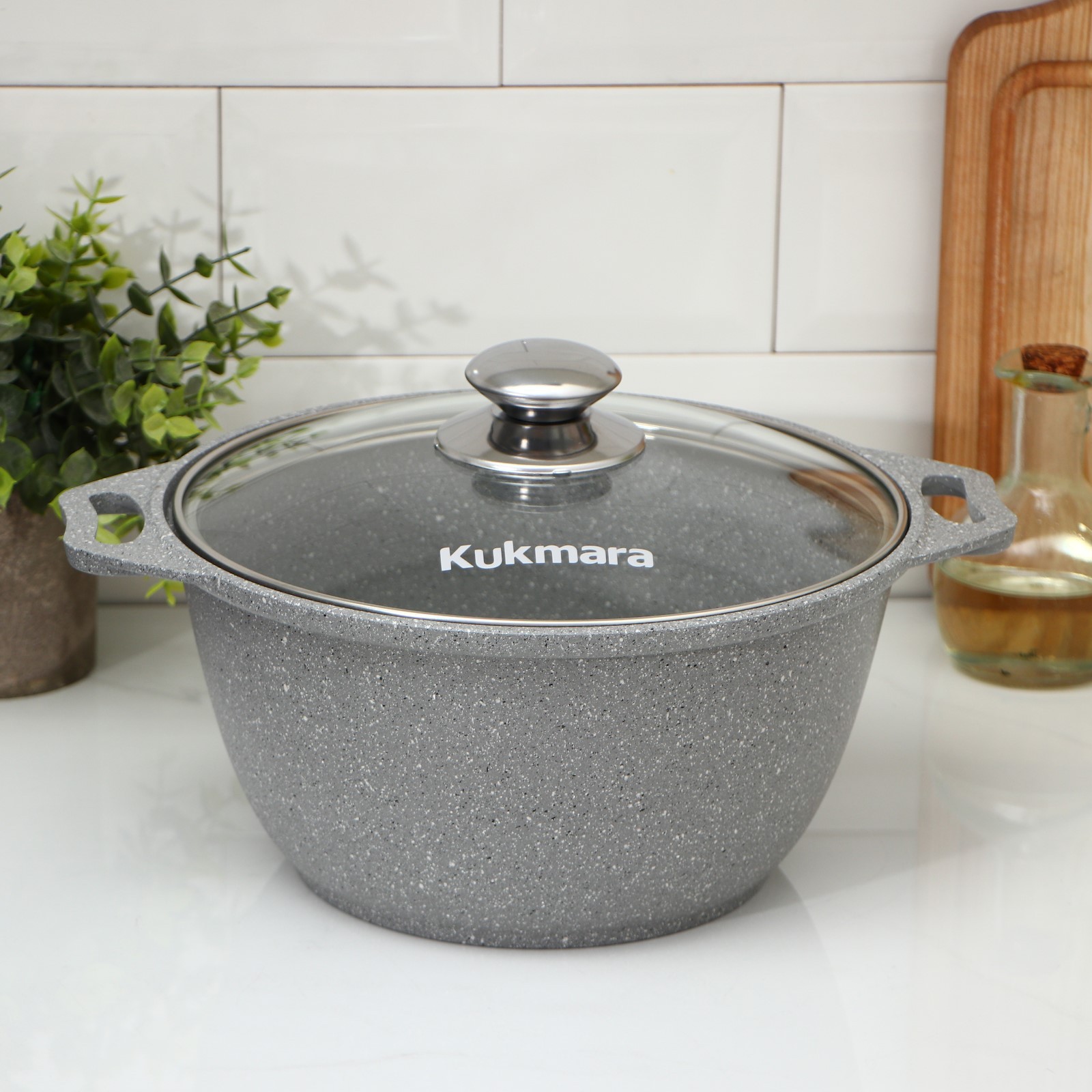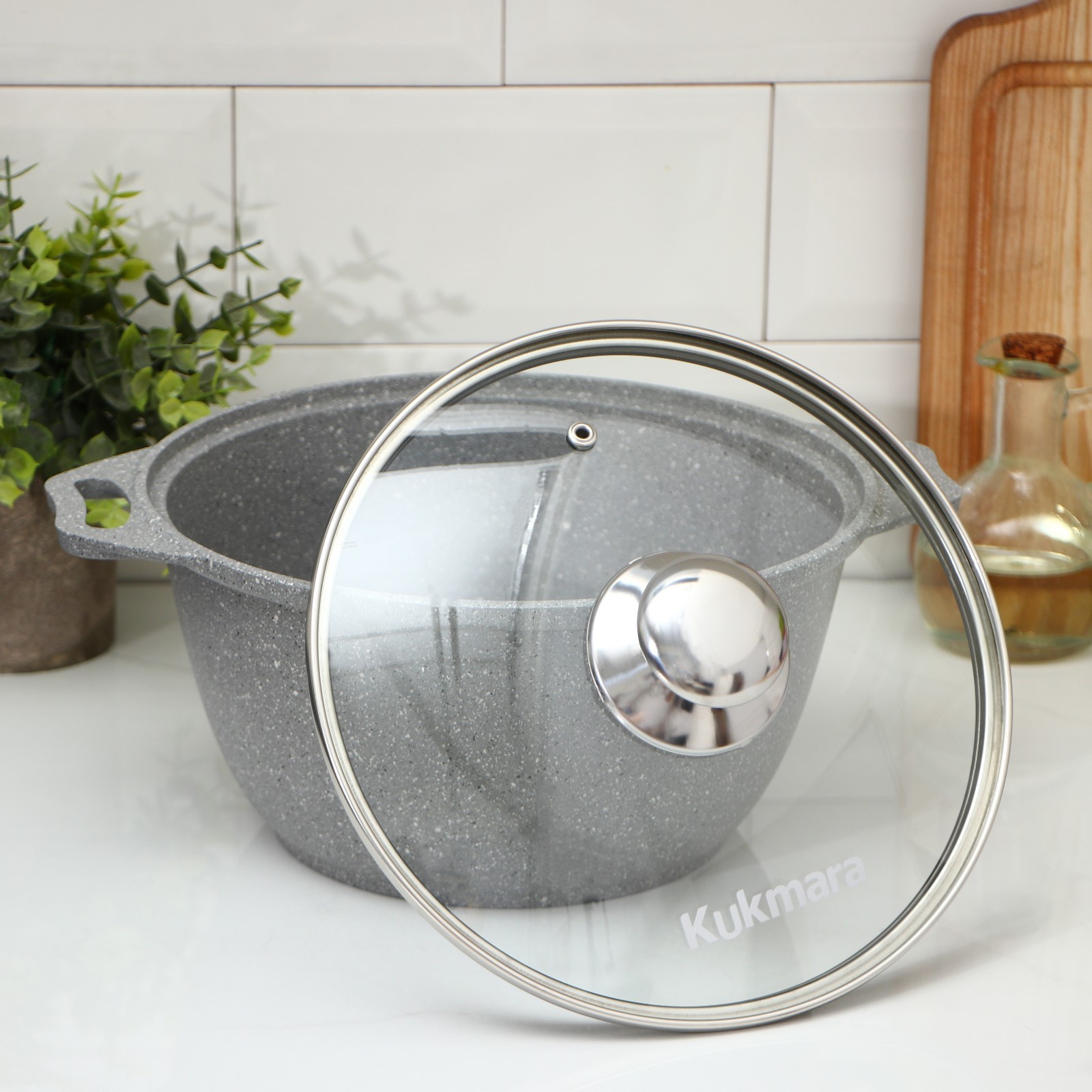 Кастрюля, 3 л, D=24 см, H=12,5 см, стеклянная крышка, антипригарное покрытие, цвет светлый мрамор