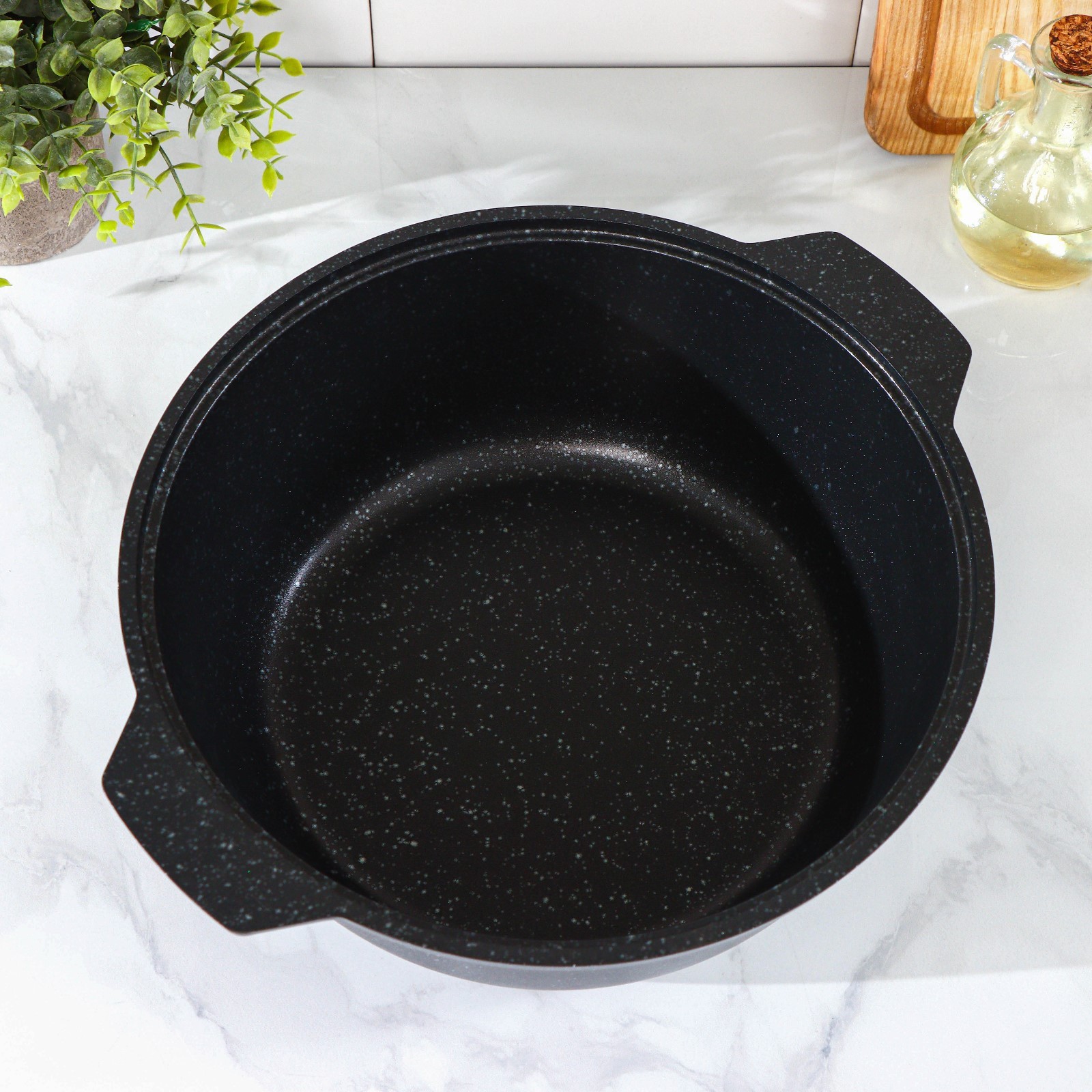 Жаровня, 4 л, D=28 см, H=10,5 см, стеклянная крышка, антипригарное покрытие, цвет тёмный мрамор