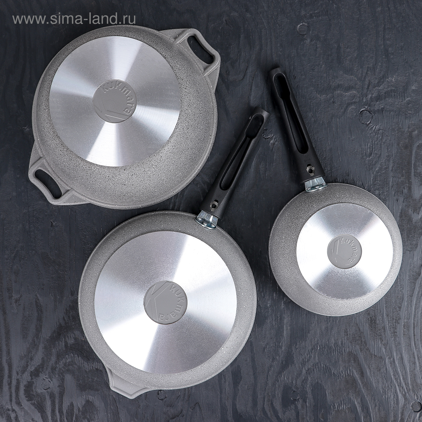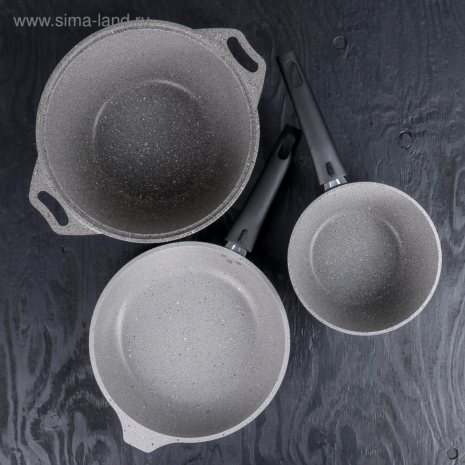 Набор кухонной посуды «мраморная №4», крышка, съёмная ручка, антипригарное покрытие, цвет светлый мрамор