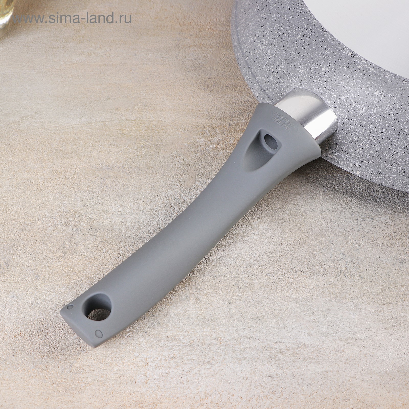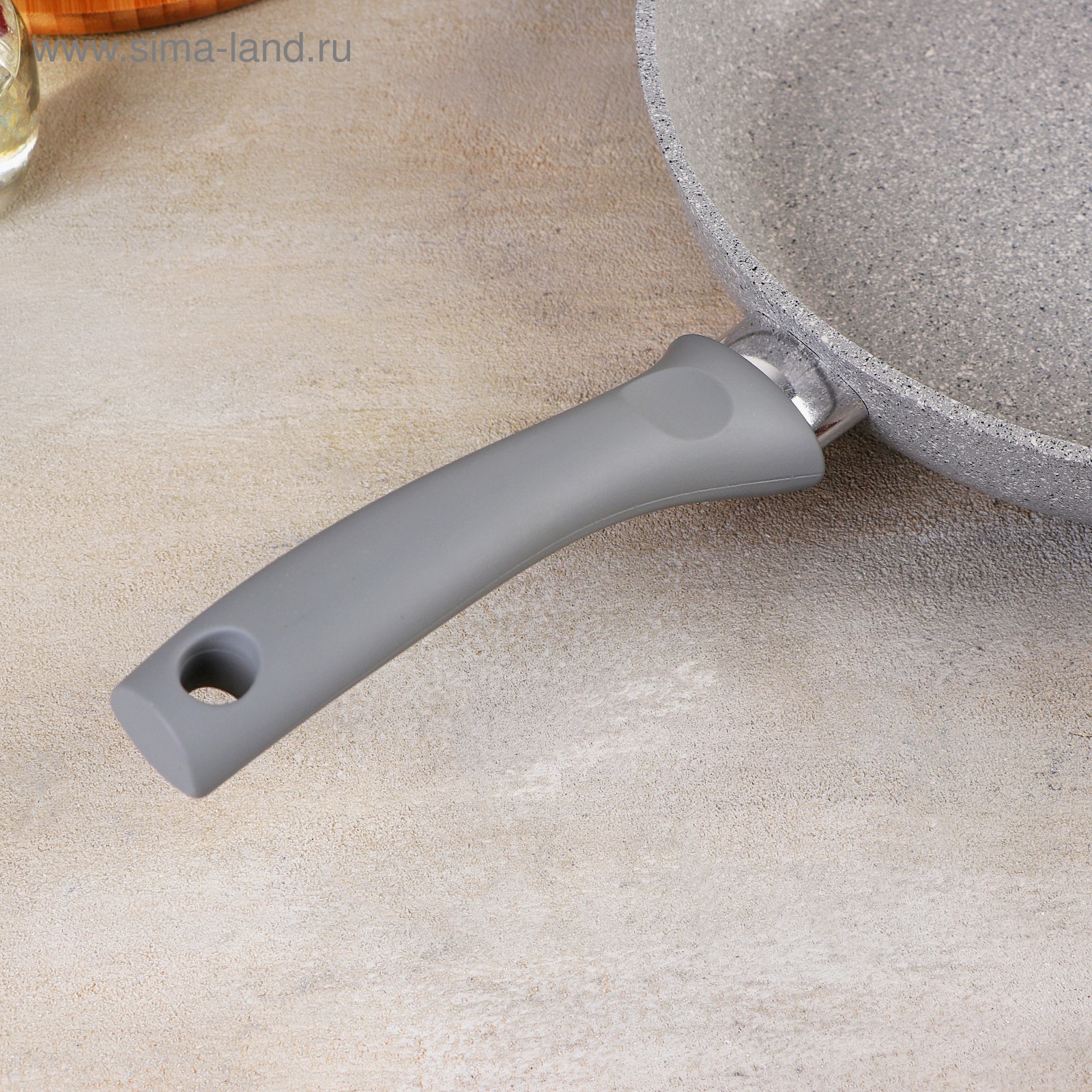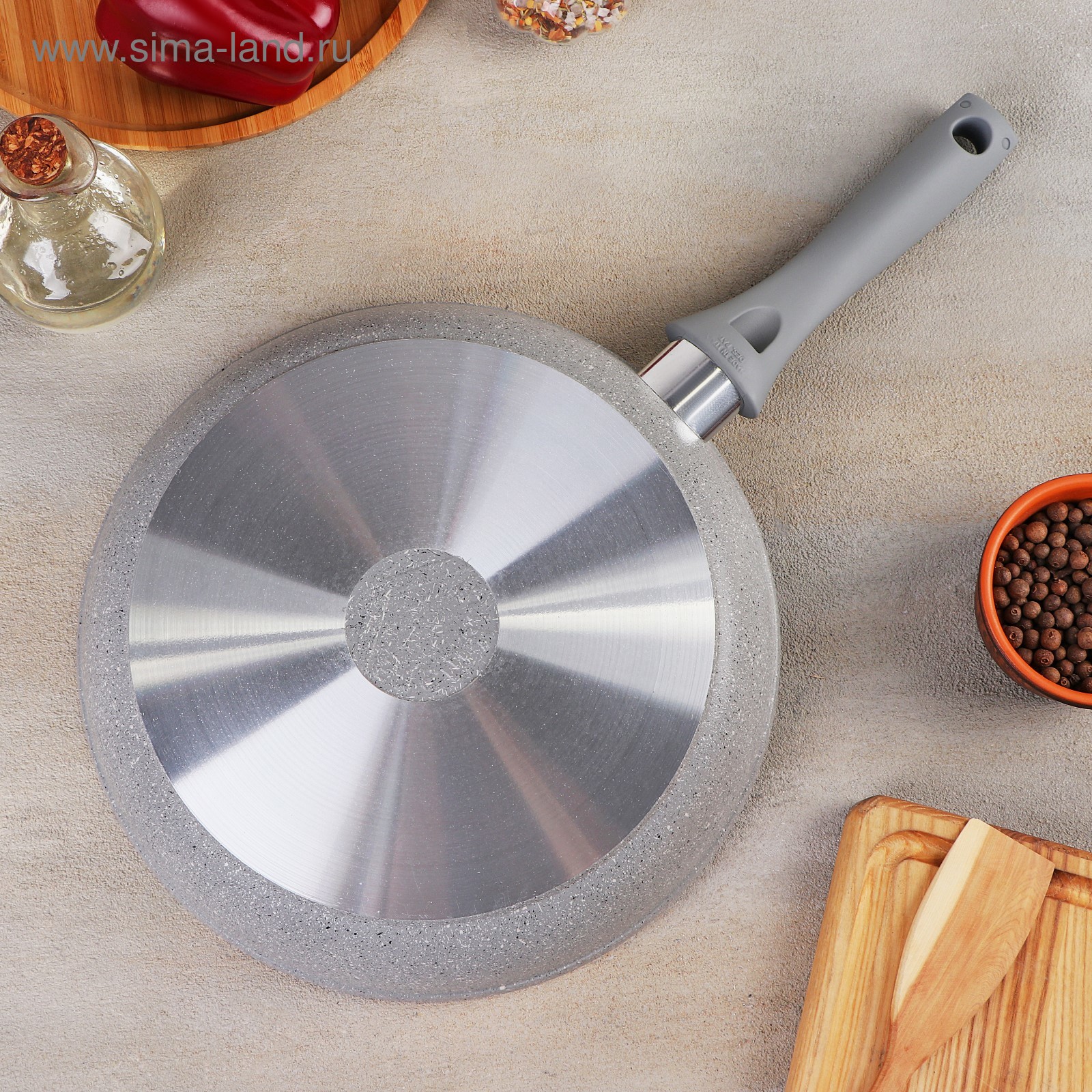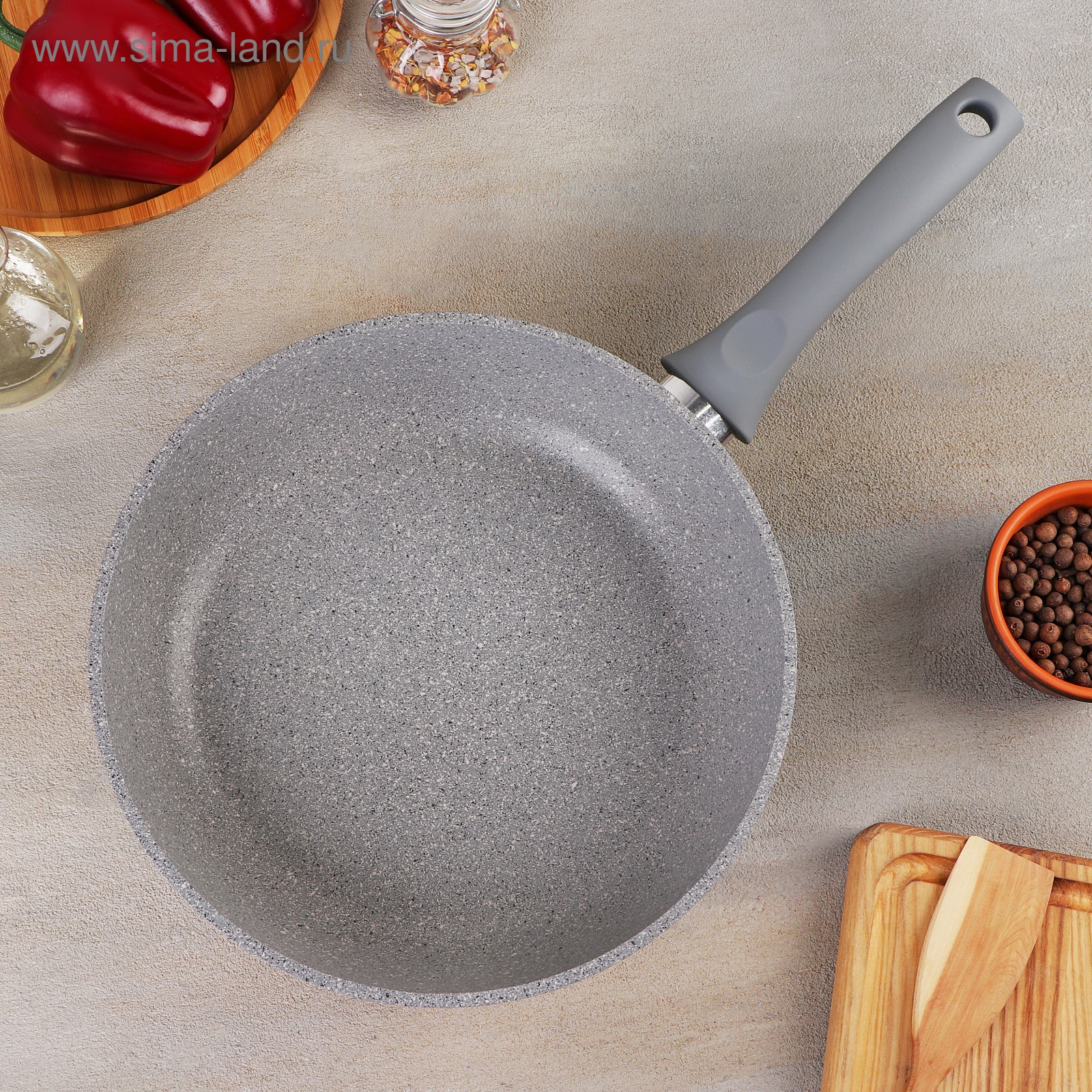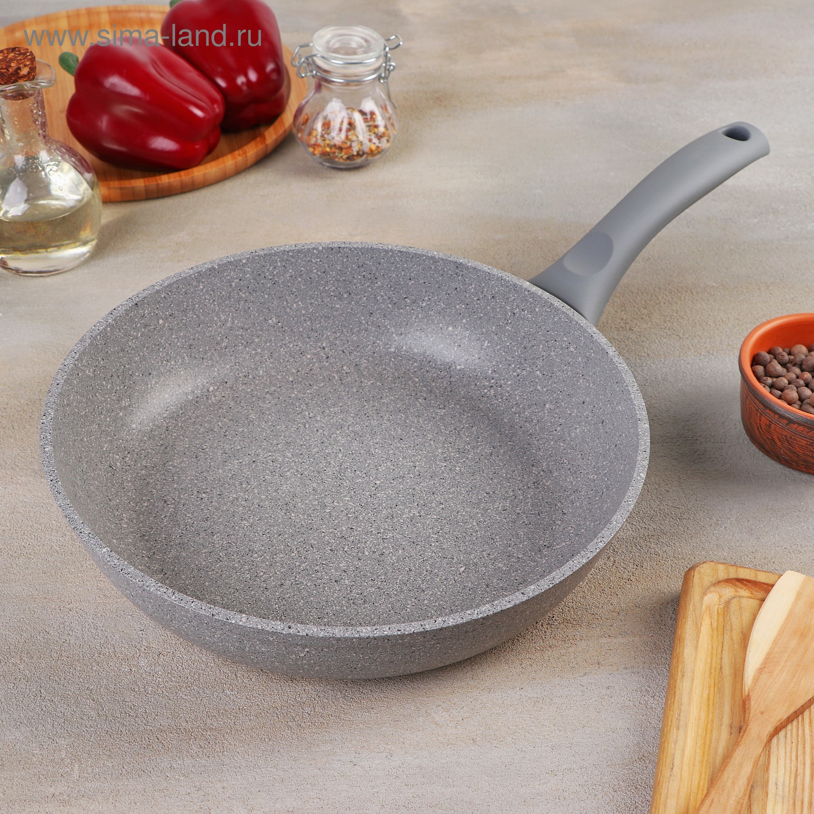 Сковорода с ручкой, антипригарное покрытие, d=26 см, h=60 мм, цвет светлый мрамор. Посуда Kukmara «Мраморная» изготовлена из литого алюминия и покрыта инновационным антипригарным мраморным покрытием на водной основе, усиленным сверхтвёрдыми частицами минералов.