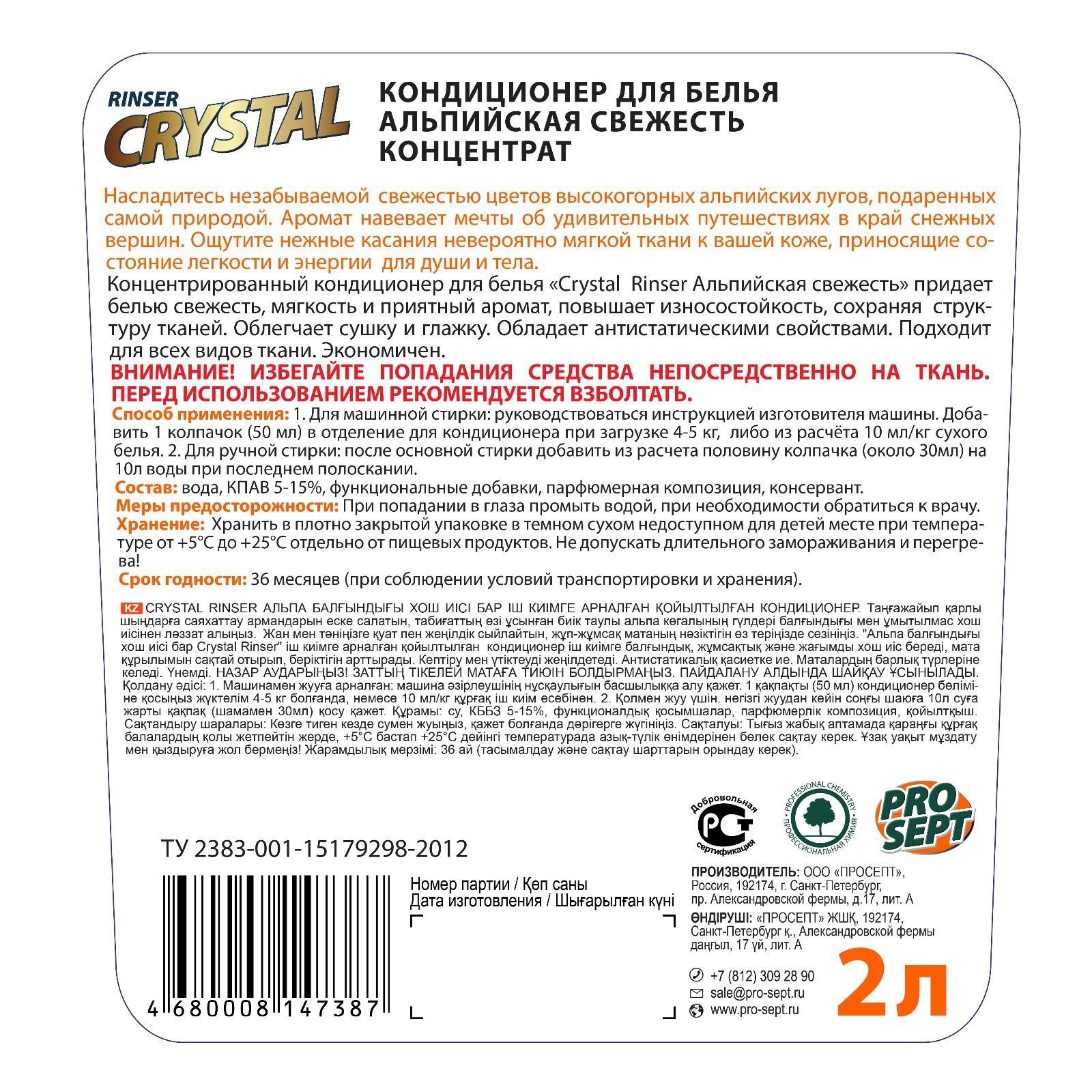 Кондиционер для белья Prosept Crystal Rinser "альпийская свежесть", 2 л