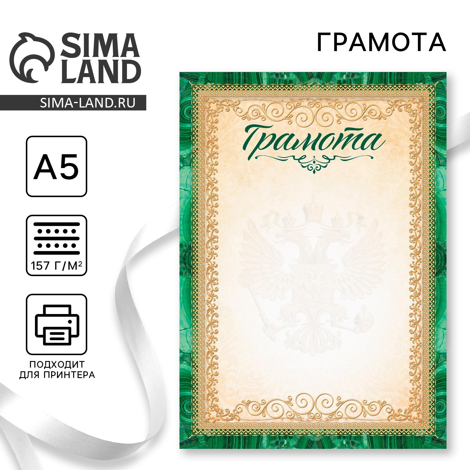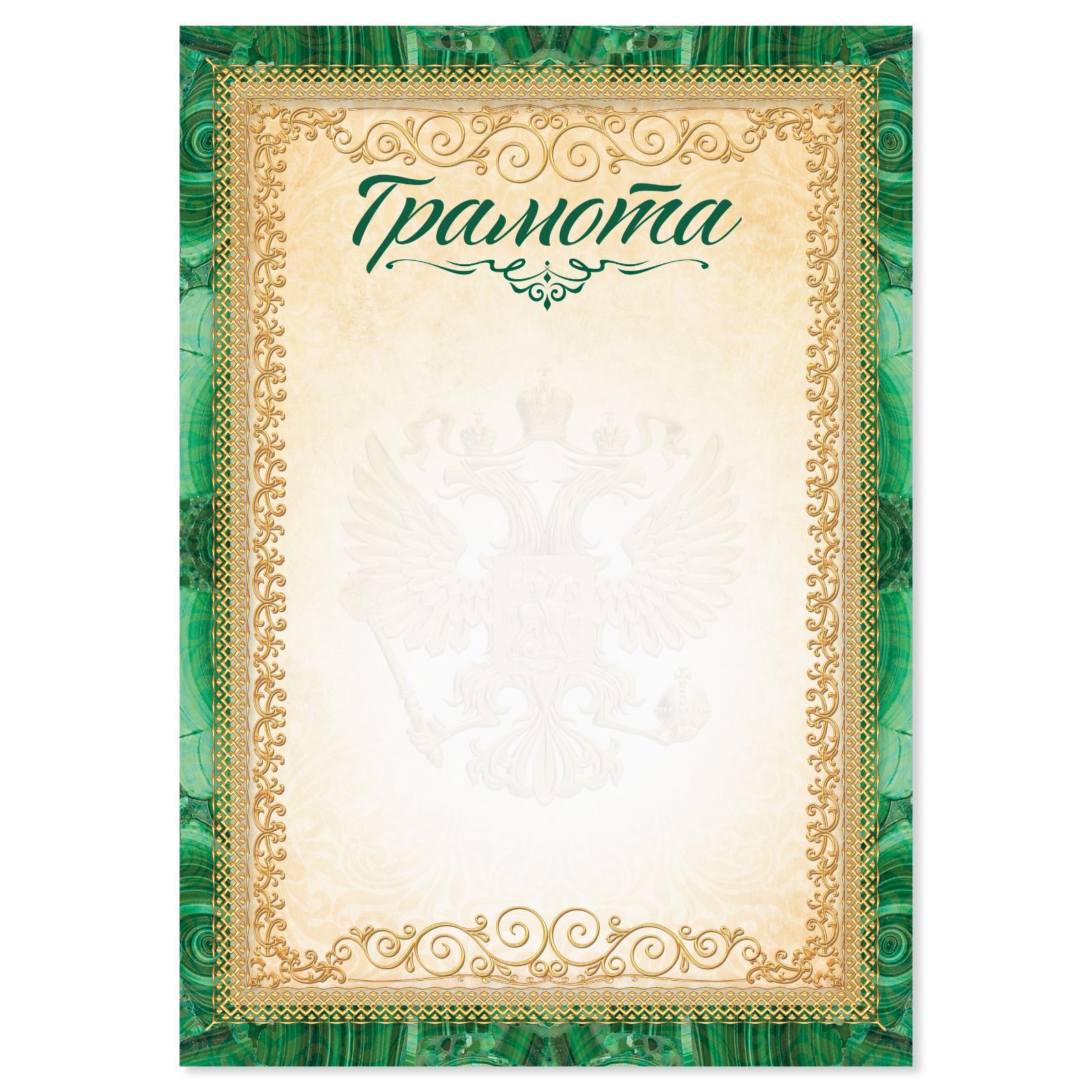 Грамота а5 символика рф, зеленая, 157 гр/кв.м.   Грамота изготовлена из мелованной бумаги плотностью 157 г/кв. м.  Почётная грамота — классическая награда, которую можно поставить в рамку и сохранить на долгие годы как память о лучших победах и важных моментах. Яркий оригинальный дизайн придётся по вкусу получателю. Грамота содержит поле для имени чемпиона и поздравительных слов. Обратите внимание, благодарности, грамоты и дипломы сделаны не из картона, а из бумаги, поэтому могут быть использованы для печати на обычном принтере.  Цвет: Разноцветный Для кого: Унисекс Тематика: Школьные Тематика: Официальные Тематика: Поздравительные Формат: А5 : 157 parts count: 0 : 157 Отделка: Цветная печать Адресат: Без адресата Материал: Мелованная бумага Вид спорта: Универсальный Наличие символики РФ: Да Особенность: Стандартные Каталог ВБ: Да Подходит для принтера: Да  развернуть описание ▼