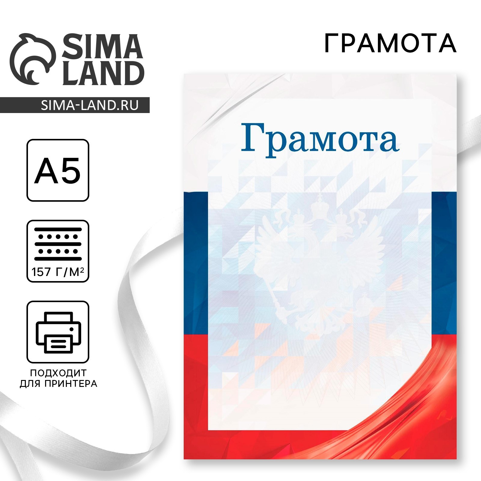 Грамота а5 символика рф, триколор, 157 гр/кв.м. Грамота изготовлена из мелованной бумаги плотностью 157 г/кв. м.