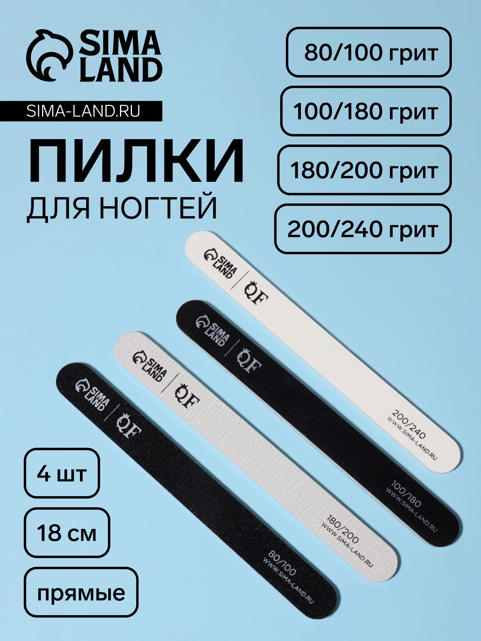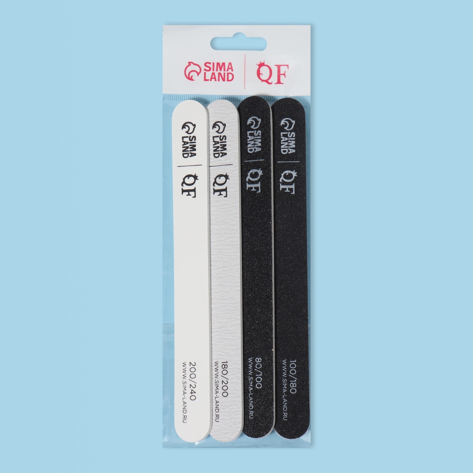 Набор пилок для ногтей, прямые, 80/100, 100/180, 180/200, 200/240 грит, 18 см, 4 шт., разноцветных