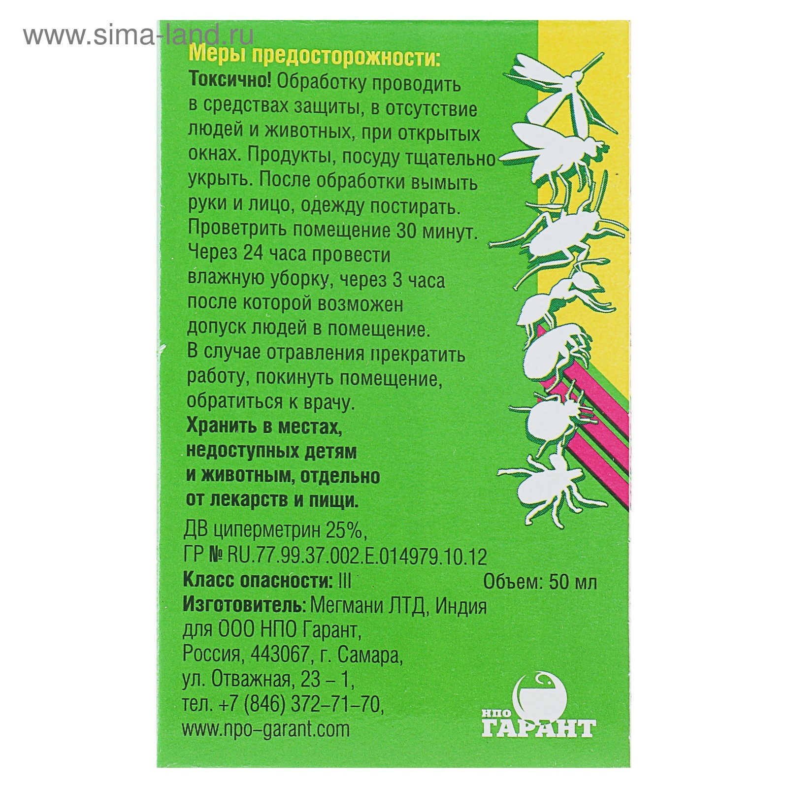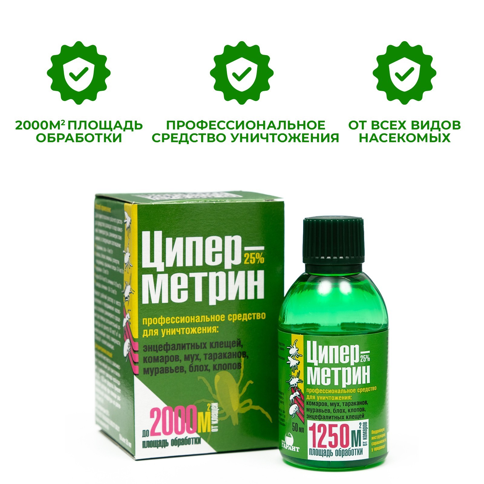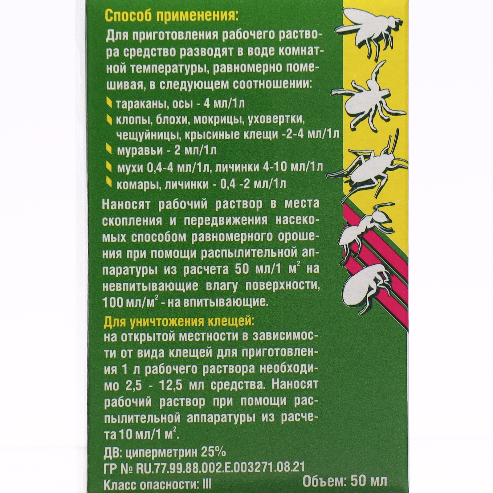 Средство от тараканов, муравьев, блох, комаров, мух и клещей "циперметрин", 50 мл