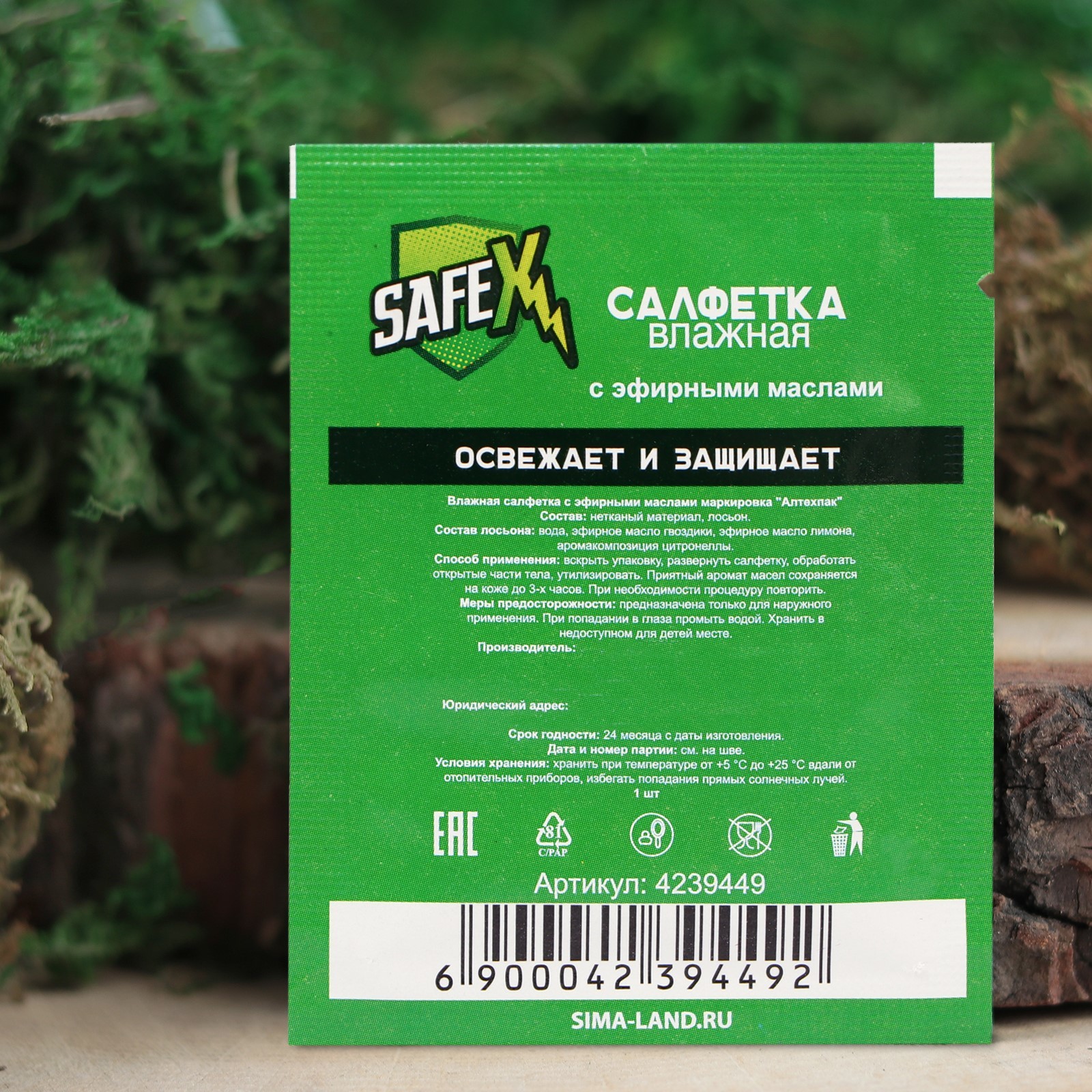 Влажная салфетка от комаров на основе натуральных эфирных масел, Safex 1 шт