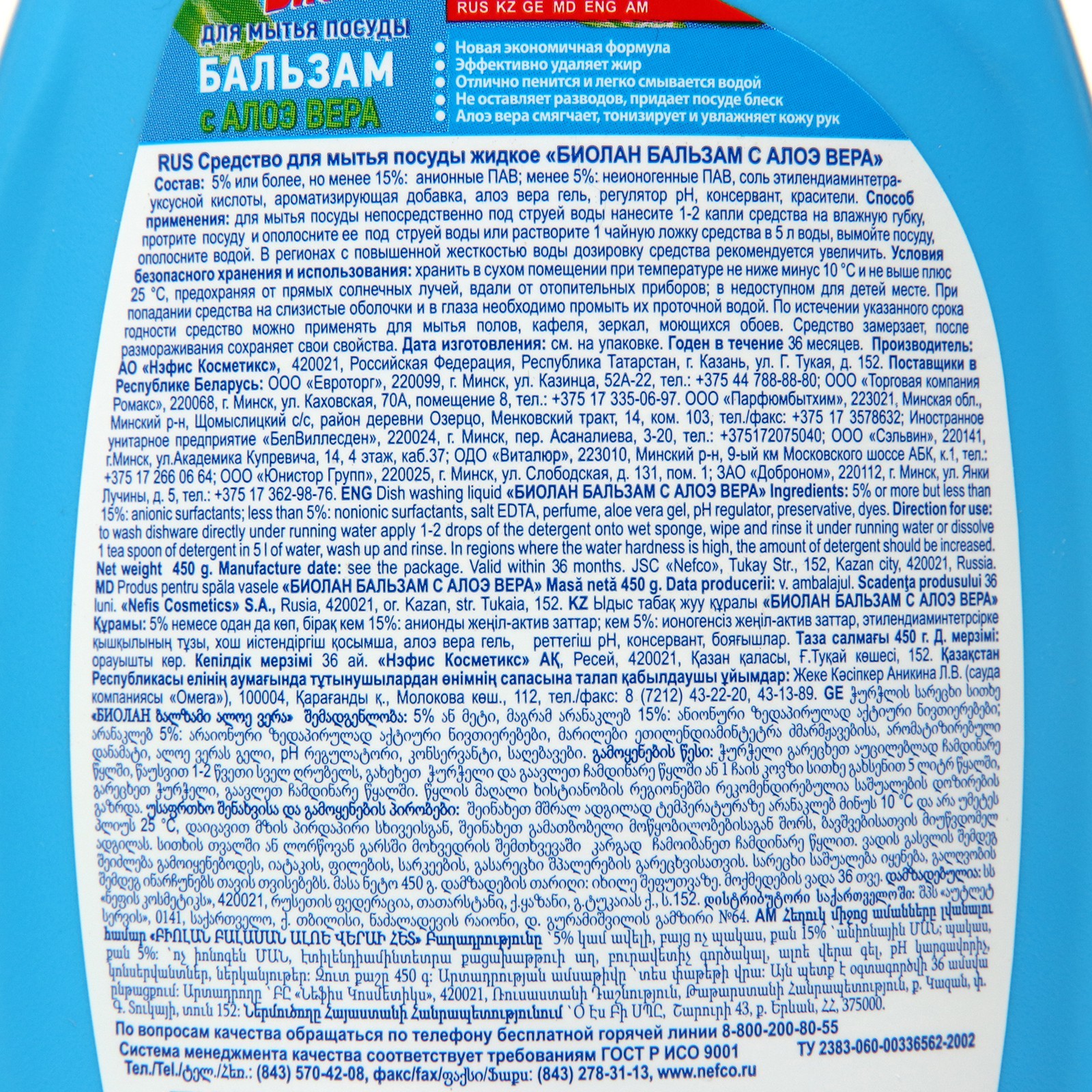 Средство для мытья посуды "биолан - алоэ вера", 450 мл. Средство для мытья посуды "Биолан - Алоэ Вера", 450 мл -Новая экономичная формула -Эффективно удаляет жир -Отлично пенится и легко смывается водой -Не оставляет разводов, придает посуде блеск -Алоэ вера смягчает, тонизирует и увлажняет кожу Ваших рук Способ применения:Для мытья посуды непостредственно под струей воды нанесите 1-2 капли средства на влажную губку, протрите посуду и ополосните ее под струей воды или растворите 1 чайную ложку средства в 5 л воды, вымойте посуду, ополосните водой. Состав:5% или более, но менее 15%: анионные ПАВ; менее 5%: неионогенные ПАВ, соль этилендиаминтетрауксусной кислоты, ароматизирующая добавка, алоэ вера гель, регулятор рН, консервант, красители Меры предосторожности: Использовать средство только по назначению. Хранить в недоступном для детей месте. Хранить вдали от пищевых продуктов. Хранить с закрытой крышкой. Хранить в сухом, прохладном и темном месте. Условия хранения: Хранить в сухом помещении при температуре не ниже минус 10 0С и не выше плюс 25 0С, предохраняя от прямых солнечных лучей, вдали от отопительных приборов; в недоступном для детей месте. При попадании средства на слизистые оболочки и в глаза необходимо промыть их проточной водой. По истечении указанного срока годности средство можно применять для мытья полов, кафеля, зеркал, моющихся обоев. Средство замерзает, после размораживания сохраняет свои свойства. Вес, г/Объём, мл: 450 Температурное ограничение: Нет Вид: Гель  развернуть описание ▼