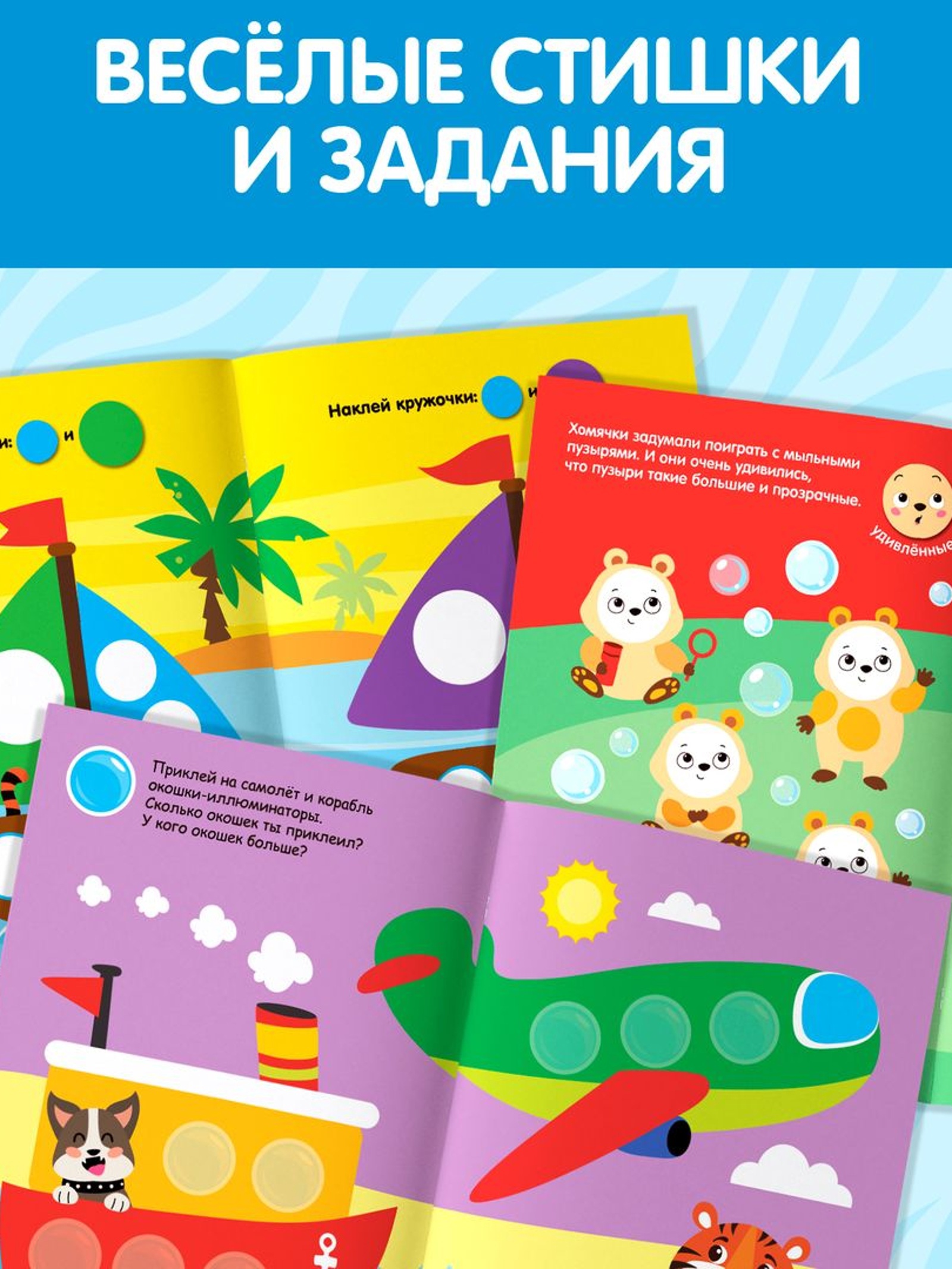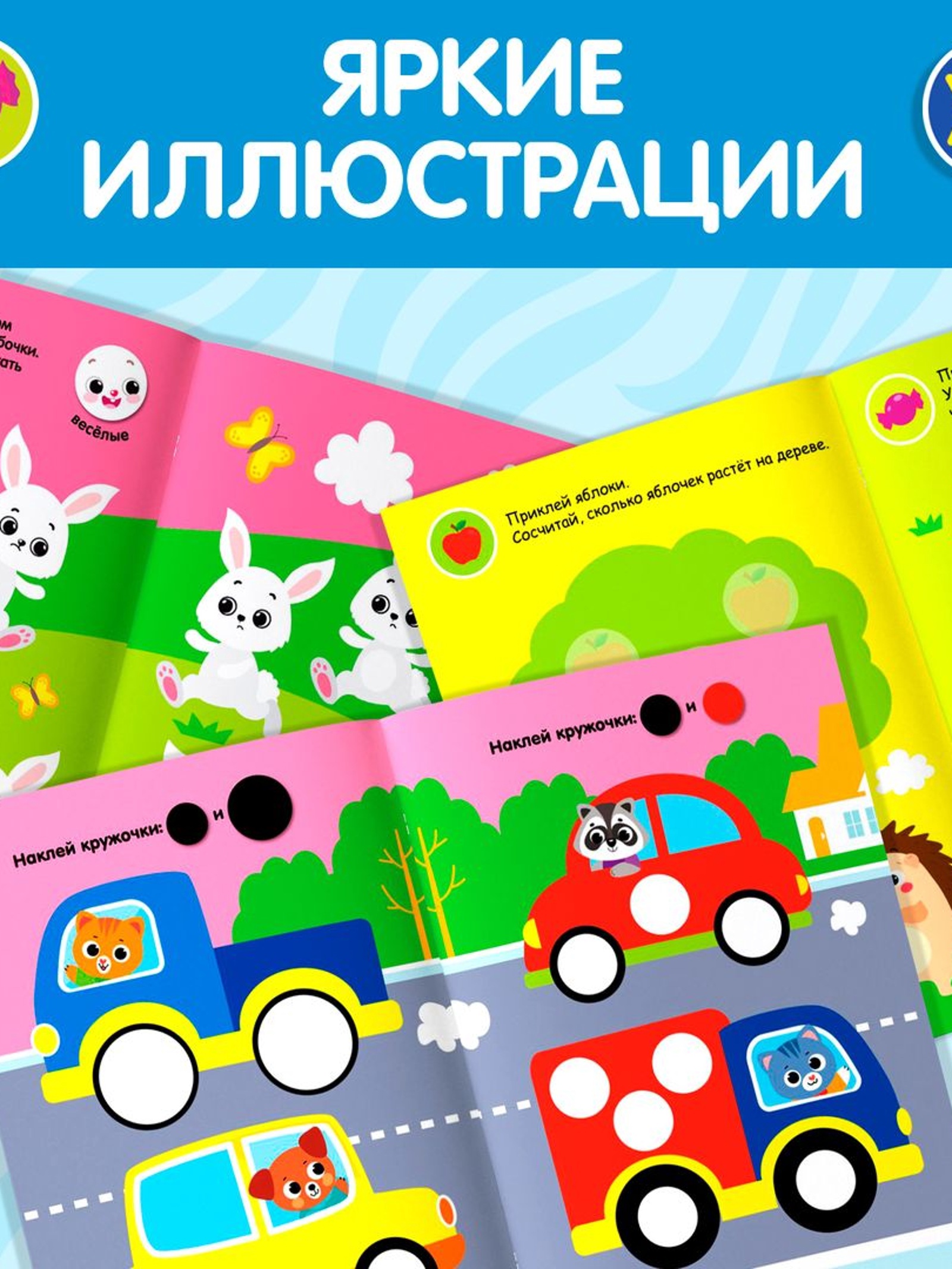 В набор «Умный малыш» входит 3 развивающих книги с наклейками-кружочками на разные темы: