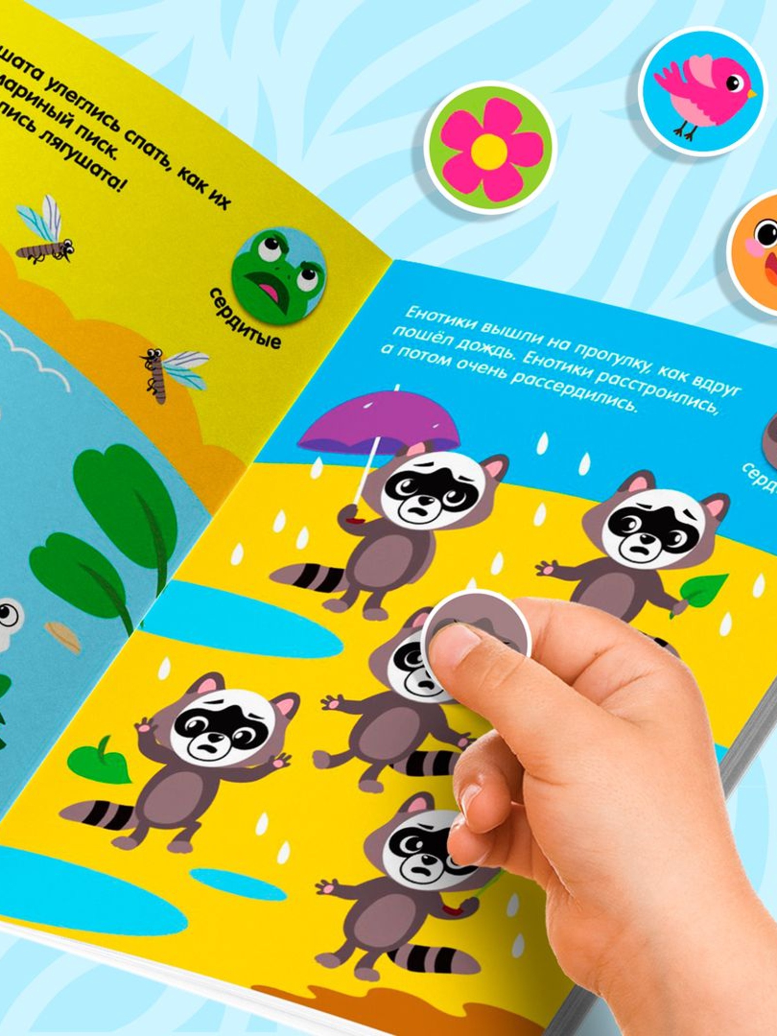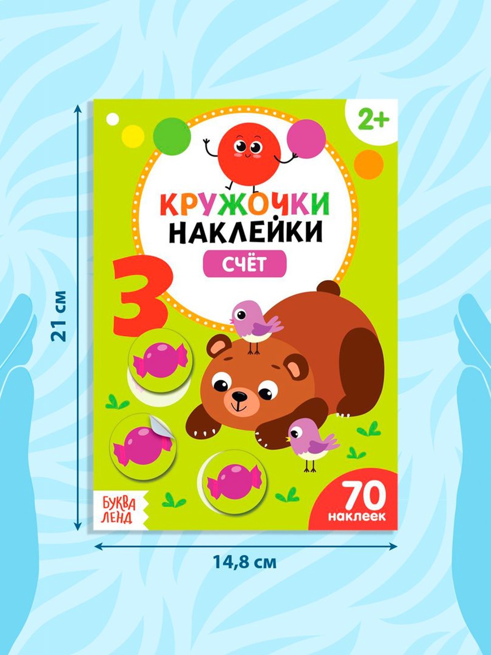 На каждом развороте книги свой сюжет и небольшая подсказка, куда именно нужно приклеить кружочек.Крупные стикеры удобно держать и отклеивать малышам, которые ещё только осваивают этот вид творчества.Чем полезны занятия с наклейками