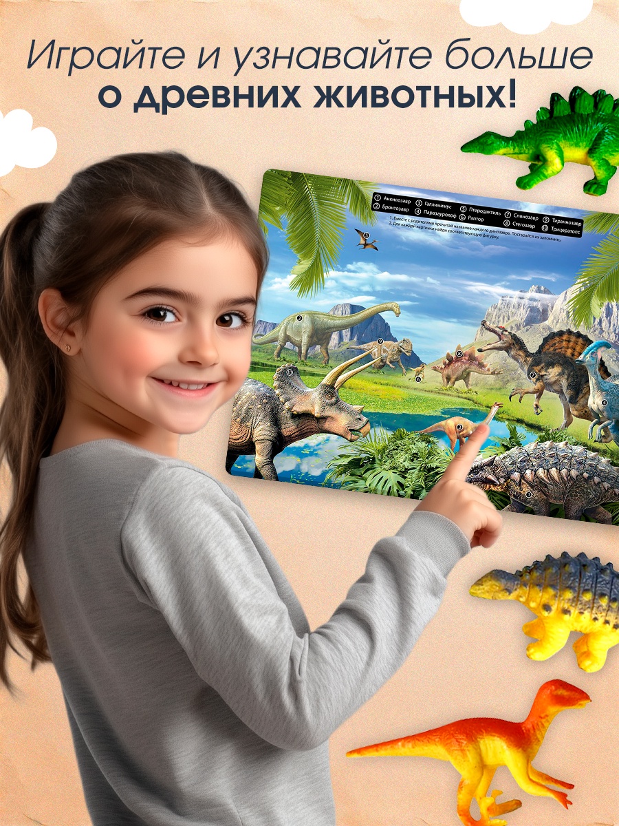 Обучающий набор «эра динозавров», животные и плакат, по методике монтессори, для детей
