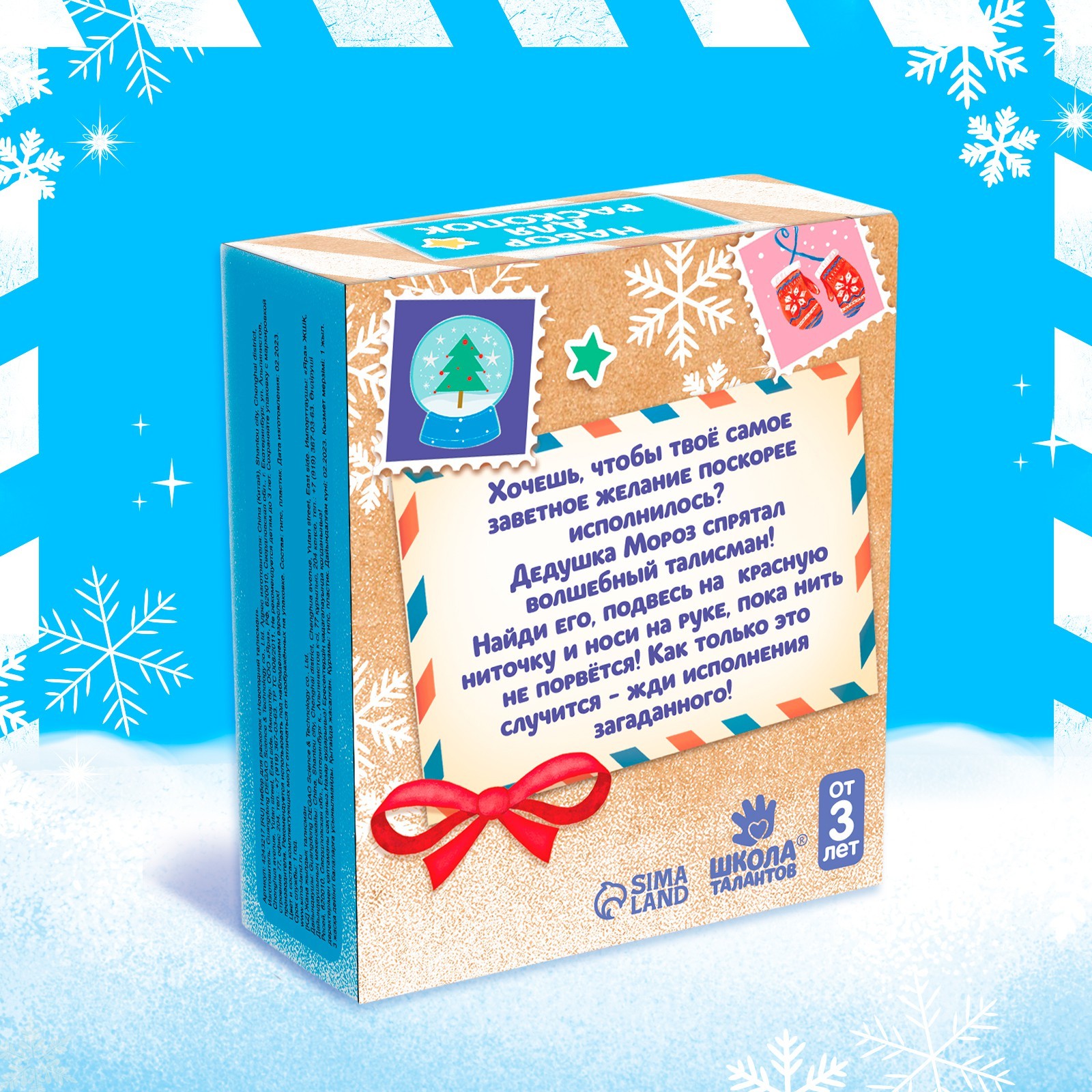 Дедушка Мороз спрятал волшебный талисман, который исполнит самое заветное желание! Когда он найдётся, его нужно подвесить на красную нить и носить на руке. Как только ниточка порвётся — исполнится желание.