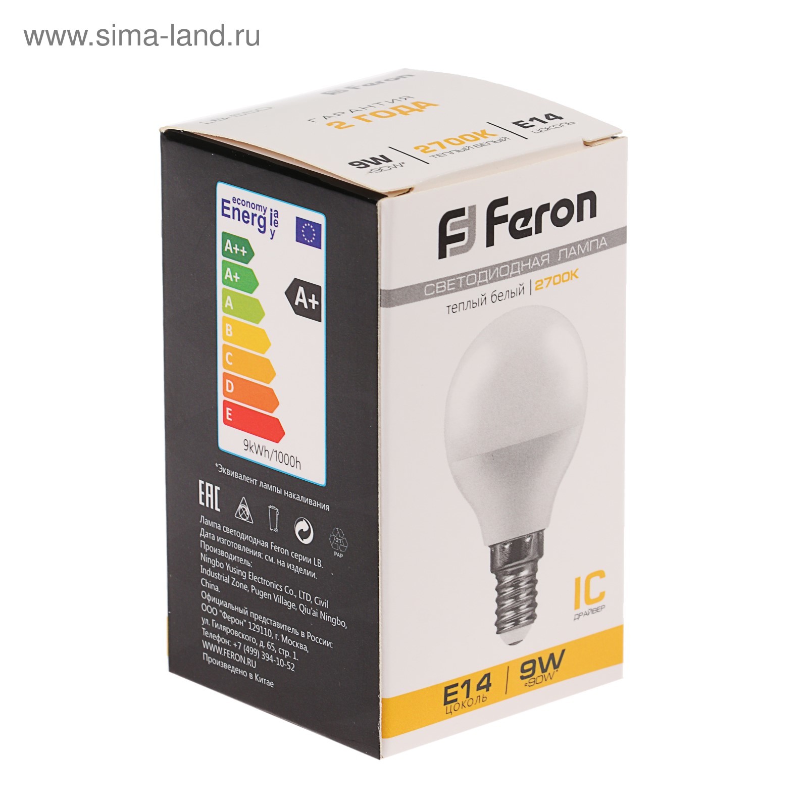 Лампа светодиодная Feron, G45, 9 вт, е14, 2700 к, теплый белый