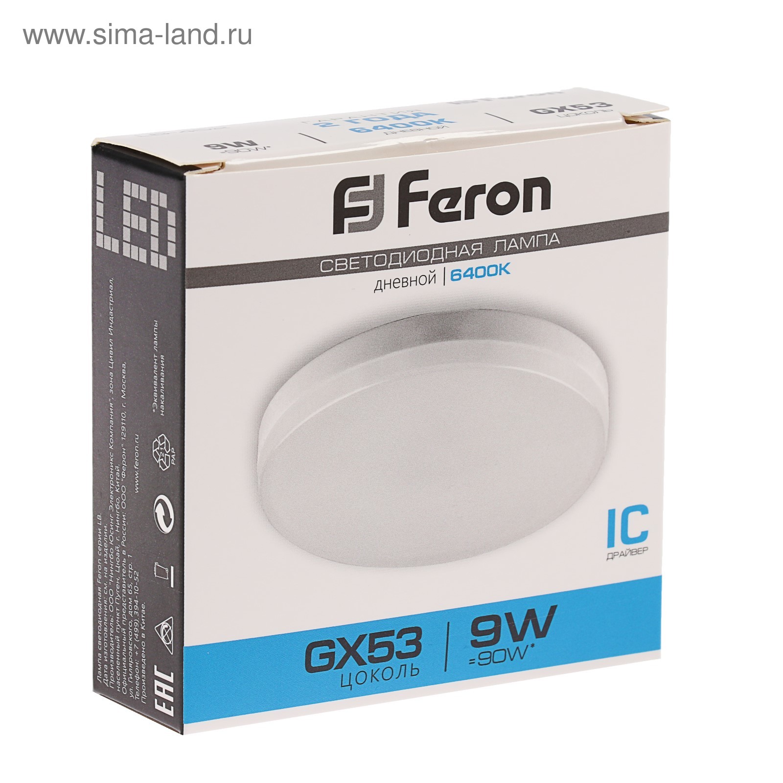 Лампа светодиодная Feron, 9 вт, Gx53, 6400 к, холодный белый