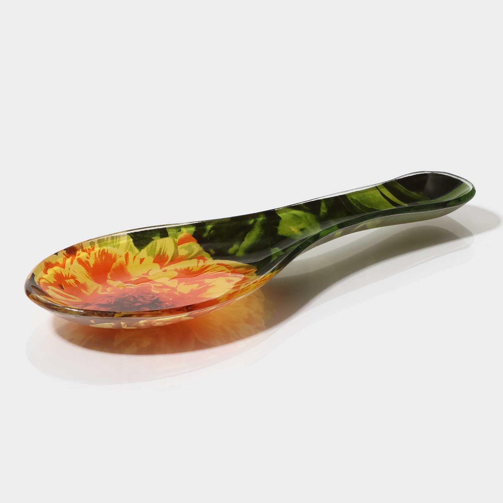 Подставка стеклянная под ложку доляна «хризантема», 21x7,5 см