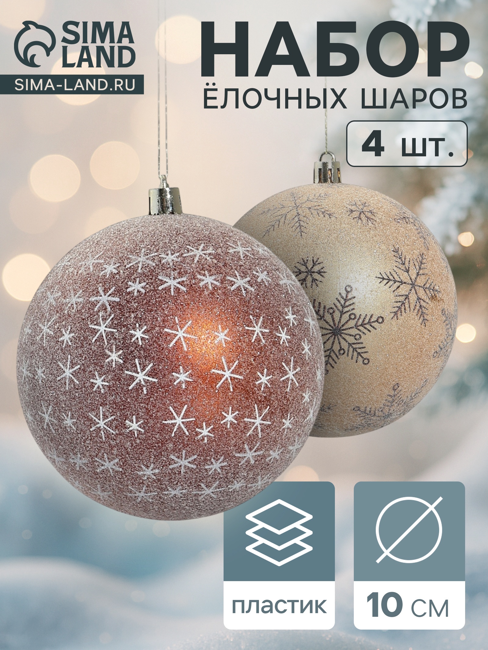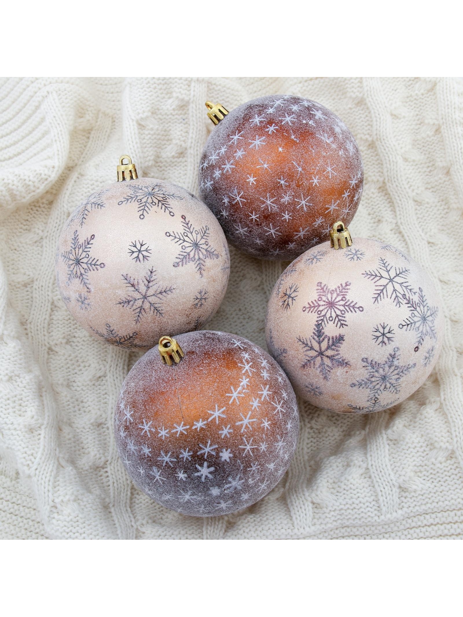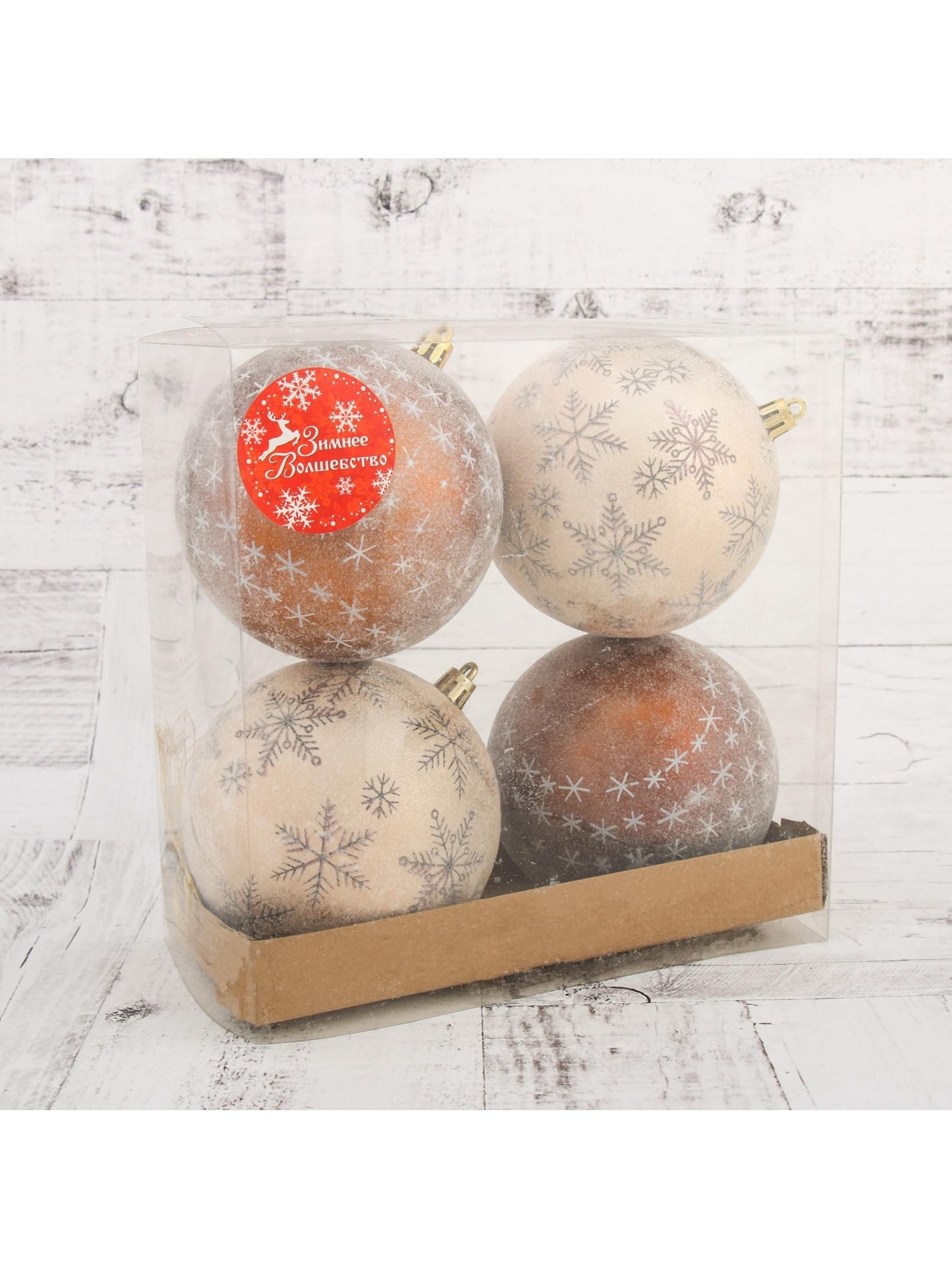 Ёлочные игрушки «морозное утро», шары новогодние, D=10 см, набор 4 шт., коричневый