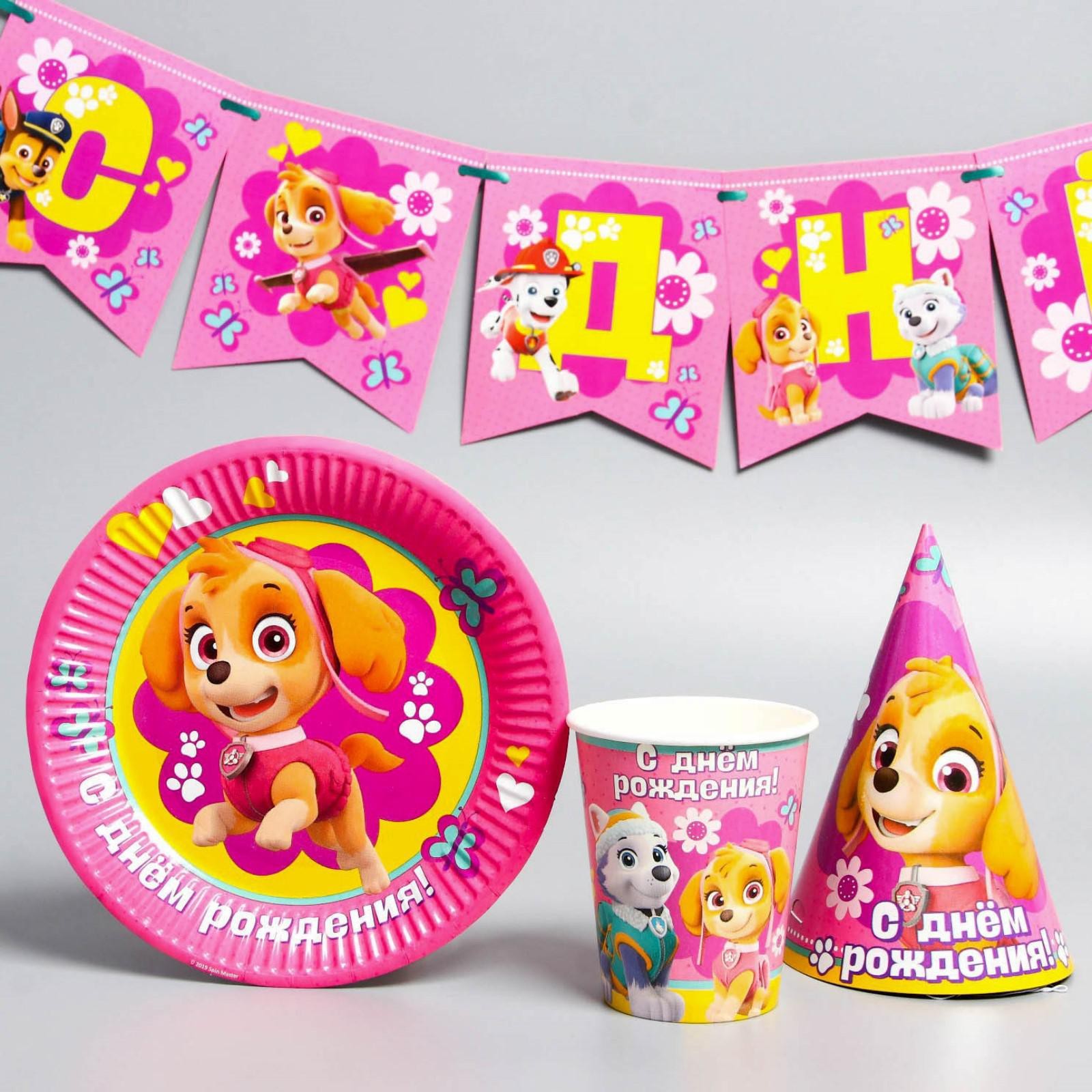 Набор бумажной посуды, на 6 персон "с днем рождения!", щенячий патруль