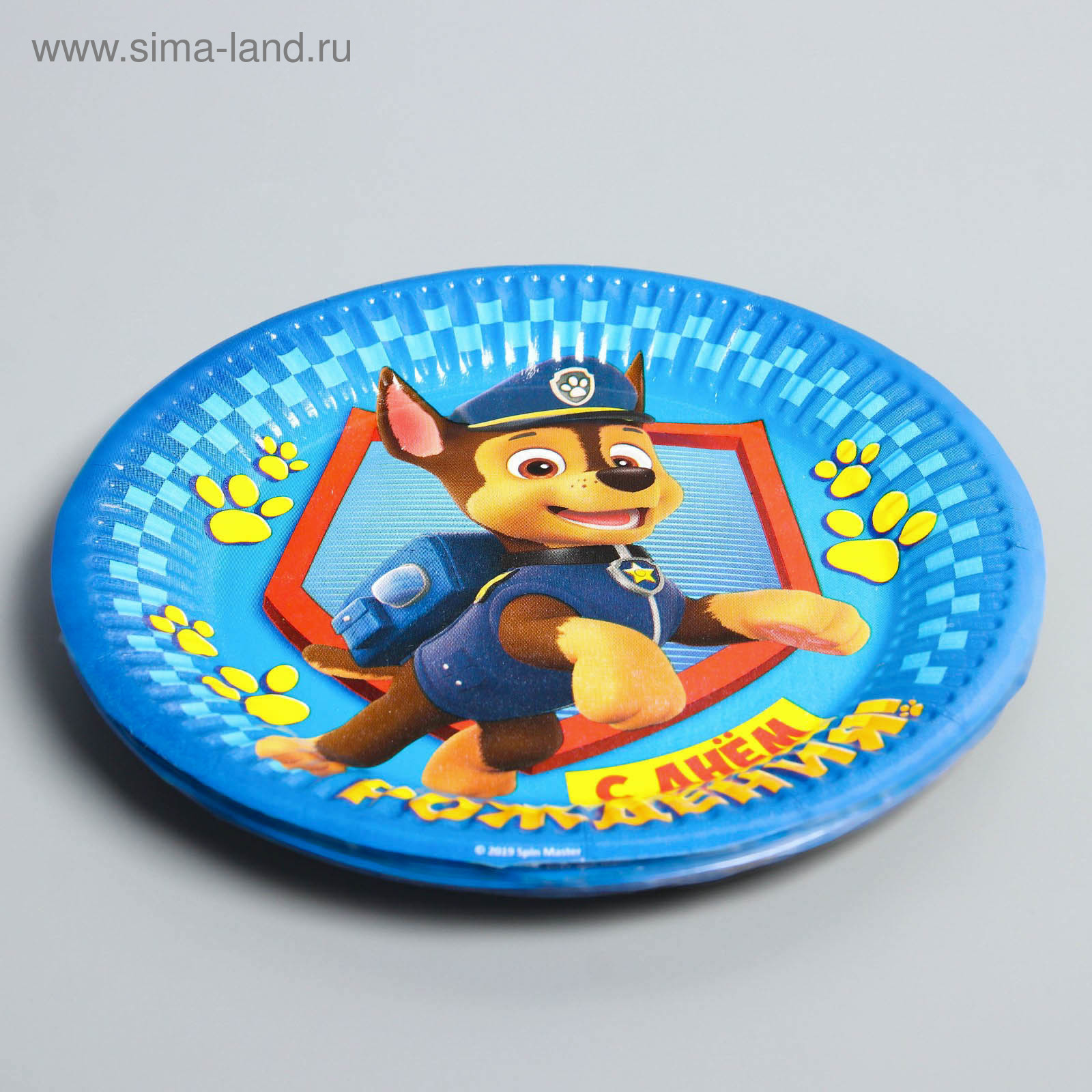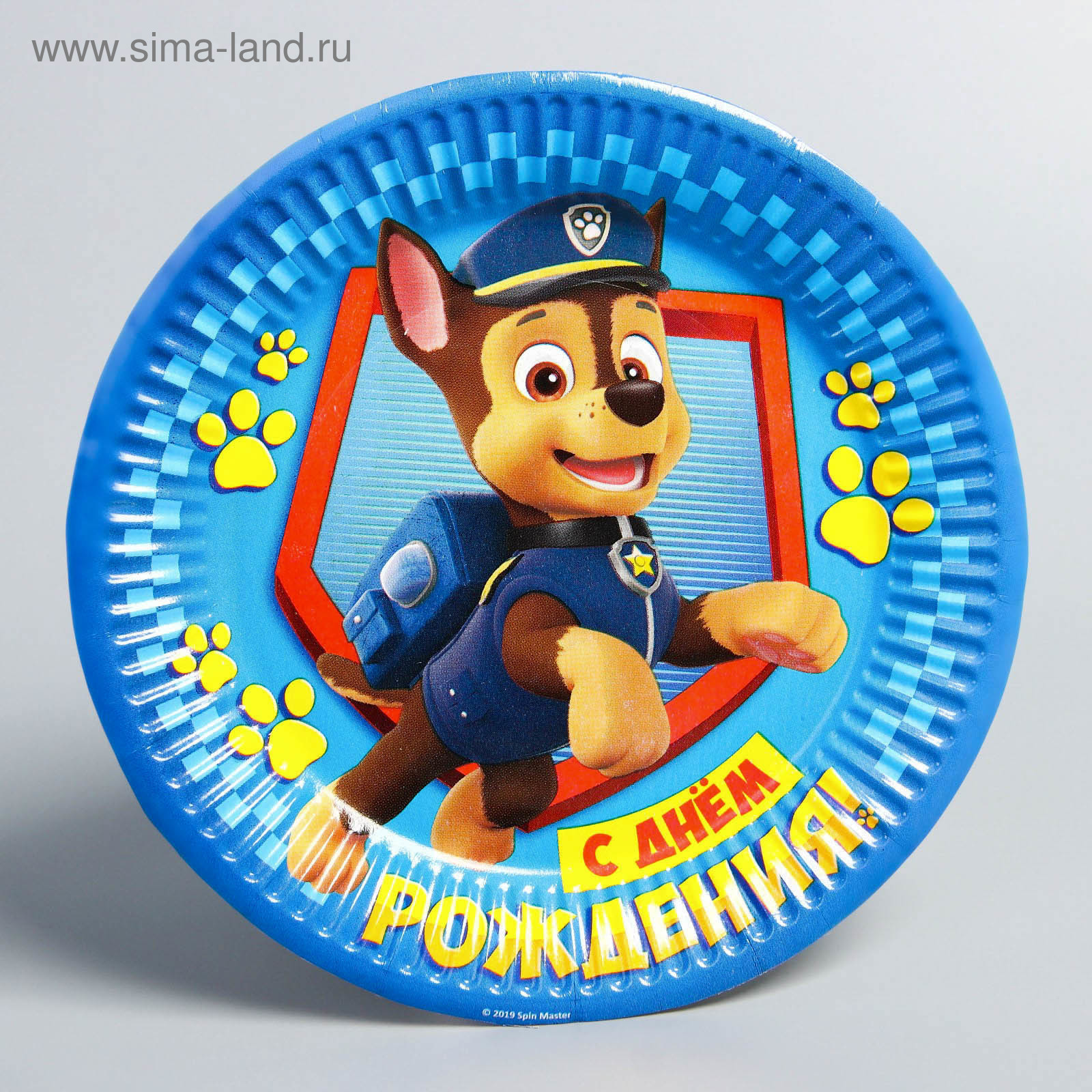 Тарелка бумажная "с днем рождения!", 18 см, щенячий патруль