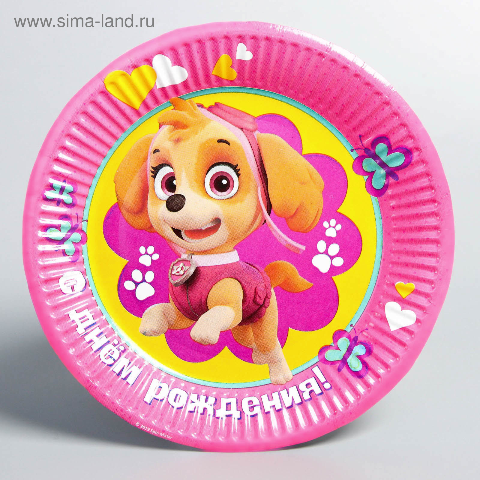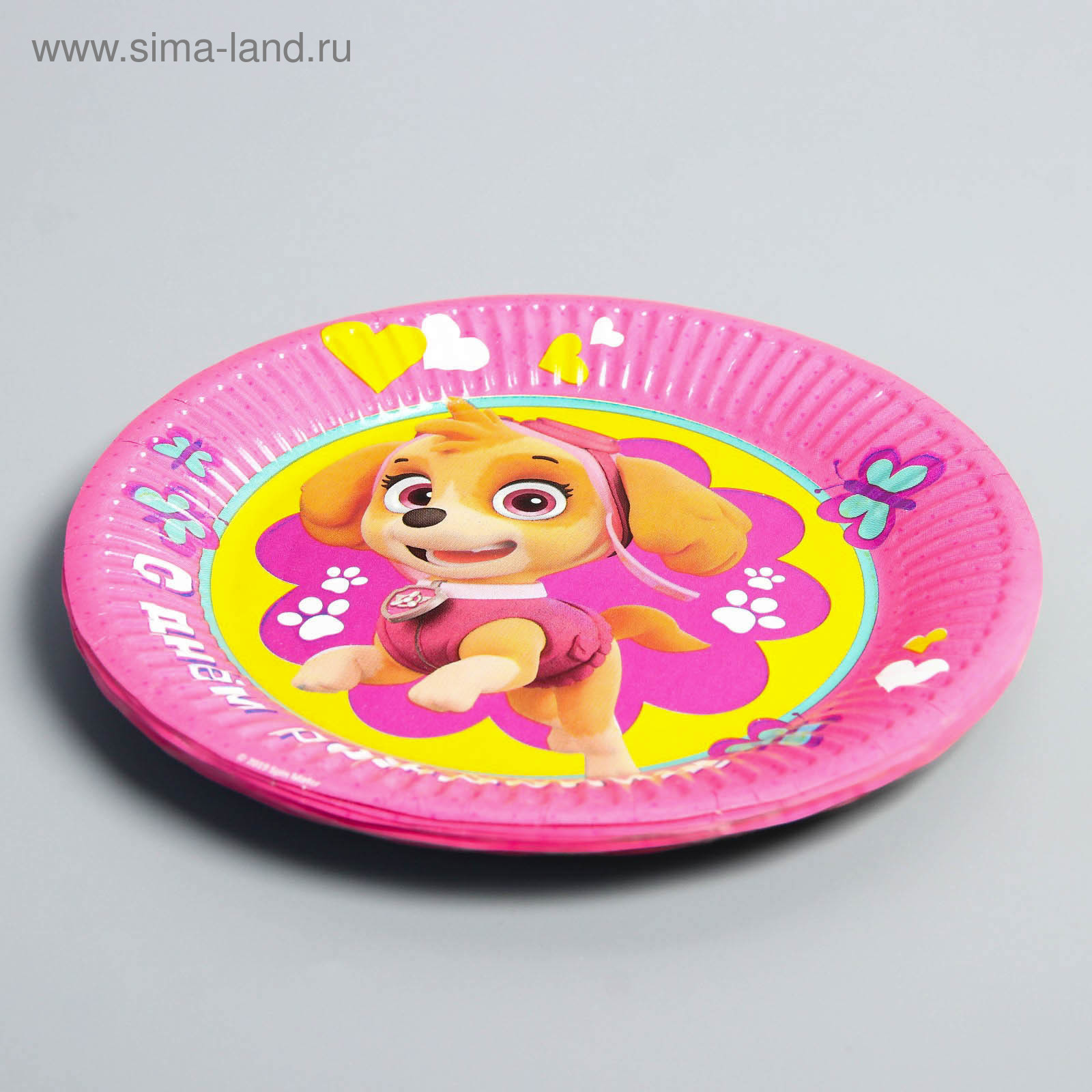 Тарелка бумажная "с днем рождения!", 18 см, щенячий патруль