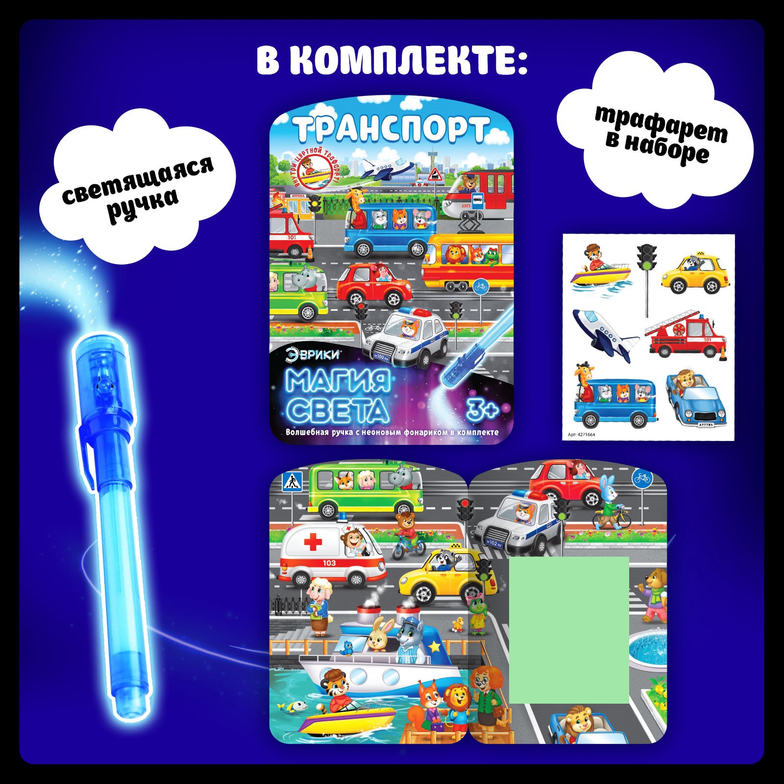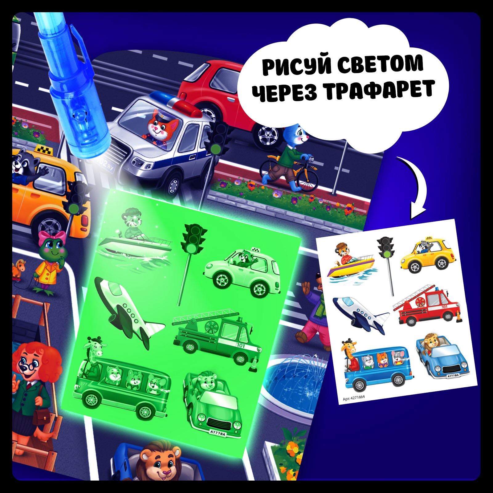Набор для рисования светом «транспорт», ручка с фонариком и невидимыми чернилами