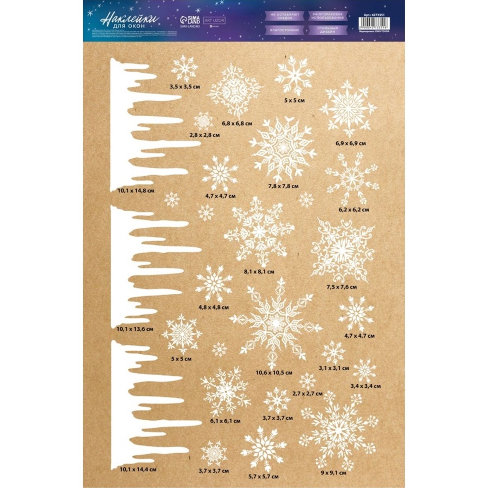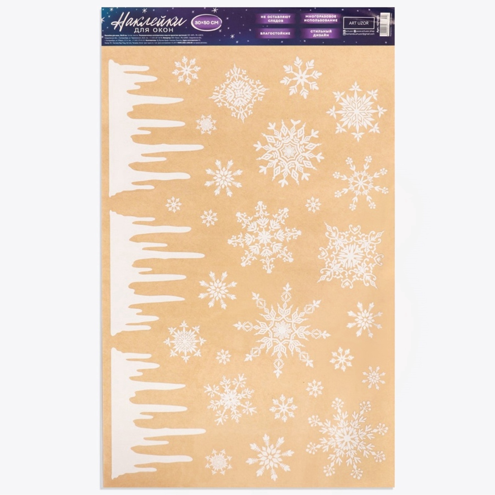 Наклейки на окна многоразовые «новогодние снежинки», 33 х 50 см