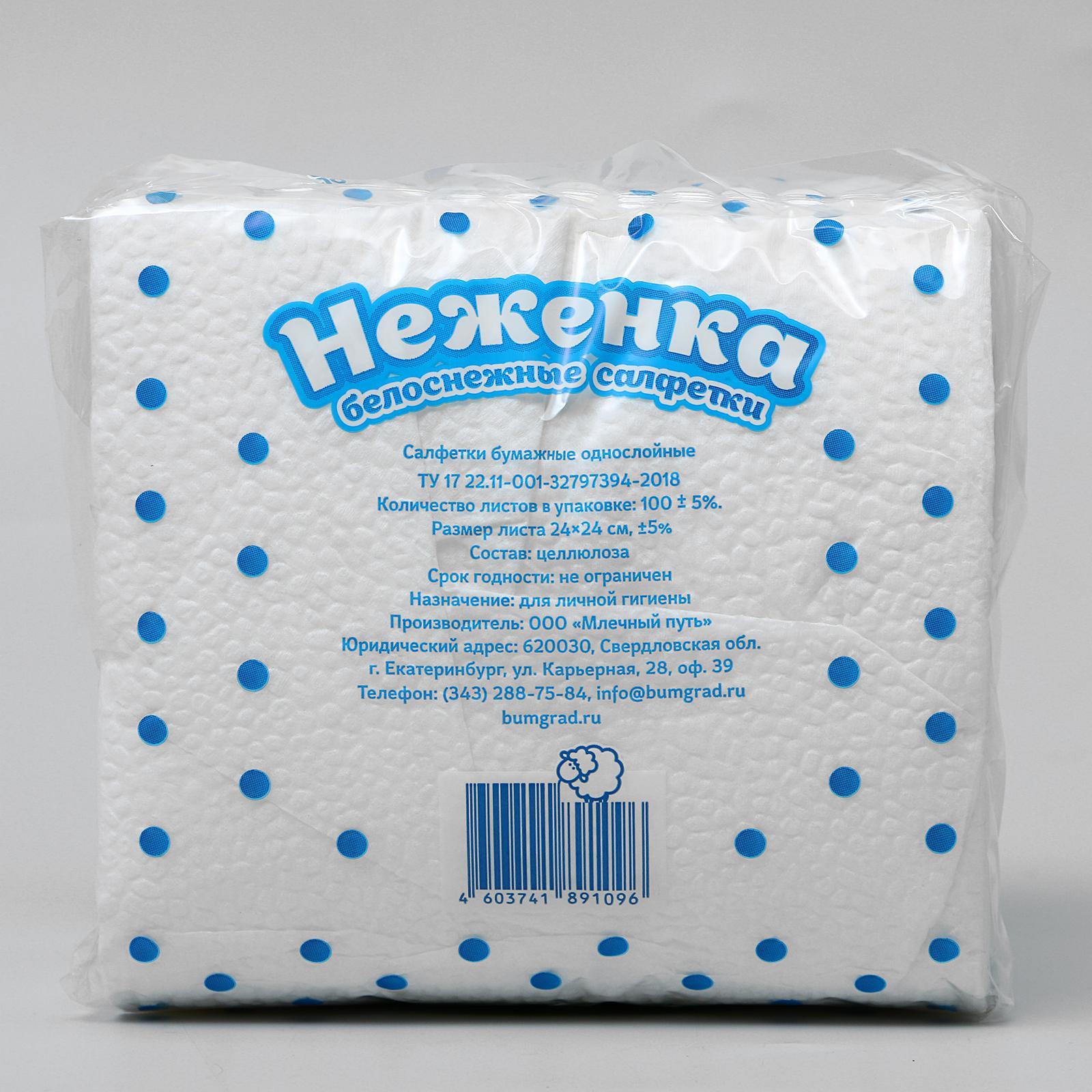 Салфетки бумажные "неженка", 24х24 см, 1 слой, 100 шт, белые