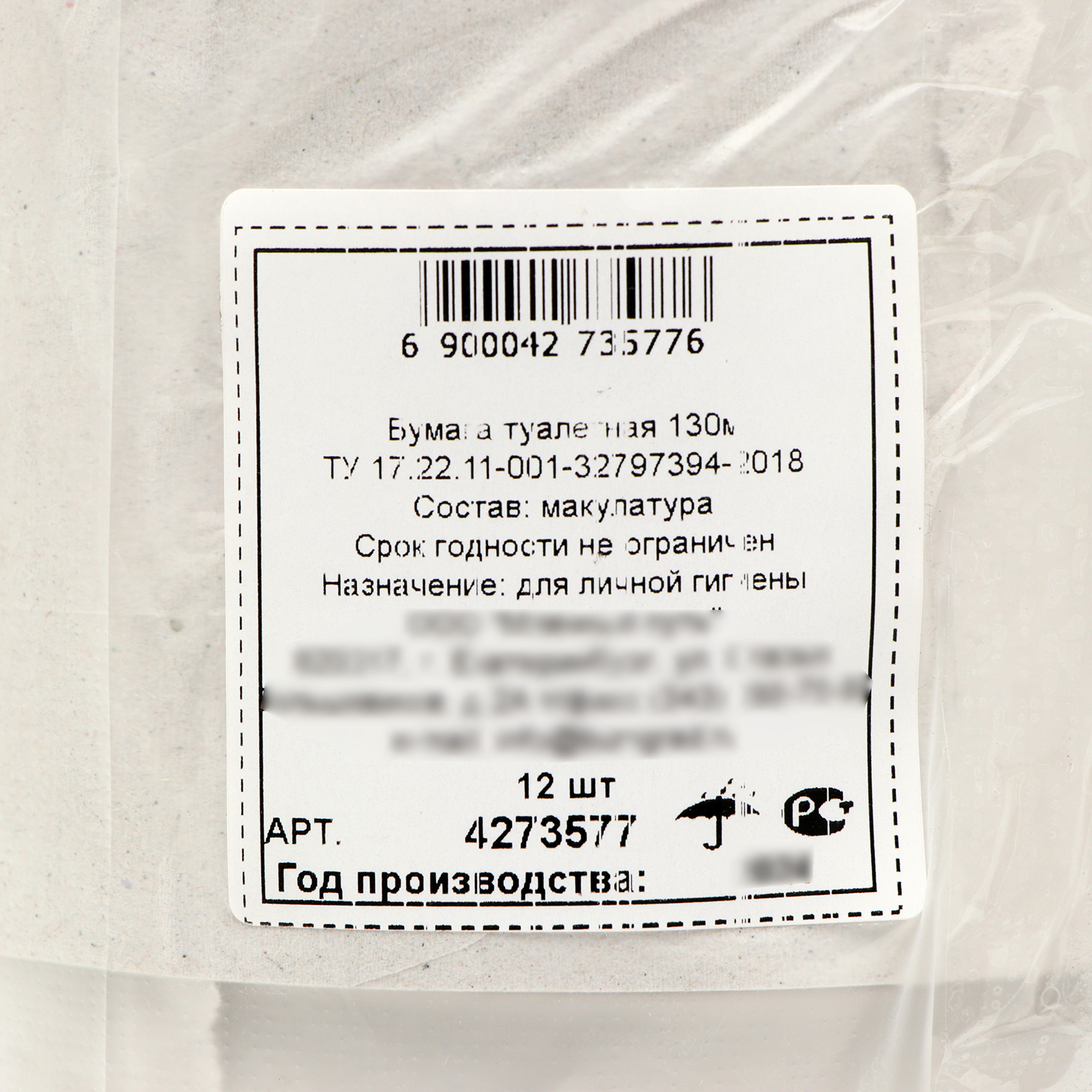 Туалетная бумага серая, для диспенсера, 1 слой, 130 метров