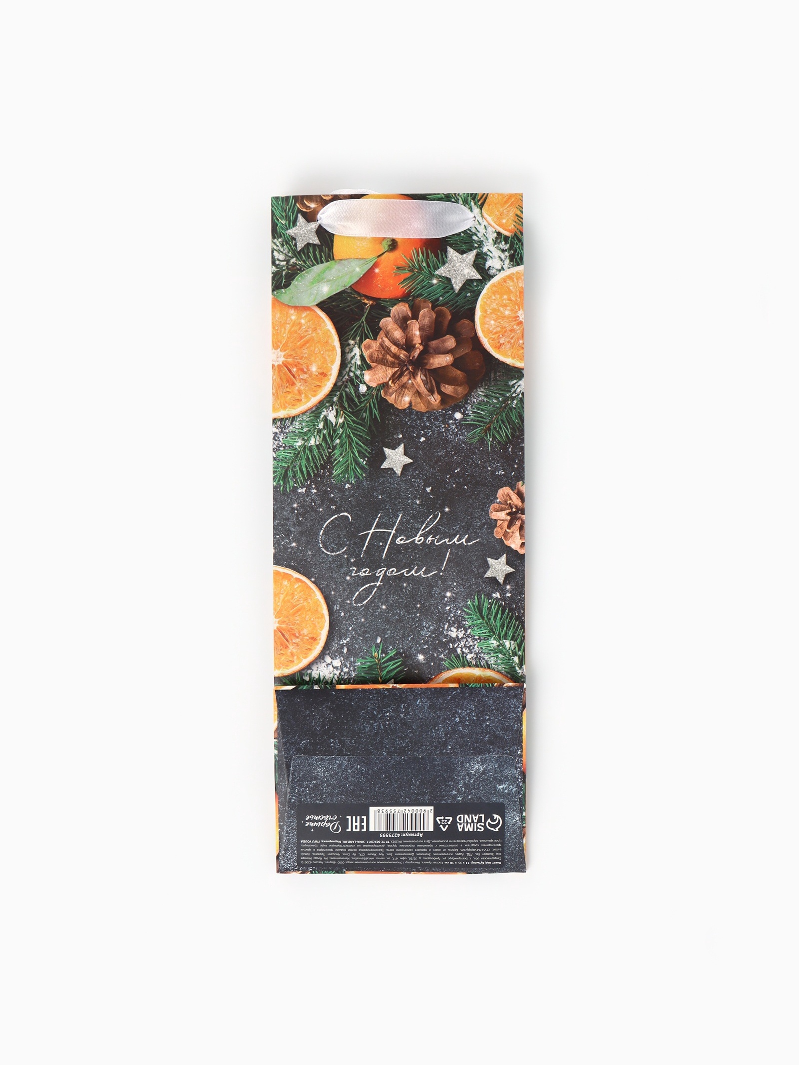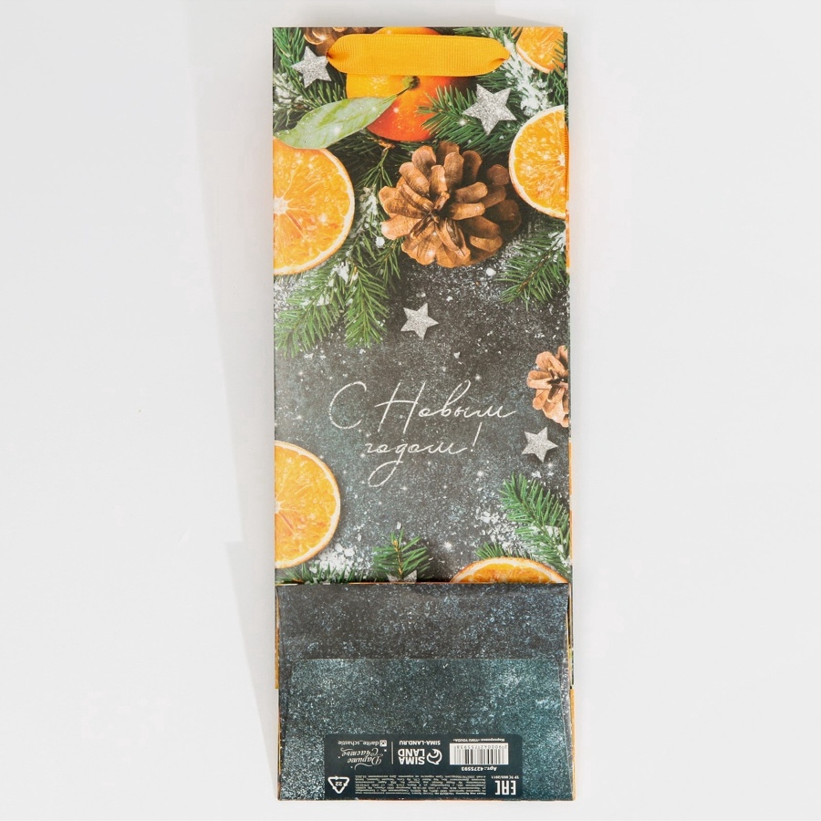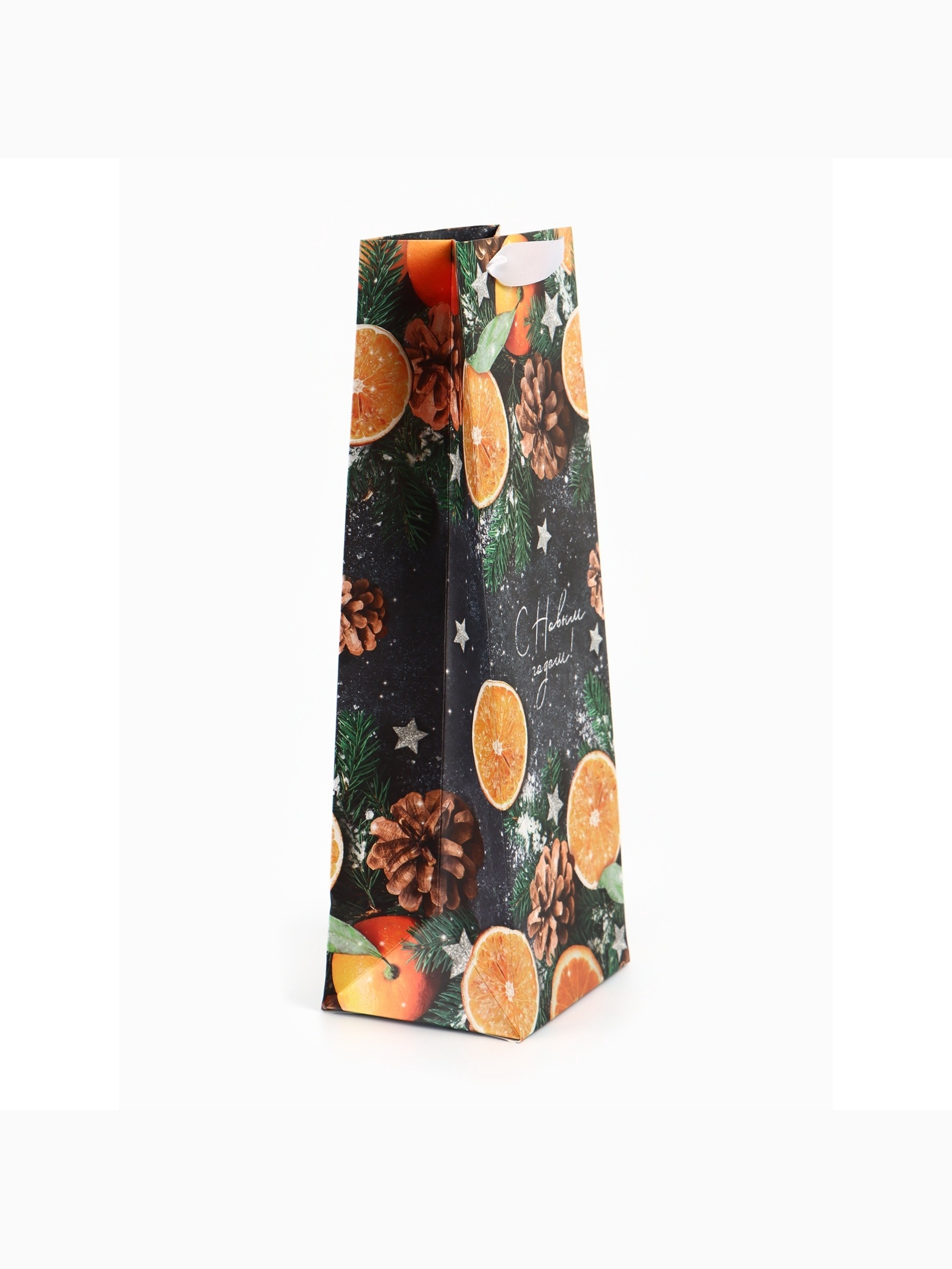 Пакет подарочный под бутылку крафтовый «новогоднее настроение», 13 х 35 х 10 см