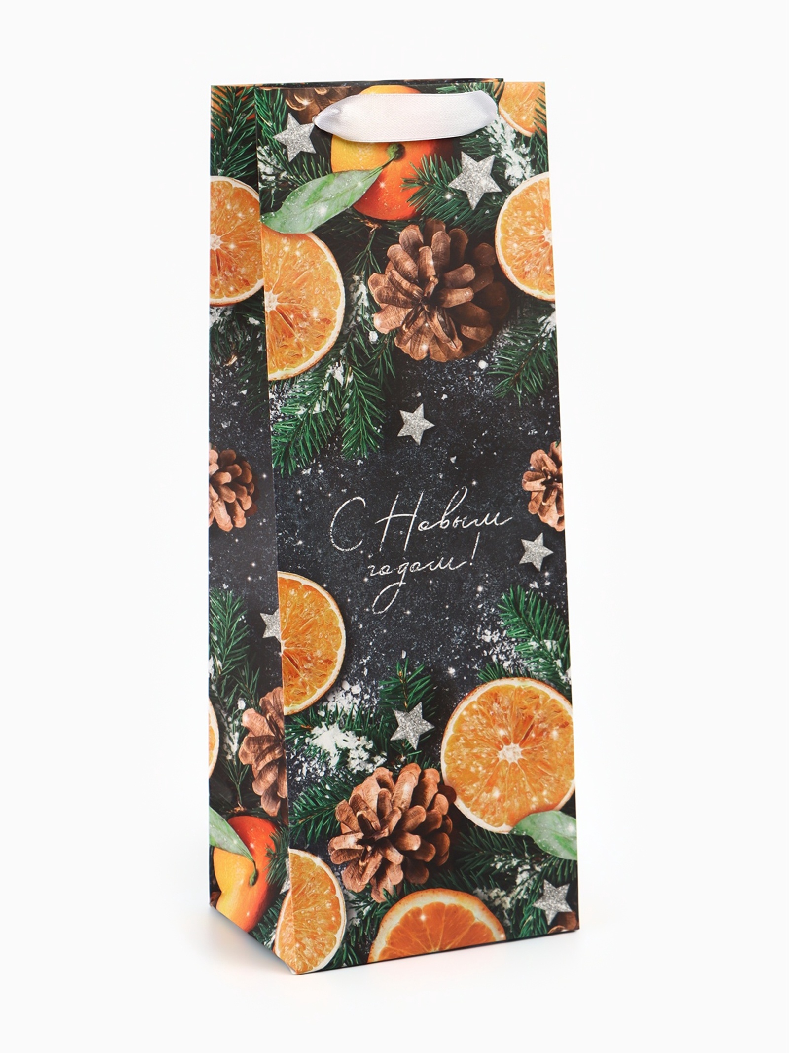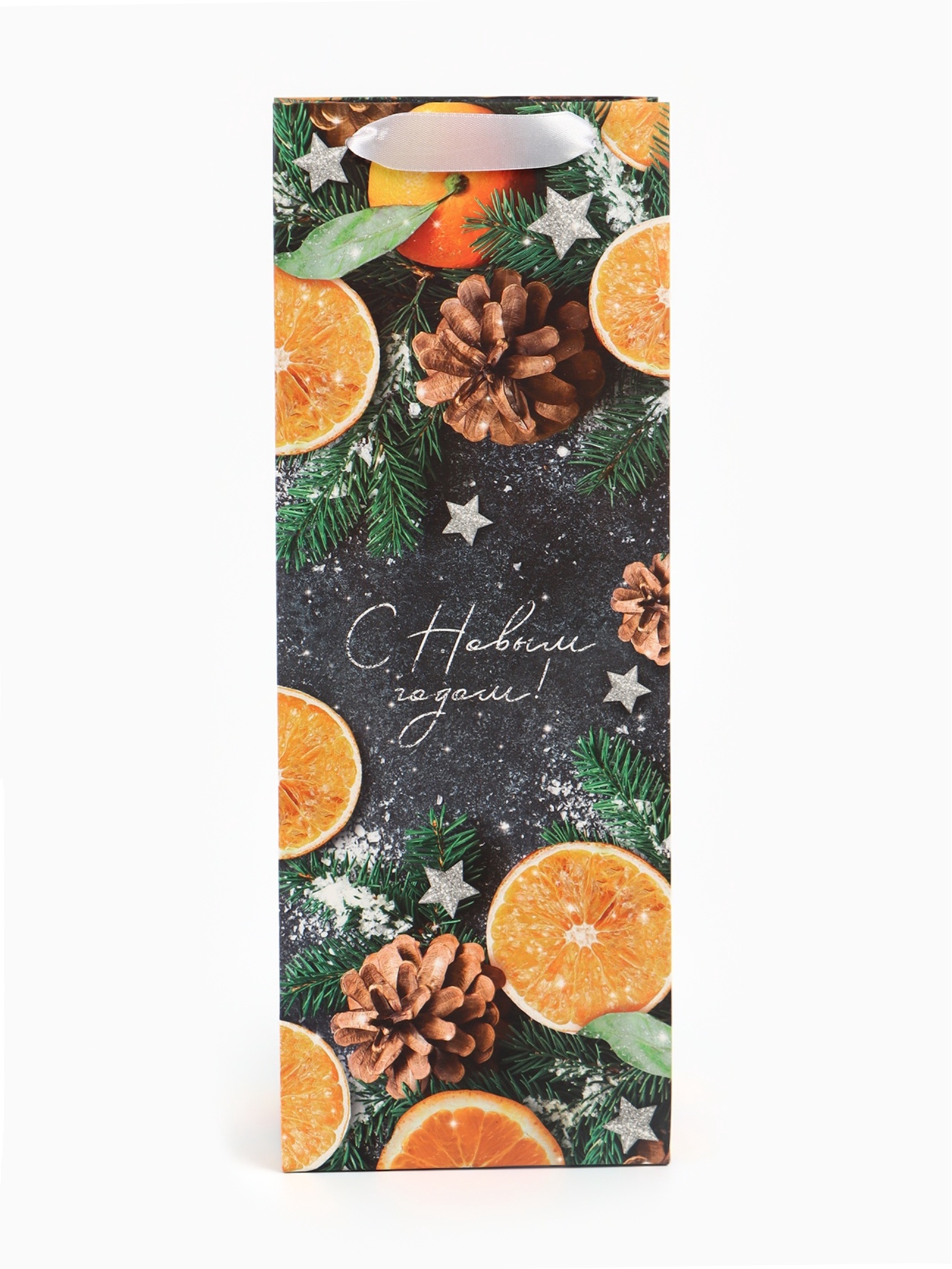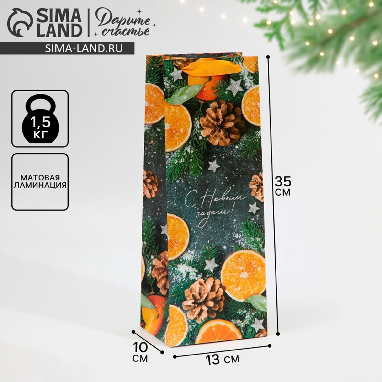 Пакет подарочный под бутылку крафтовый «новогоднее настроение», 13 х 35 х 10 см