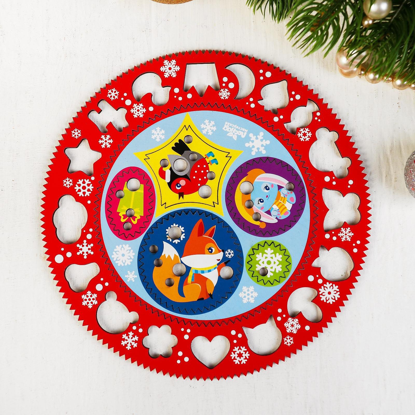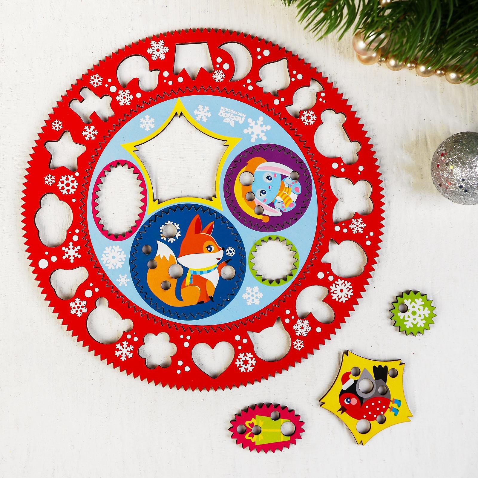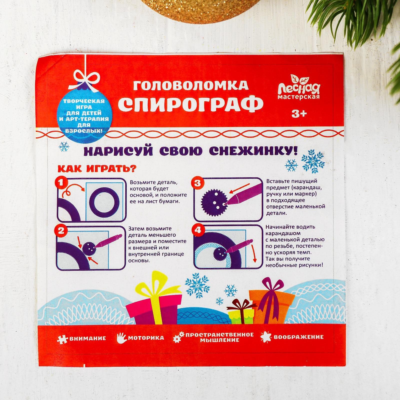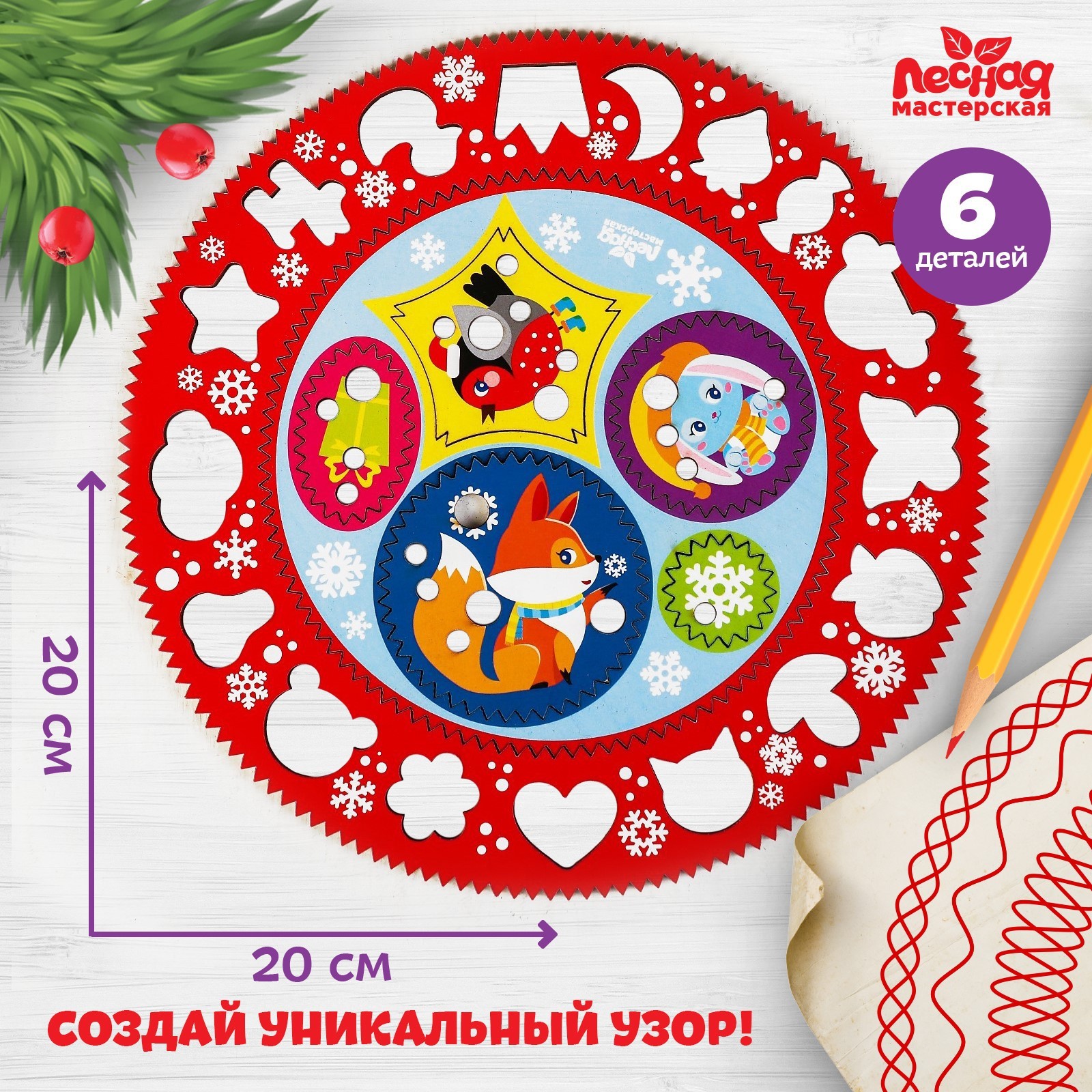 Трафарет спирограф «зимние рисунки», деревянный. Трафарет «Зимние рисунки» — это деревянный спирограф, который переносит детей и взрослых в волшебный мир зимней сказки через творческое рисование. Благодаря простым правилам и новогодней тематике, он идеально подходит для мальчиков и девочек от 3 лет, а также станет отличным инструментом для арт-терапии. Особенности Включает 6 деревянных деталей, которые можно комбинировать для создания уникальных зимних узоров.Изготовлен из натурального дерева, что делает его безопасным, экологичным и долговечным.Новогодняя тематика добавляет игре визуальной привлекательности и праздничного настроения.Подходит как для детей, так и для взрослых, желающих расслабиться и создать красивые рисунки.Как игратьx Приложите одну из деревянных деталей к листу бумаги. Внутрь поместите шестерёнку или другую форму.Вставьте карандаш в отверстие и начните вращать деталь. Карандаш будет создавать плавные спиральные узоры, напоминающие снежинки или морозные узоры на окнах.Экспериментируйте с разными формами и отверстиями, чтобы получить уникальные рисунки.Используйте элементы как трафареты для дополнительного рисования и создания целых композиций, посвящённых зимним праздникам.Чем полезен этот спирографx Трафарет «Зимние рисунки» помогает развивать важные навыки: внимание, логику, мелкую моторику и воображение. Рисование спиралей способствует улучшению координации движений кисти и почерка. Игра стимулирует творческий подход и самостоятельное исследование, особенно в рамках подготовки к новогодним праздникам. Натуральный материал и продуманный дизайн делают набор безопасным и долговечным, сохраняя интерес к творчеству. Идея для подарка Этот трафарет станет отличным подарком для детей, которые любят рисовать, или для взрослых, ищущих способ расслабиться и создать праздничное настроение. Он подходит как для домашних занятий, так и для групповых игр в детском саду. Подарите возможность создавать свои собственные зимние истории и украшения, вдохновляясь волшебством Нового года! Набор:Нет|Для кого:Унисекс|Размер, см:20 х 20|Возраст:От 3 лет|Тематика:Новогодняя|Символ года:Нет|Тематика праздника:Новый год|Материал:Дерево|Развитие навыков:Логика|Развитие навыков:Моторика|Развитие навыков:Воображение|Развитие навыков:Внимание|Сложность головоломки:3|Тема обучения:Цвета, формы, звуки|Тема обучения:Развитие моторики|Страна:Россия  развернуть описание ▼
