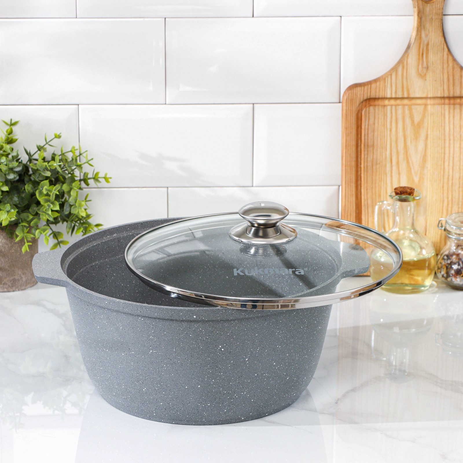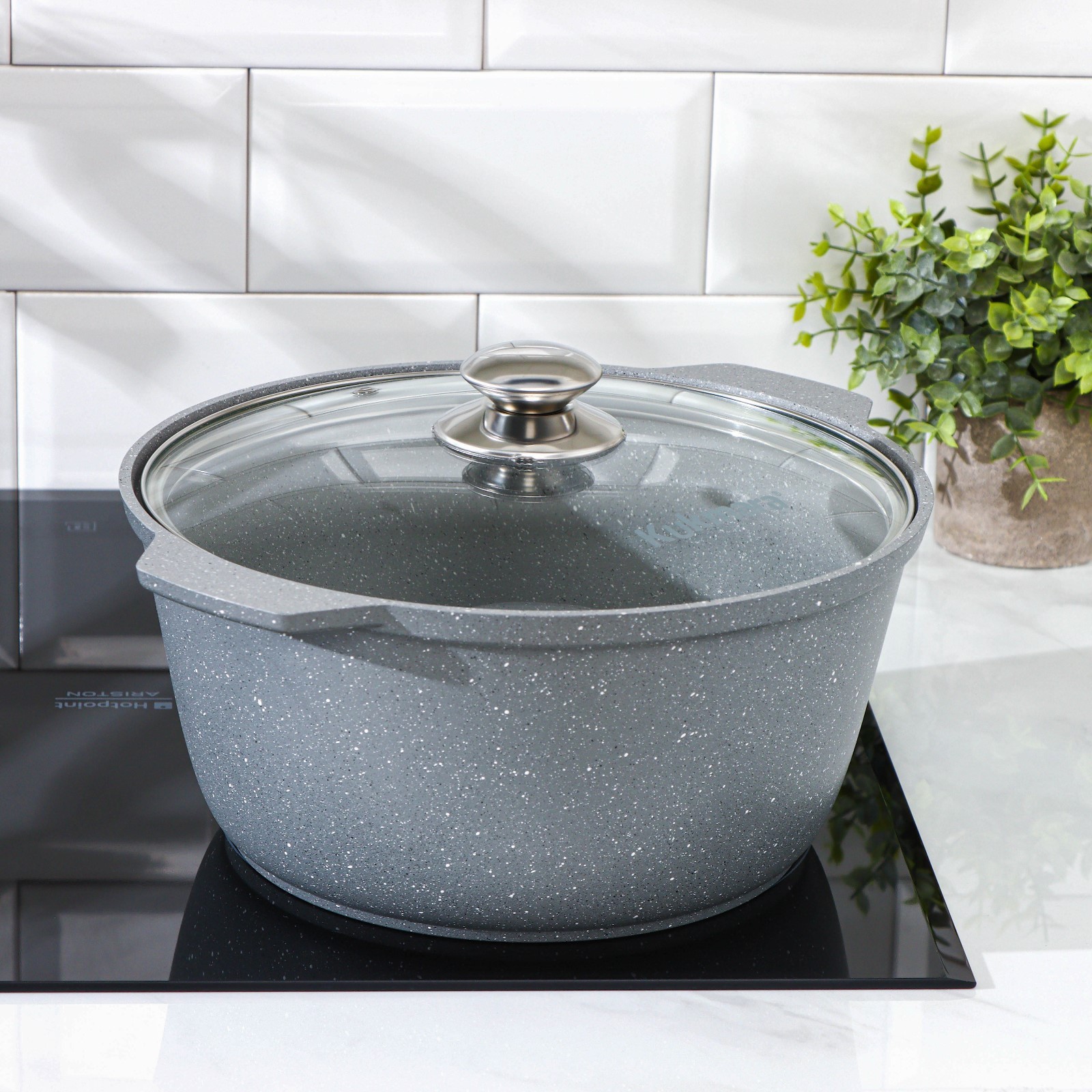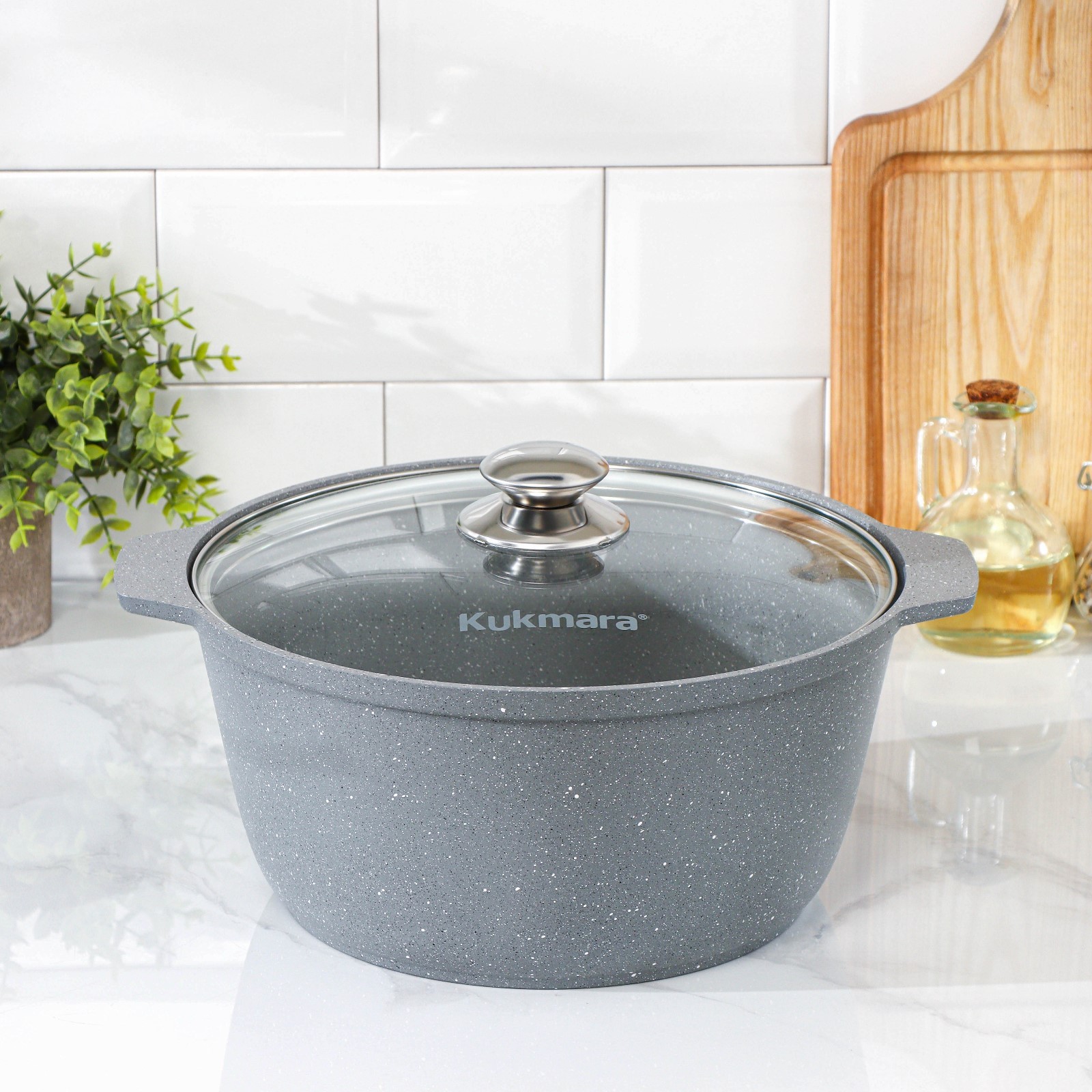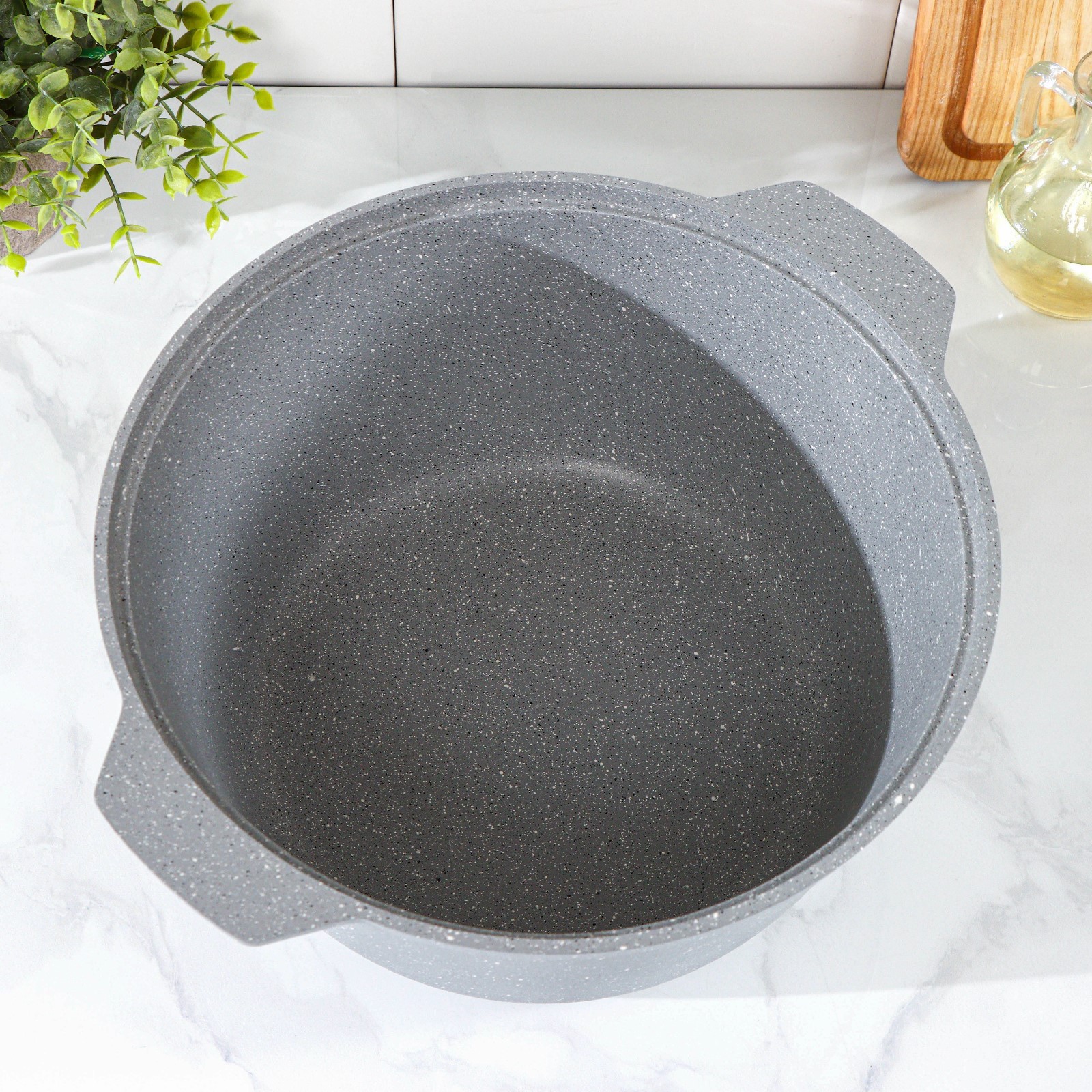Жаровня, 5 л, стеклянная крышка, антипригарное покрытие, цвет светло-серый