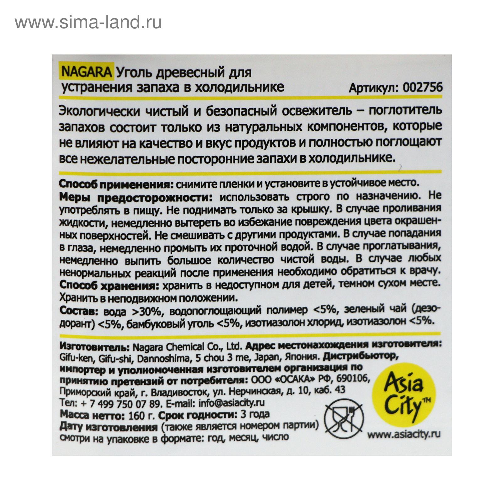 Поглотитель запаха для холодильника Nagara, древесный уголь, 160 г