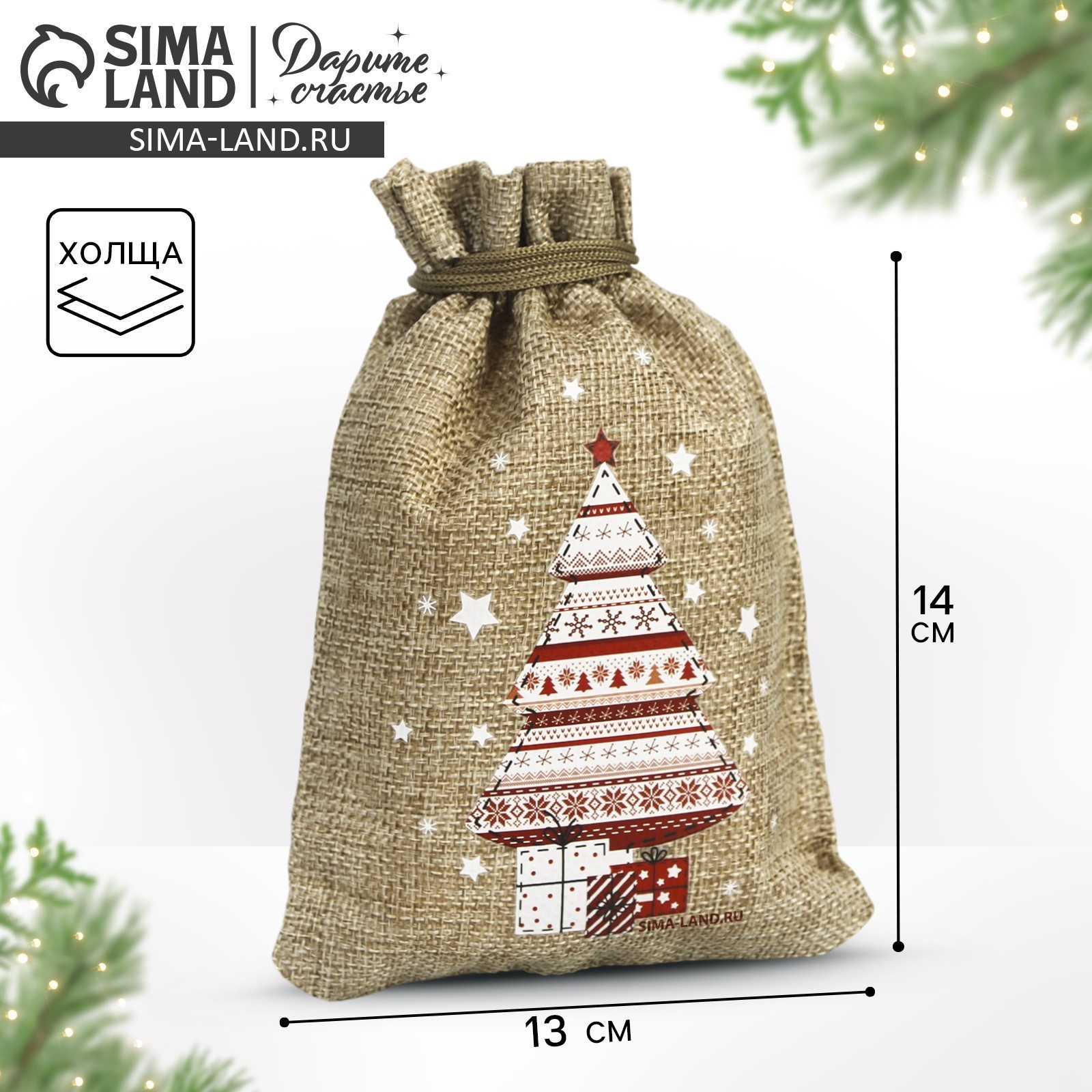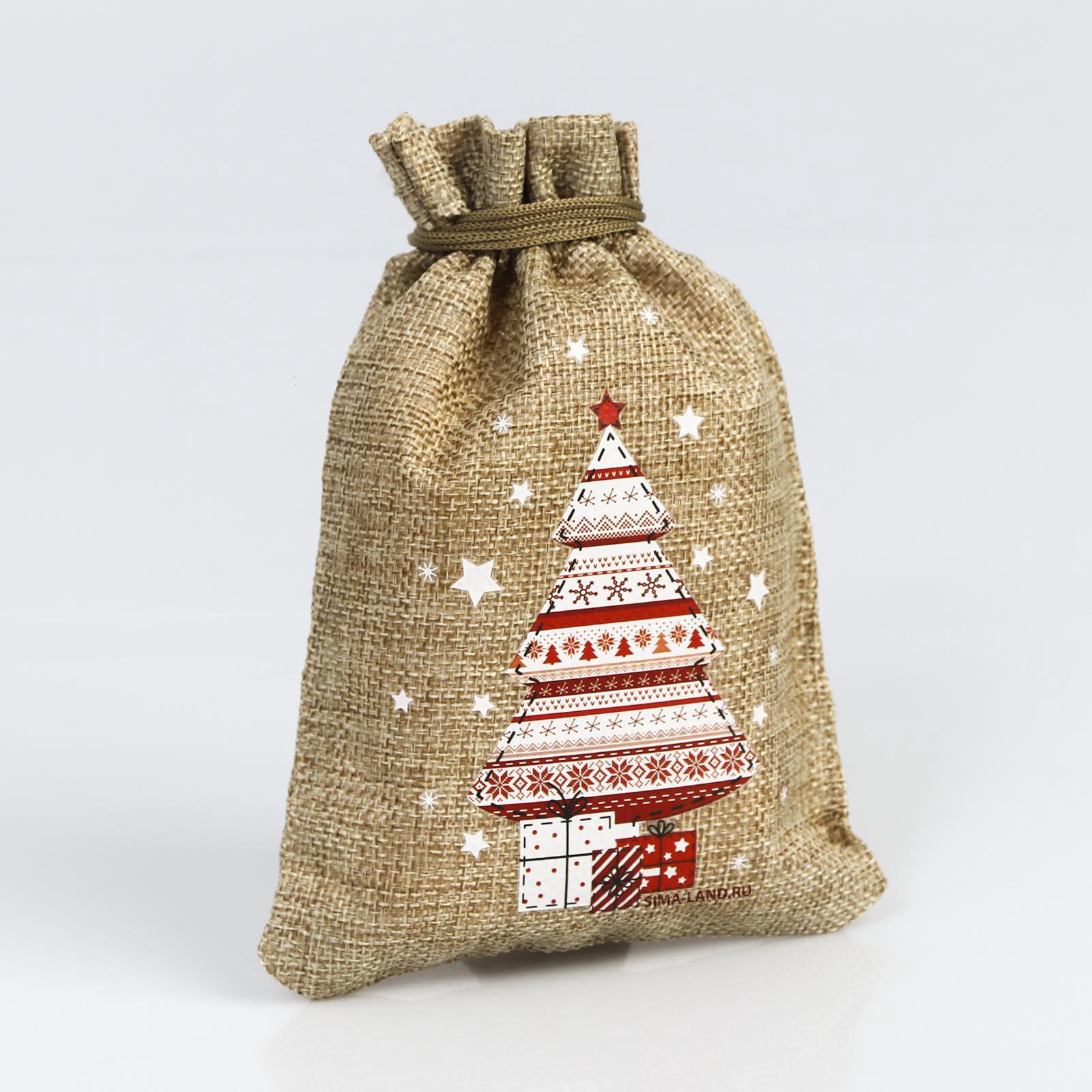 Мешочек новогодний подарочный с термонаклейкой «подарки», 13 х 18 см +/- 1.5 см