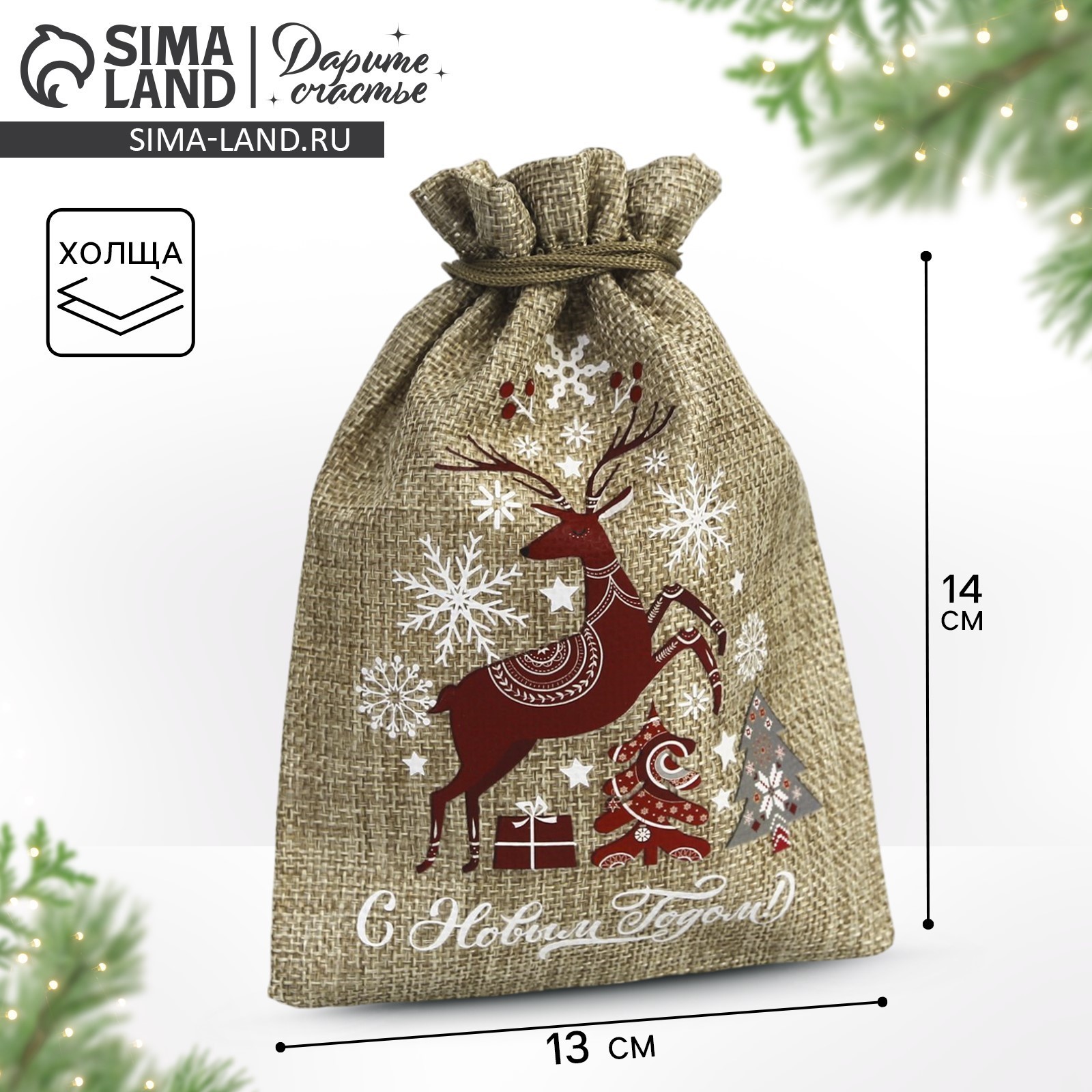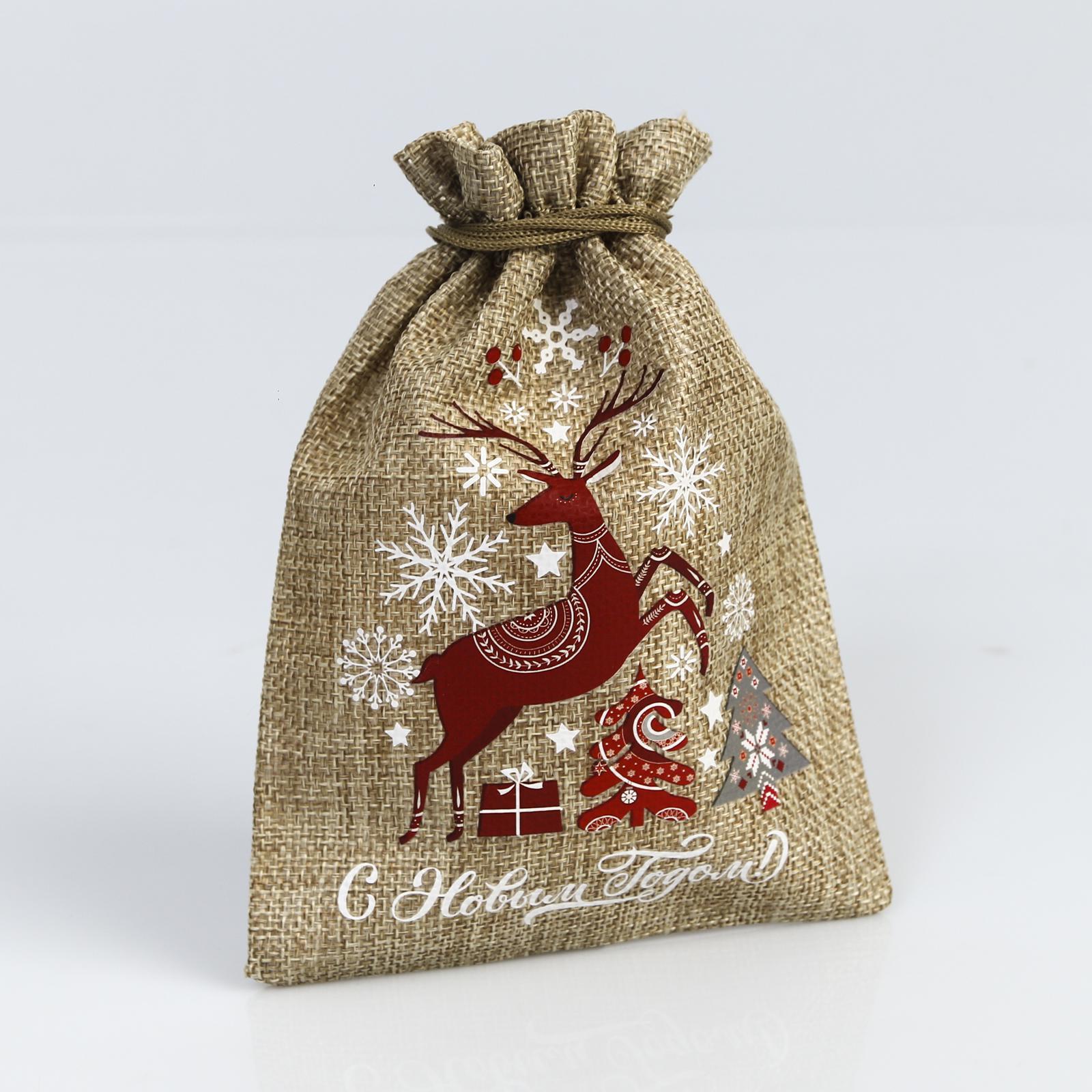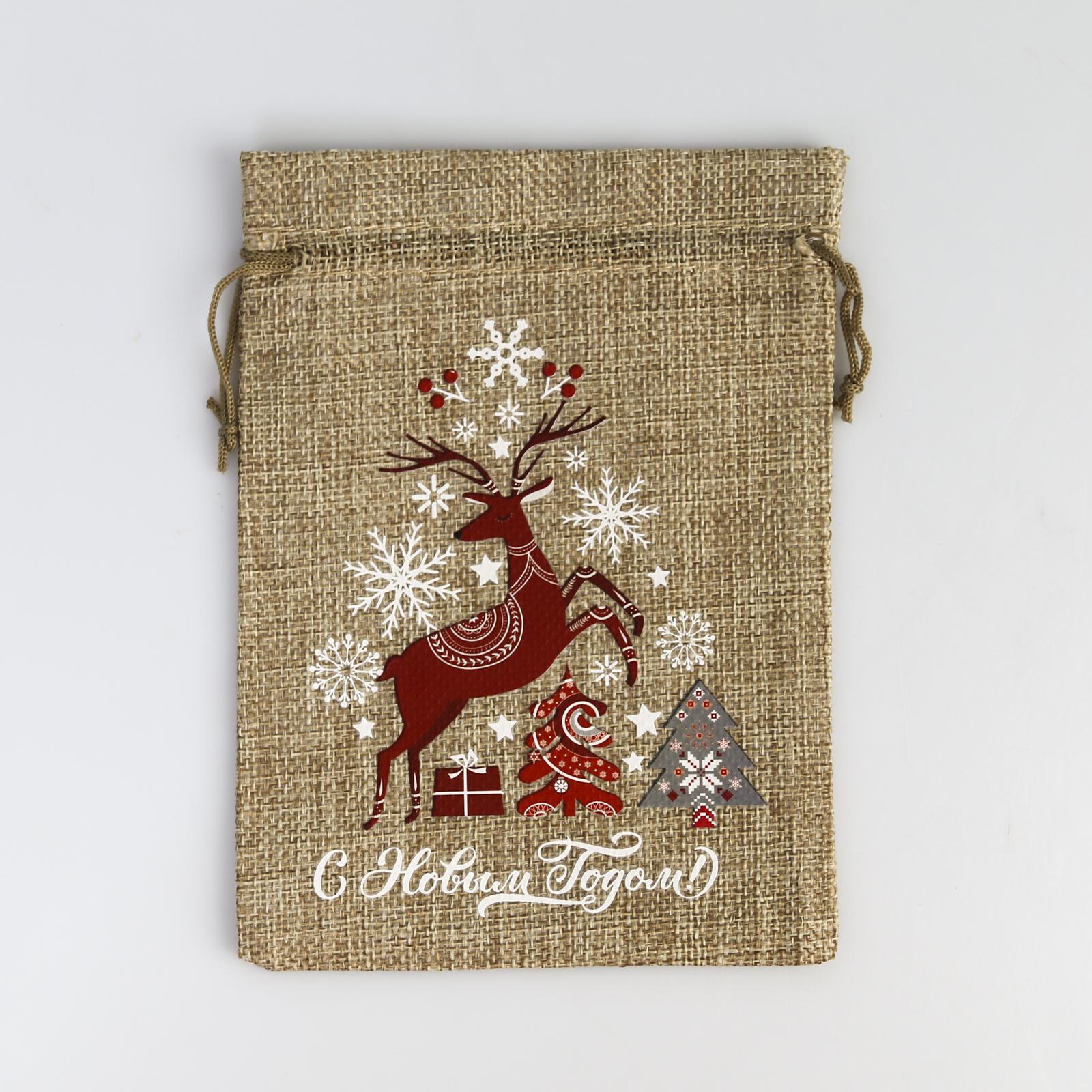 Мешочек подарочный с термонаклейкой «счастливого нового года», 13 18 см +/- 1.5 см. Размер товара может варьироваться до 1,5 смЦвет:Бежевый|Размер, см:13 х 18|Допустимый вес вложения, г:500|Тематика:Новогодняя|Рисунок:Да|Символ года:Нет|Тематика праздника:Новый год|Материал:Холща|Страна:Китай  развернуть описание ▼